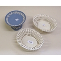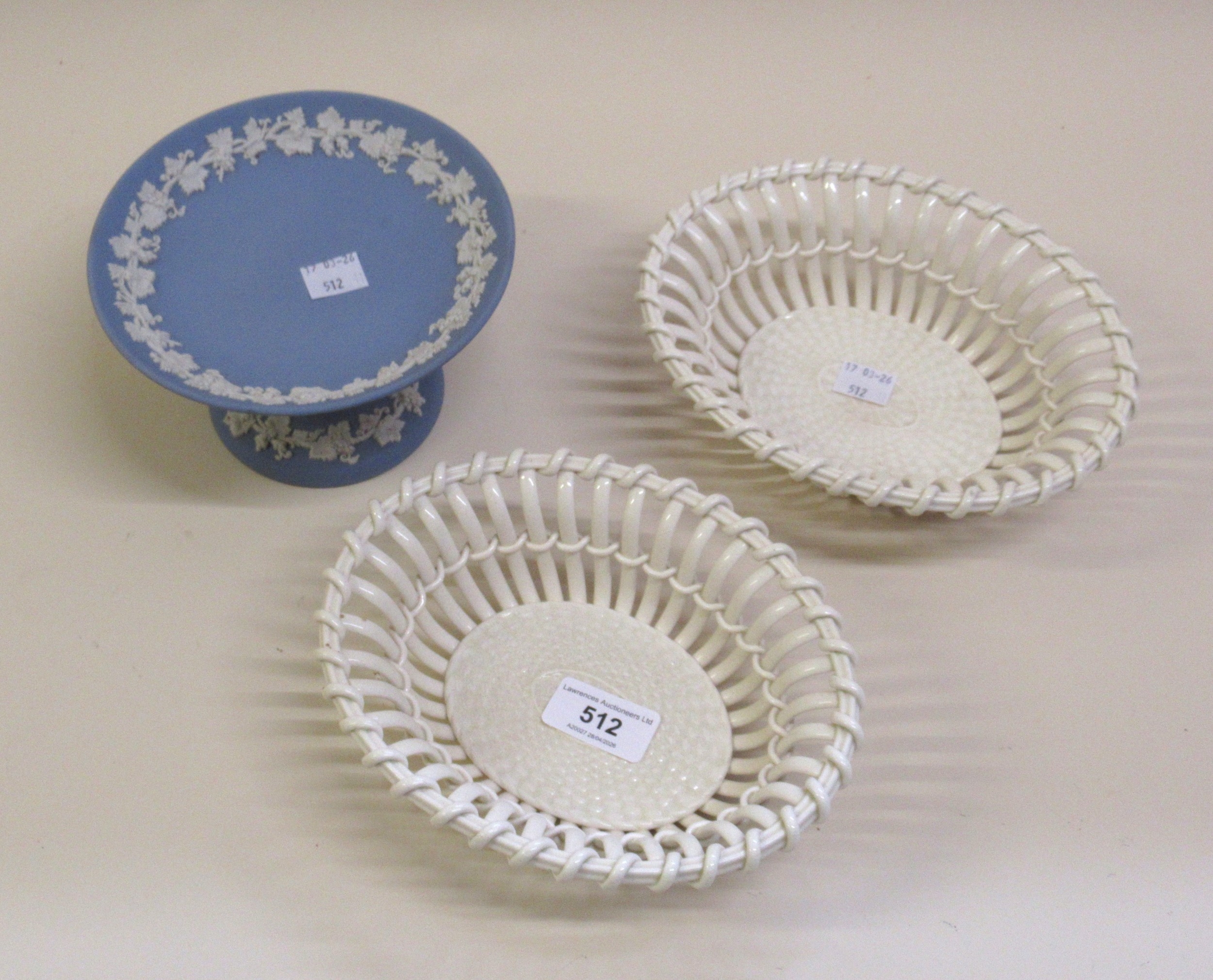 Pair of 19th Century Wedgwood creamware oval baskets, together with a Wedgewood Jasperware comport