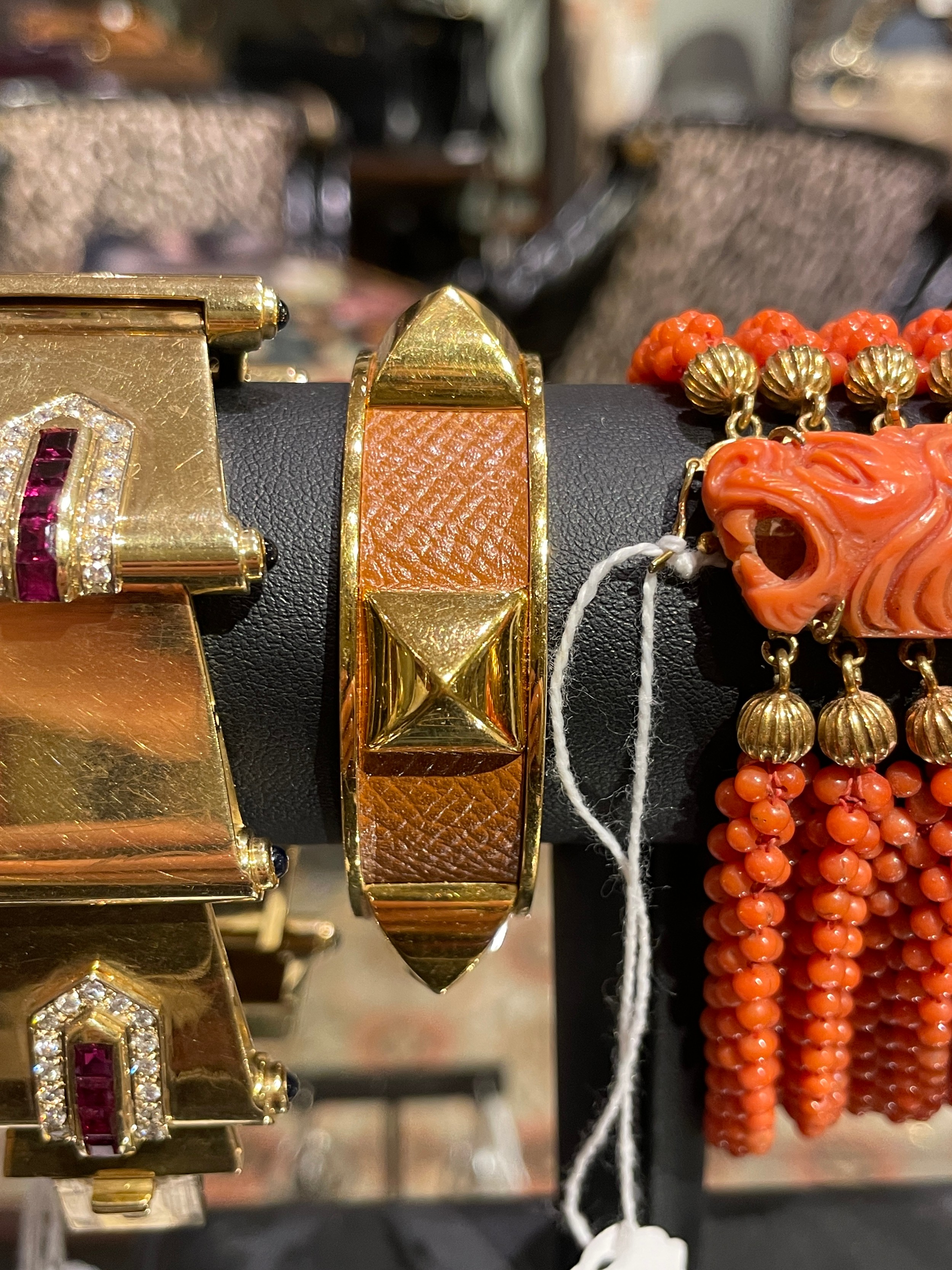 Hermès, Paris A leather and gilt metal bangle, circa 1980 Si...