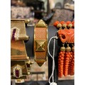 A leather and gilt metal bangle, circa 1980