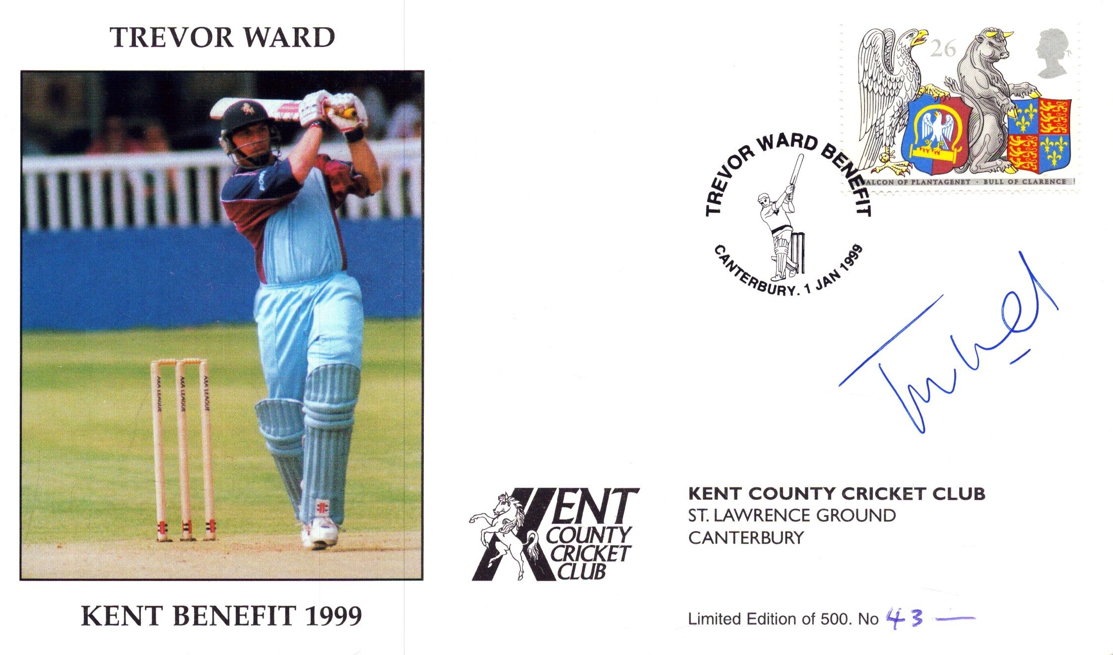 Trevor Ward signed Kent Benefit 1999 Trevor Ward, stamped 1999 FDC.