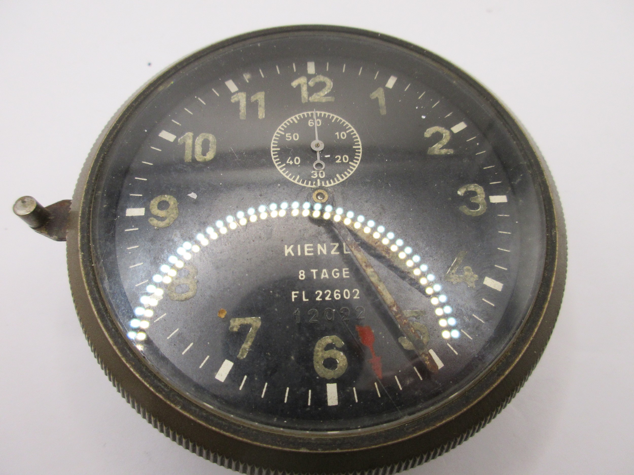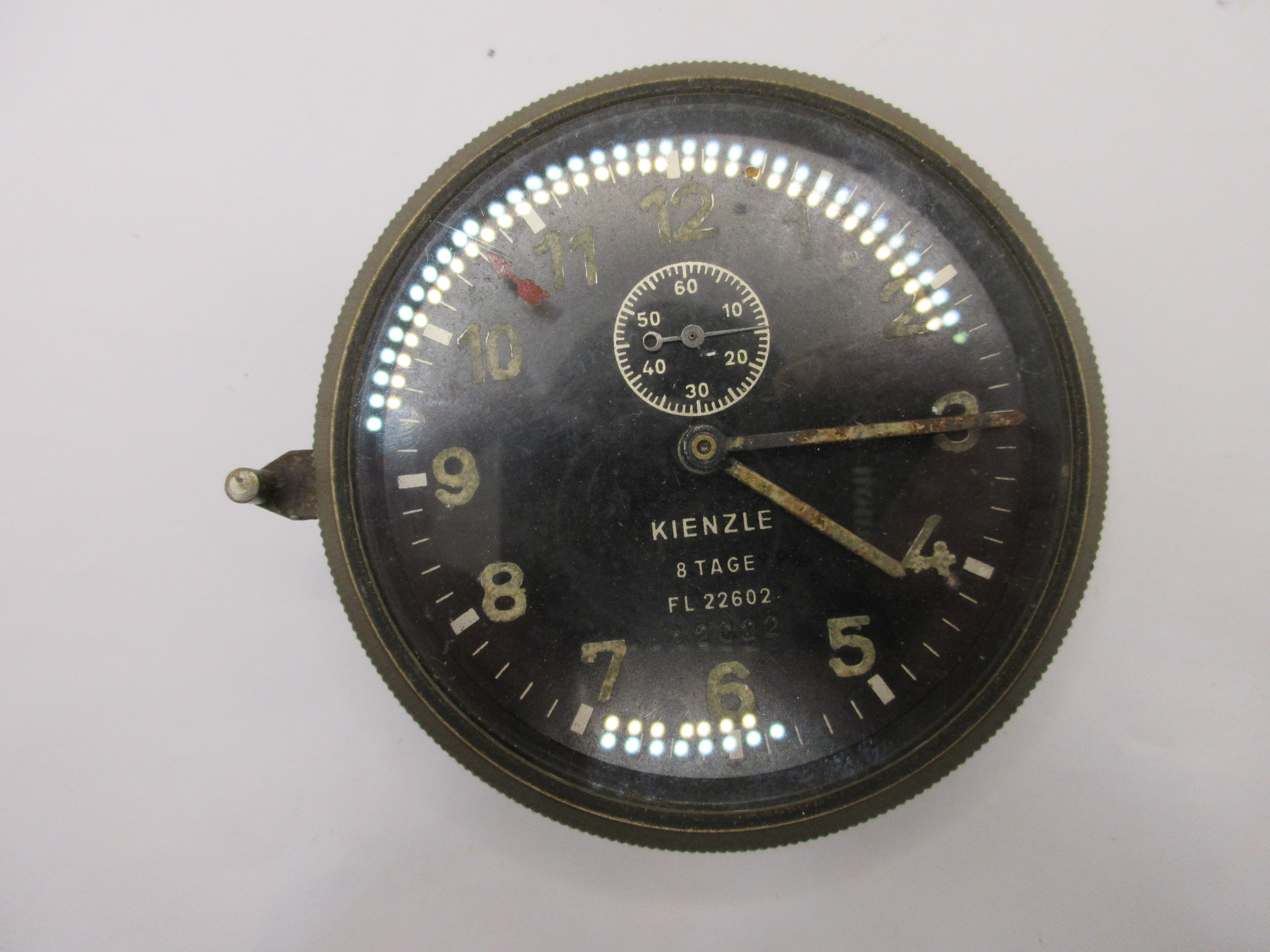 A 1930s Luftwaffe issue Kienzle panel clock, 8 day mechanism, model FL 22602, likely from a Junkers Ju 52 or similar (picture included for reference only), in running order and in good cosmetic condition