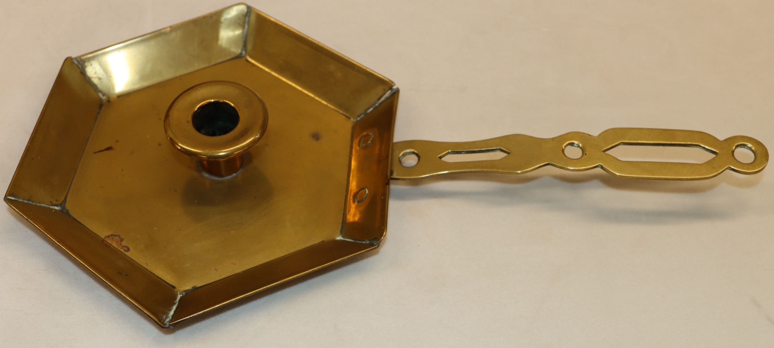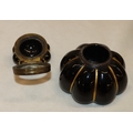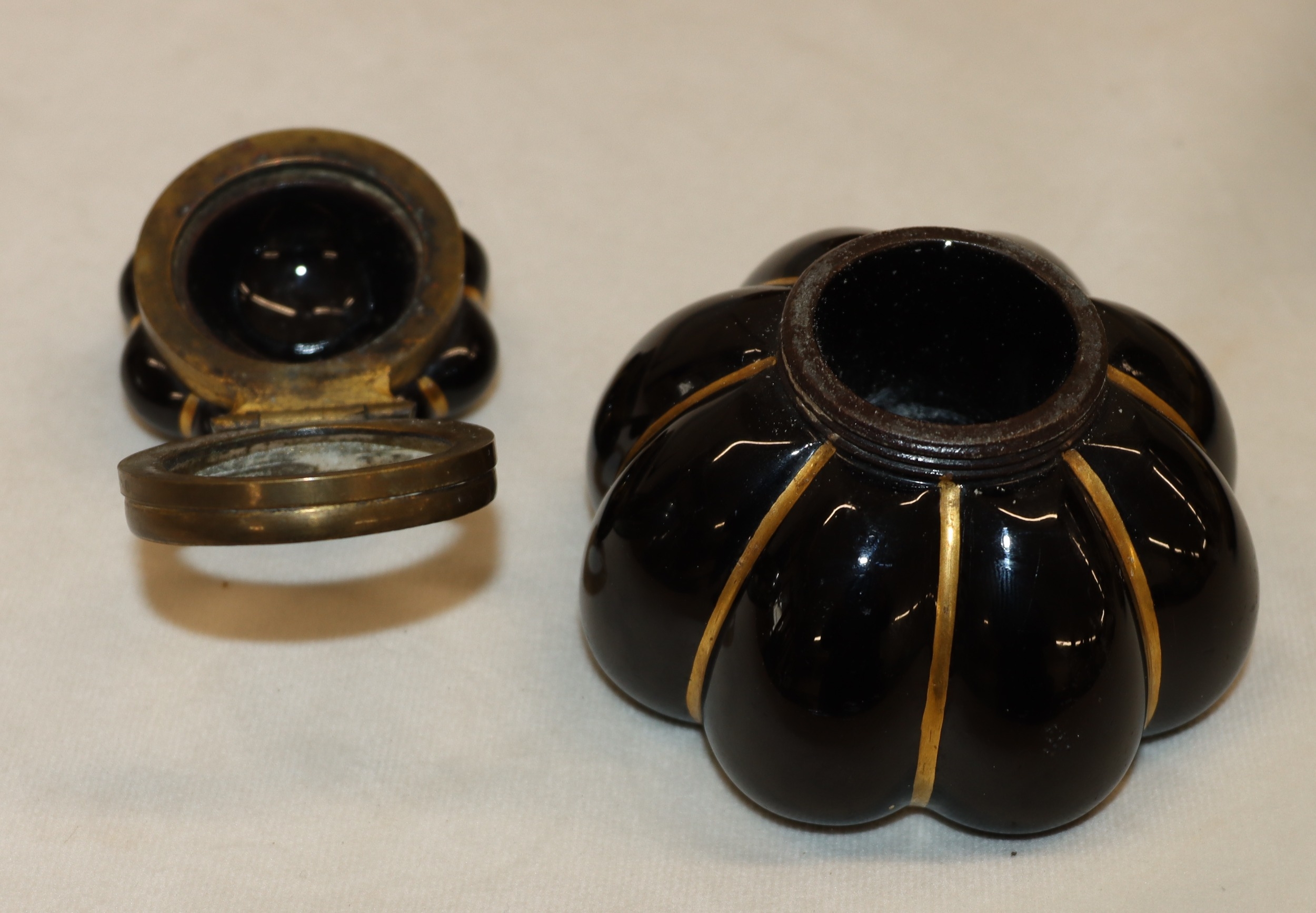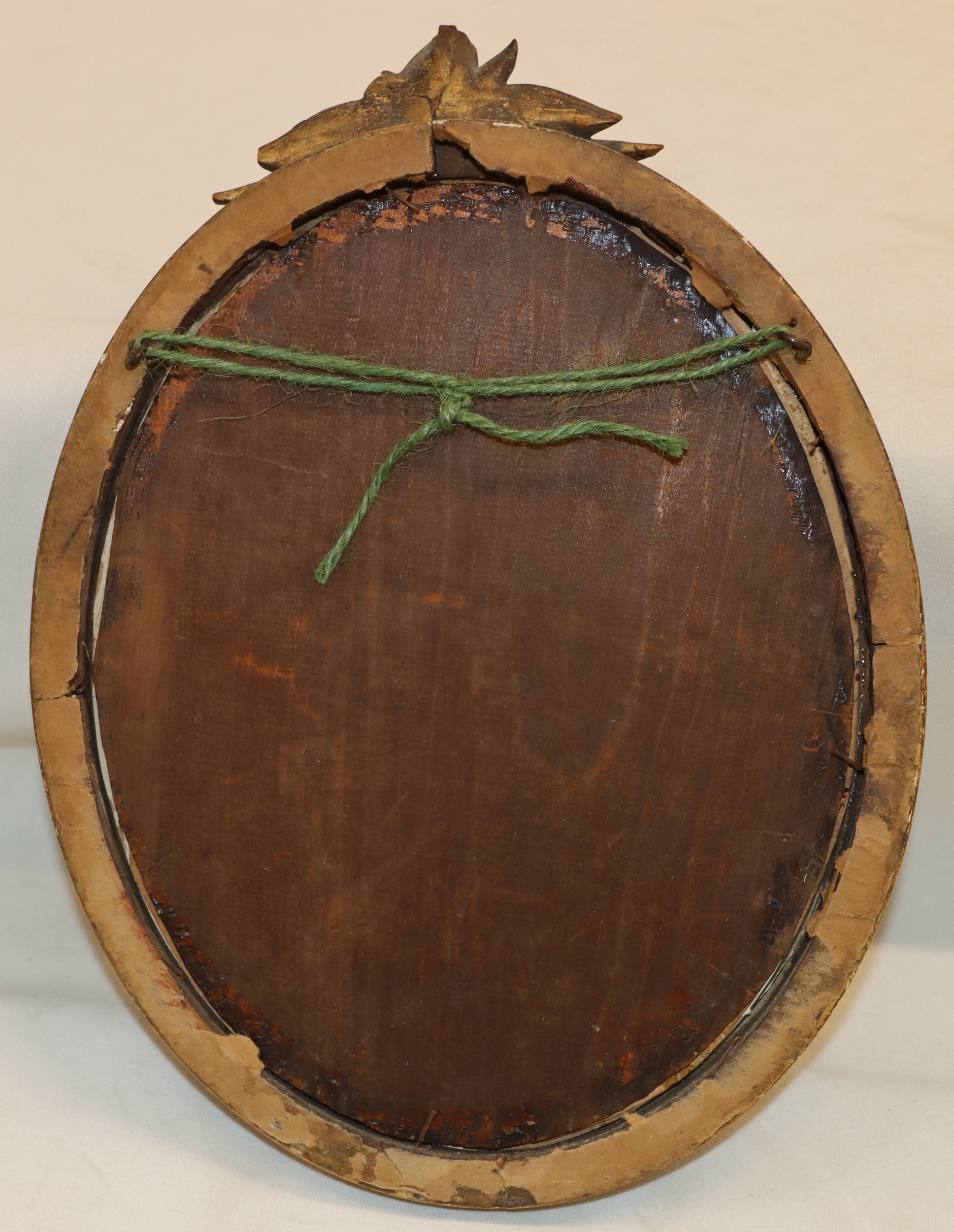 An oval miniature portrait of a young girl, 13.5cm x 12cm, in gilt frame (frame damaged, an inkwell (top loose) and a brass candle holder. (3)