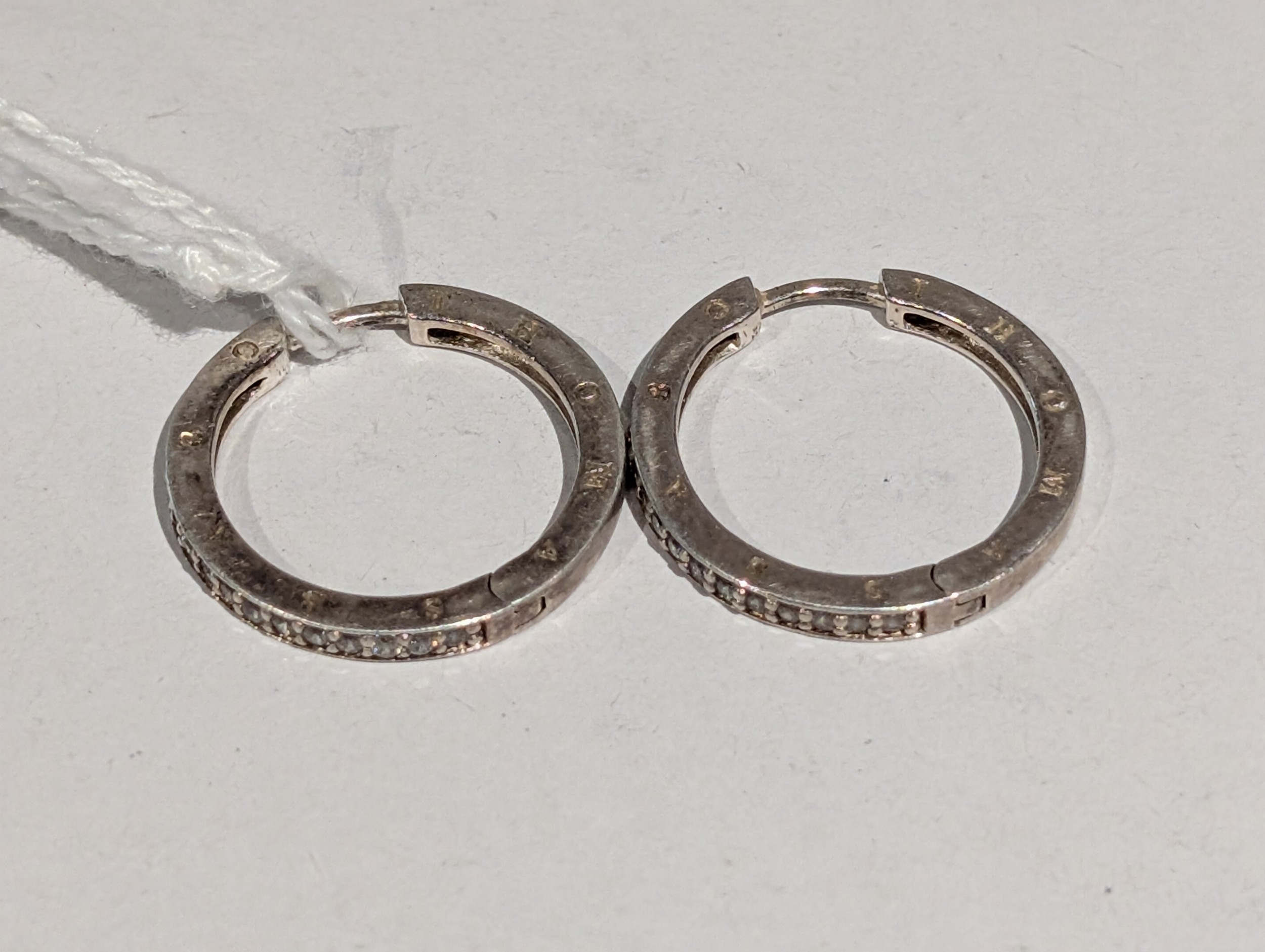 Pair of Sterling Silver and Clear Stone Hoop Earrings, Engraved Thomas Sabo