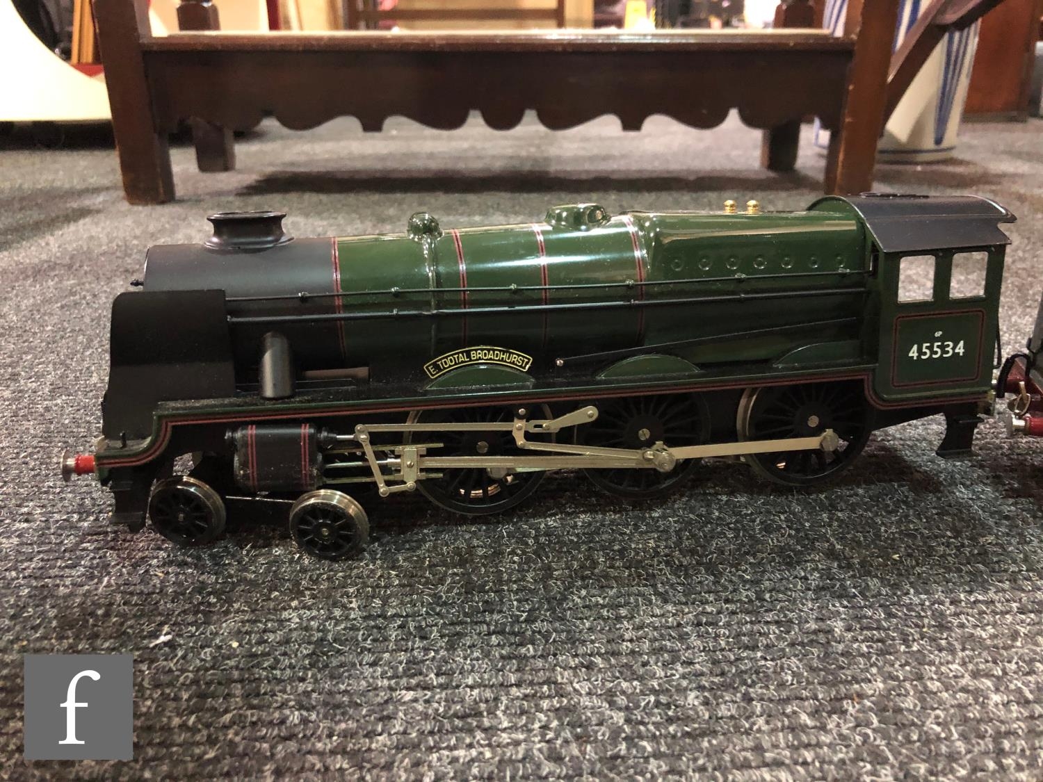 An O gauge Bassett-Lowke 4-6-0 BR green Patriot Class 'E. Tootal Broadhurst' locomotive, lacking original box but housed in wooden box.