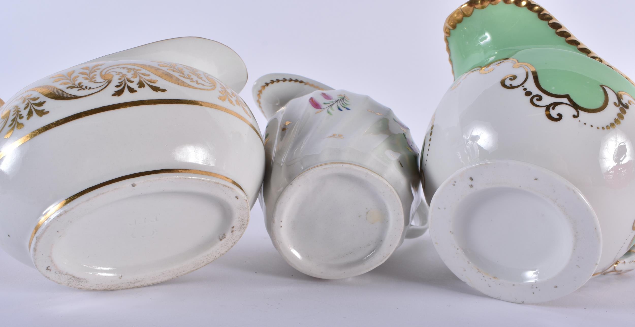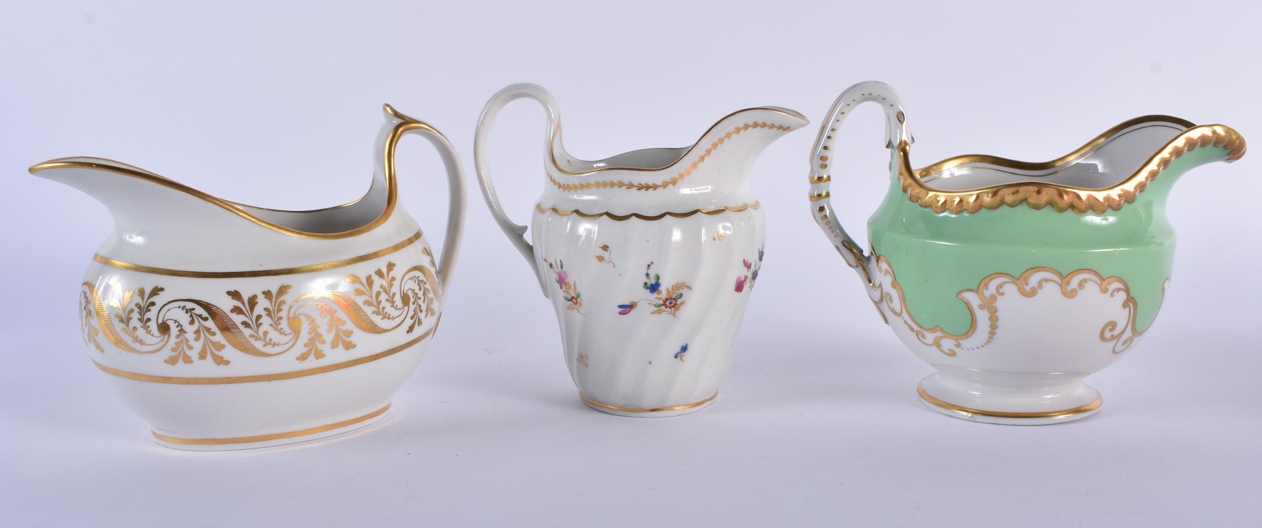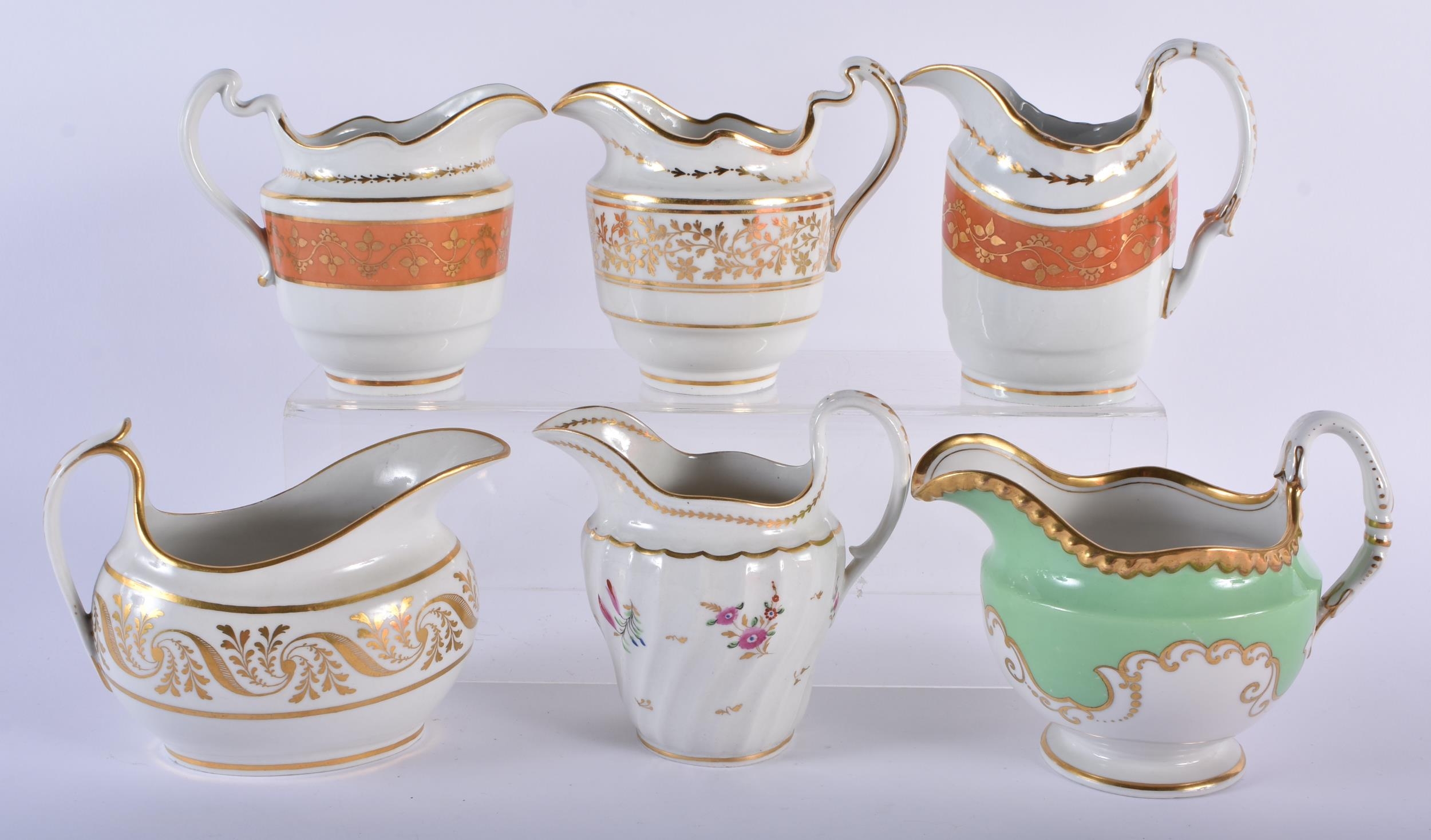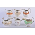 A SET OF SIX EARLY 19TH CENTURY FLIGHT BARR AND BARR CREAM JUGS in various forms and sizes. Largest 12.5cm wide. (6)