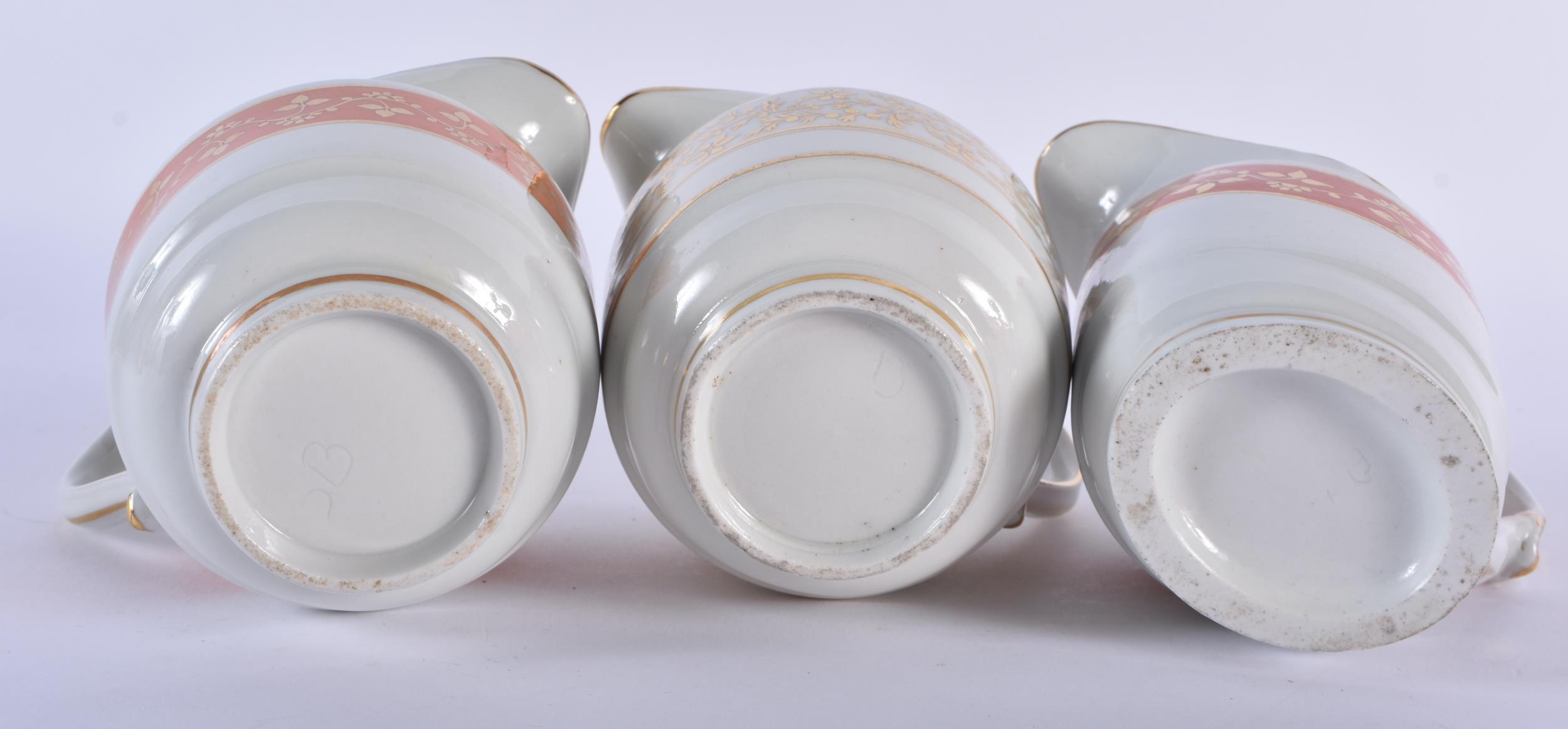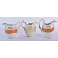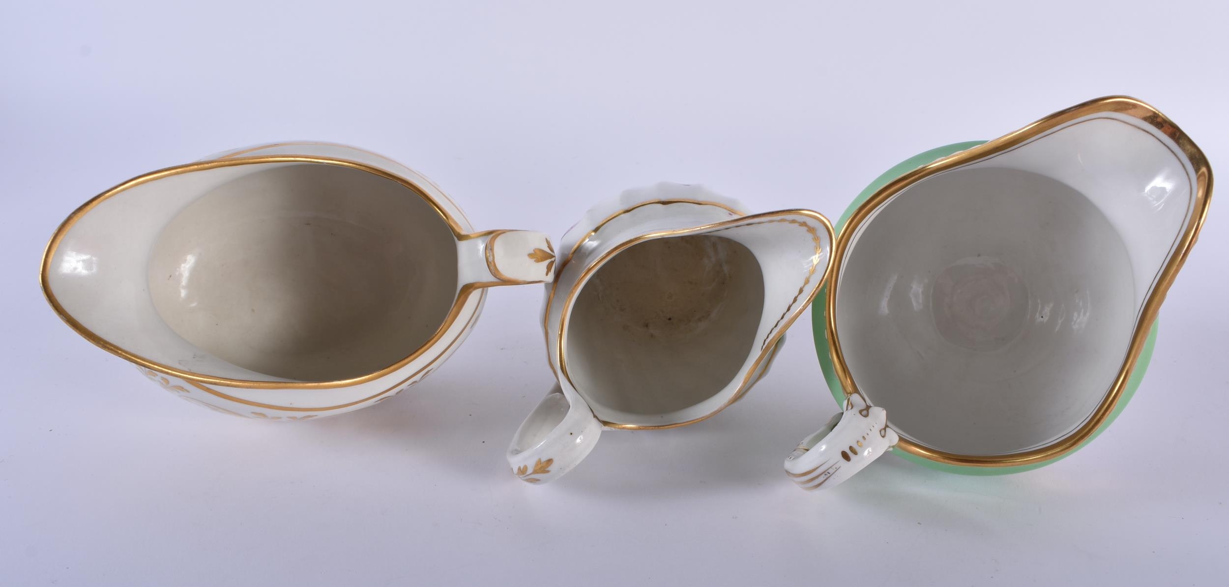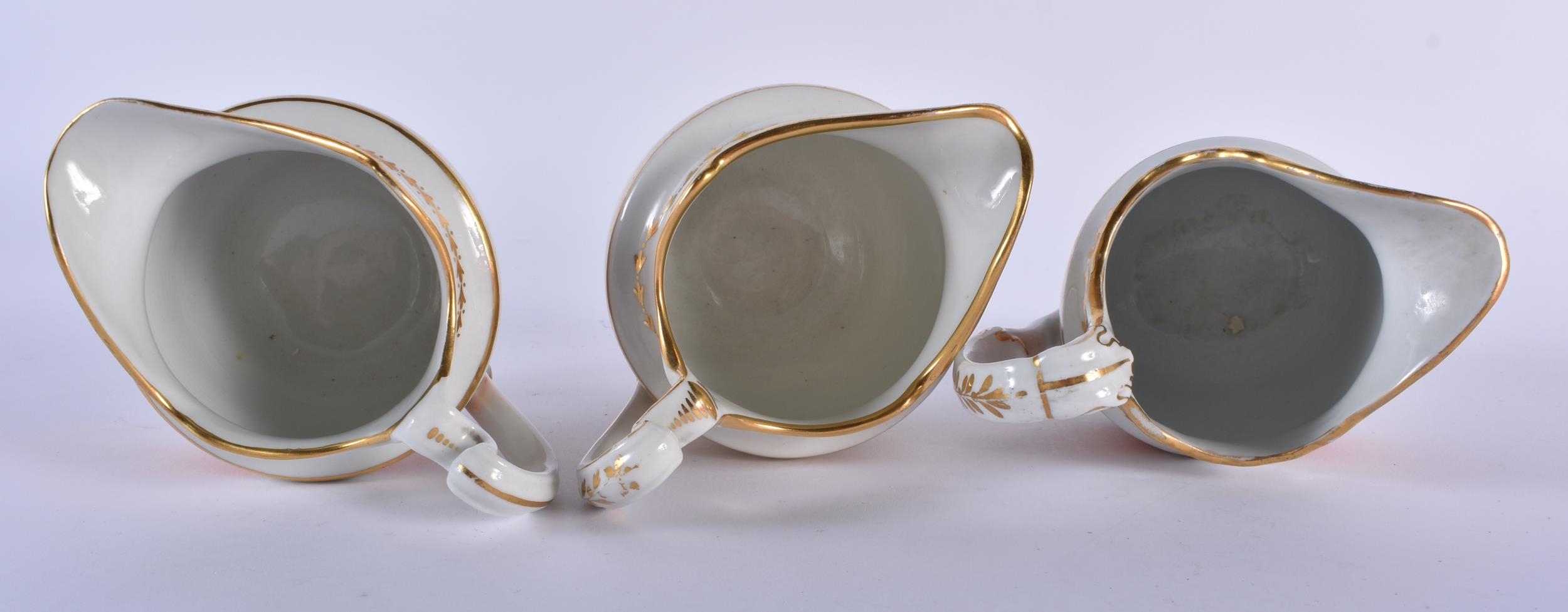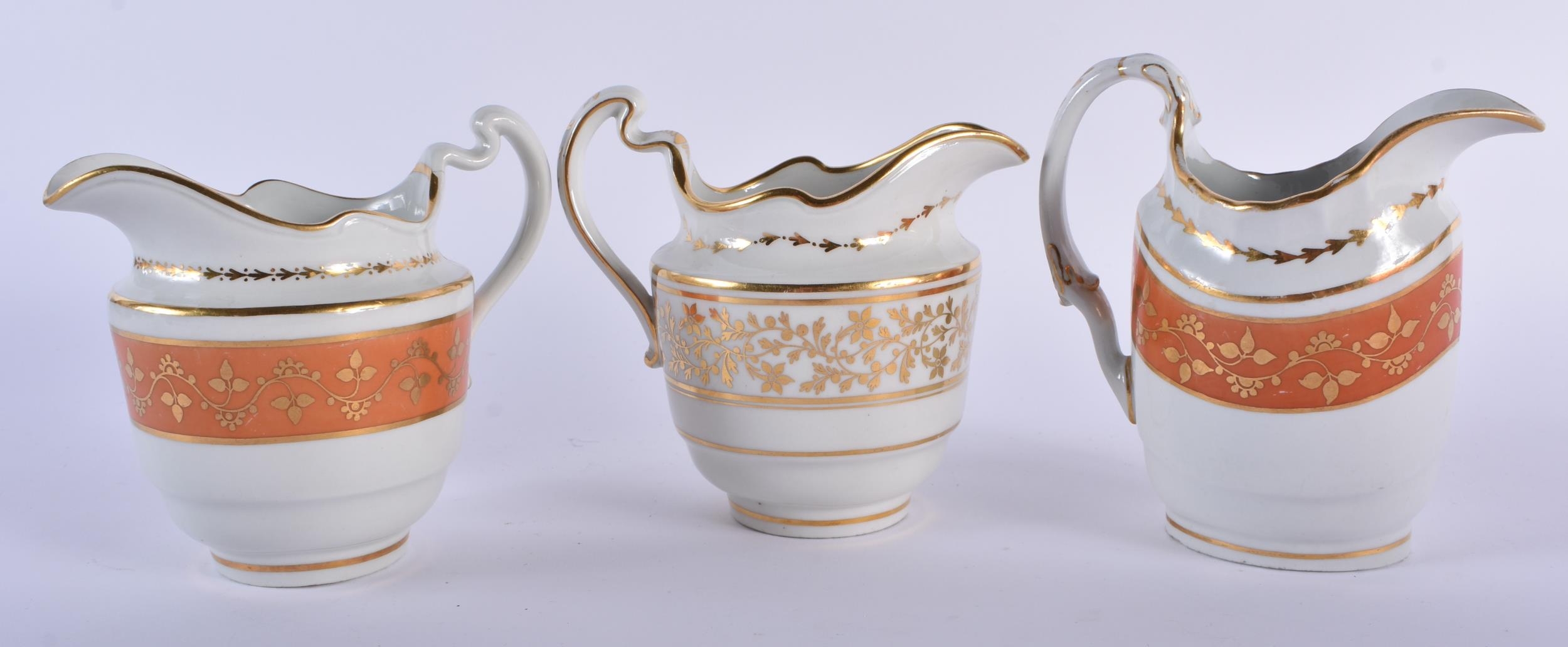 A SET OF SIX EARLY 19TH CENTURY FLIGHT BARR AND BARR CREAM JUGS in various forms and sizes. Largest 12.5cm wide. (6)