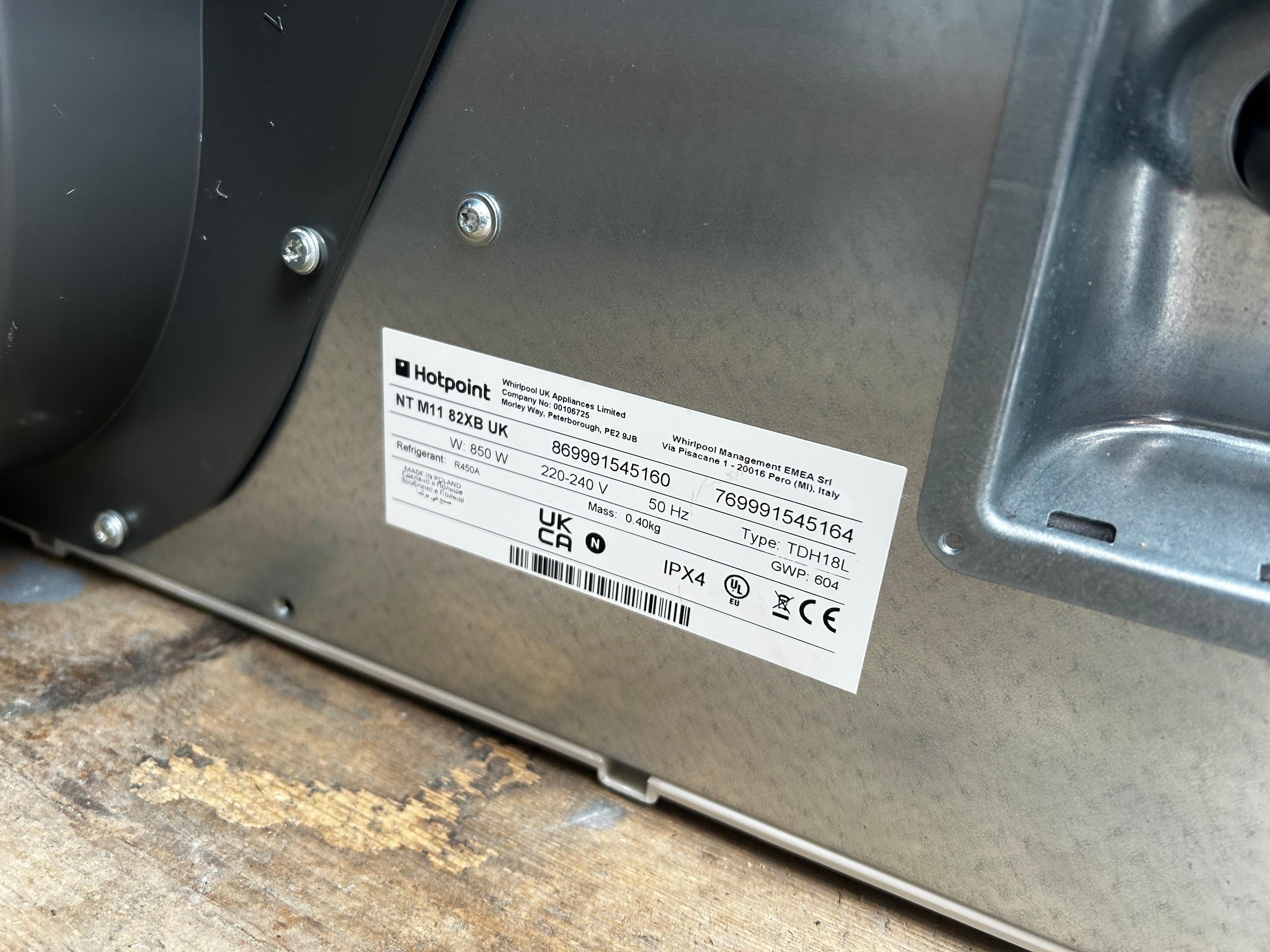Hotpoint heat pump 8KG tumble dryer - PAT not function tested.