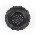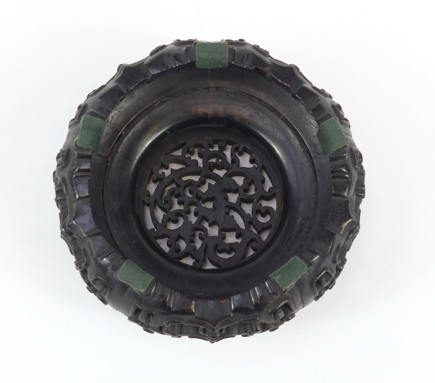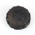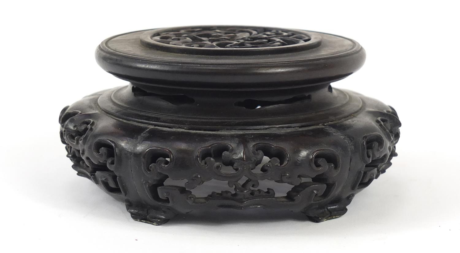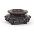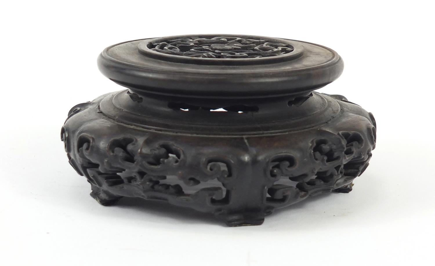 Good Chinese carved hardwood stand carved and pierced with flowers, 12cm in diameter