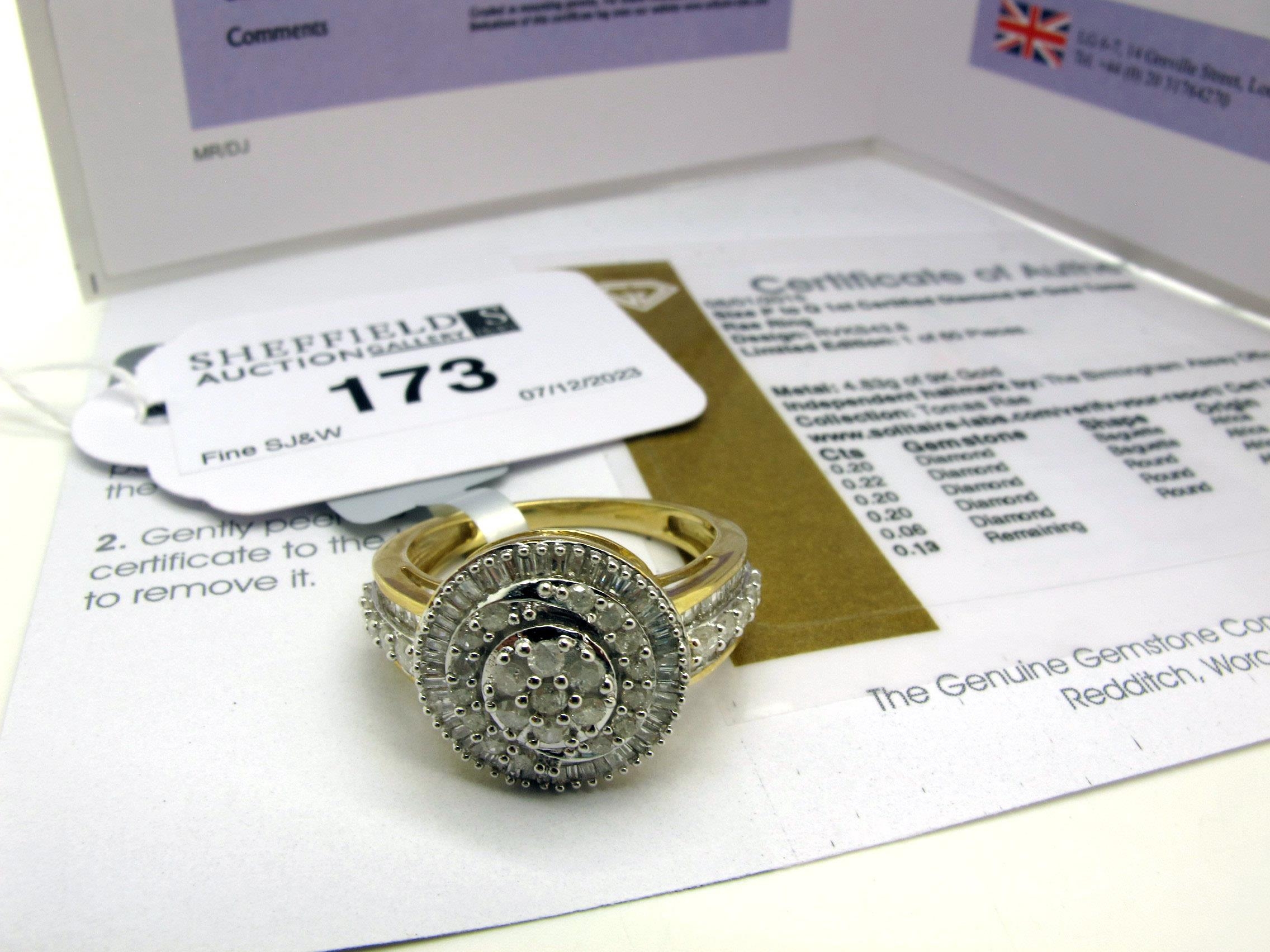 The Genuine Gemstone Company Ltd; A 9ct Gold Tomas Rae 1ct Diamond Cluster Ring, allover mixed cut claw set stones, between wide inset shoulders (finger size P 1/2) (5 grams).