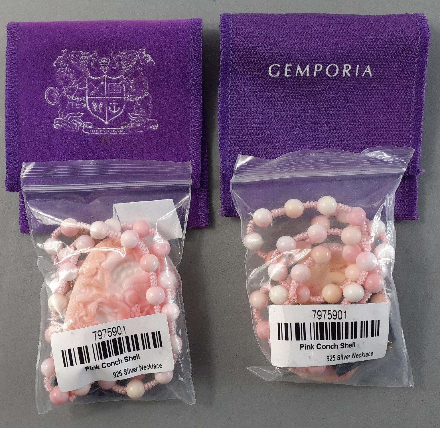 Two wonderful GEMPORIA Queen Conch Shell Dragon Pendants on conch chains. Each 5cm approx.