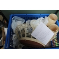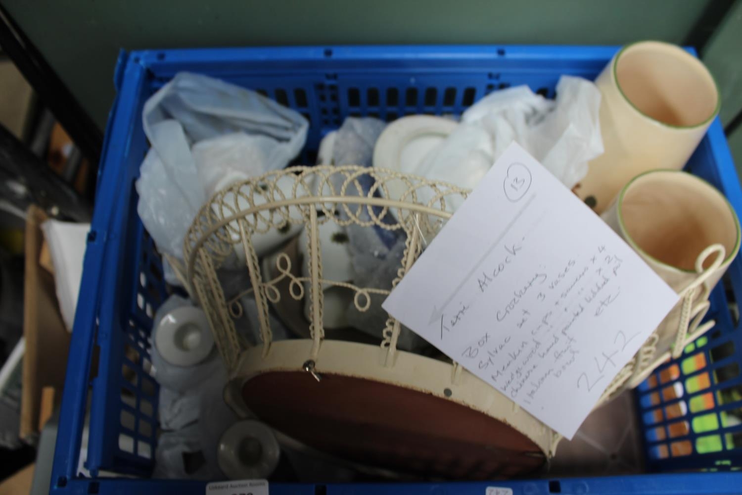 BOX OF VASES AND CERAMIC CANDLE STICKS, CUPS AND SAUCERS
