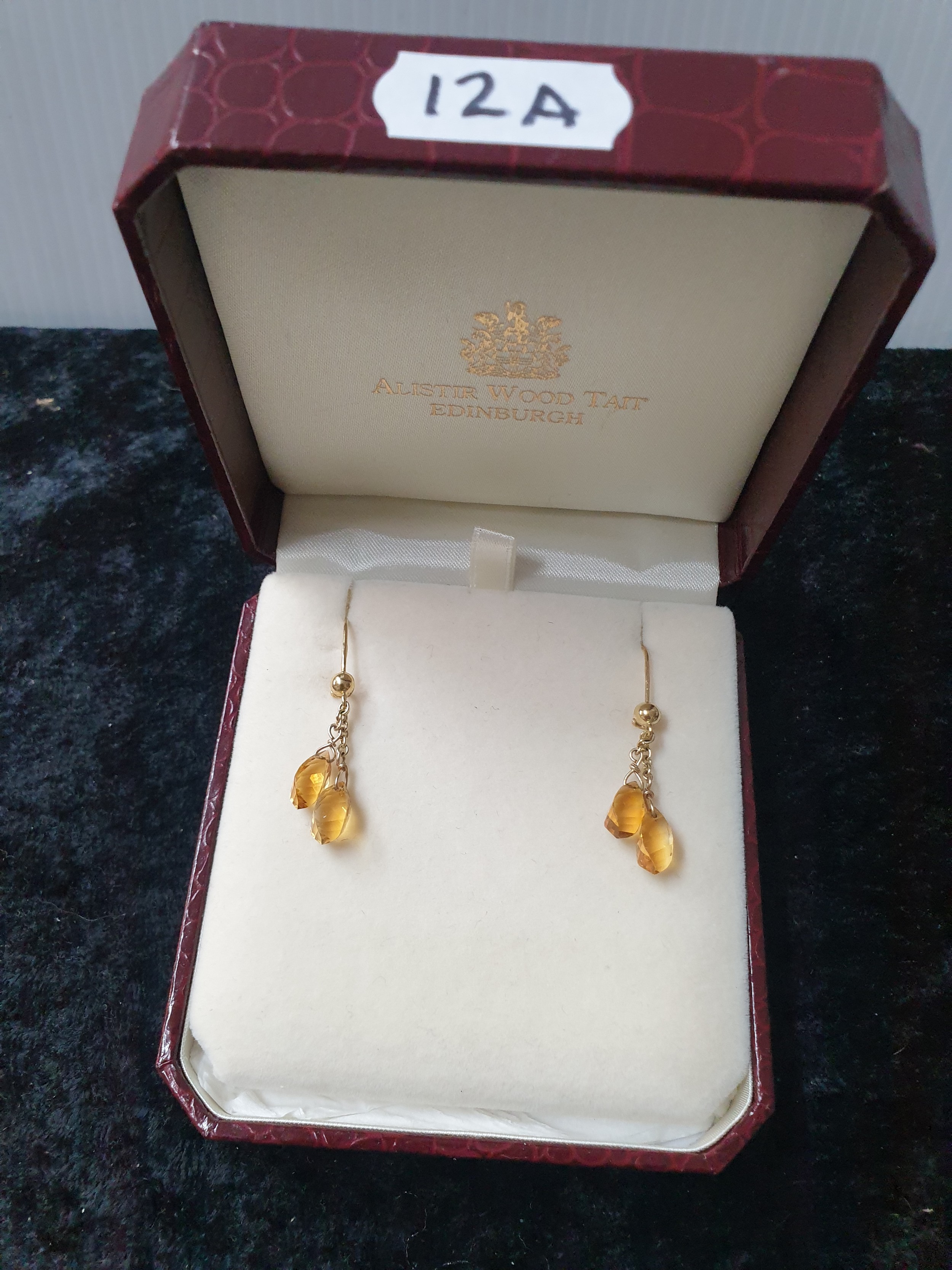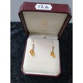 Beautiful 9ct Gold Amber Drop Ear Rings.