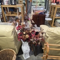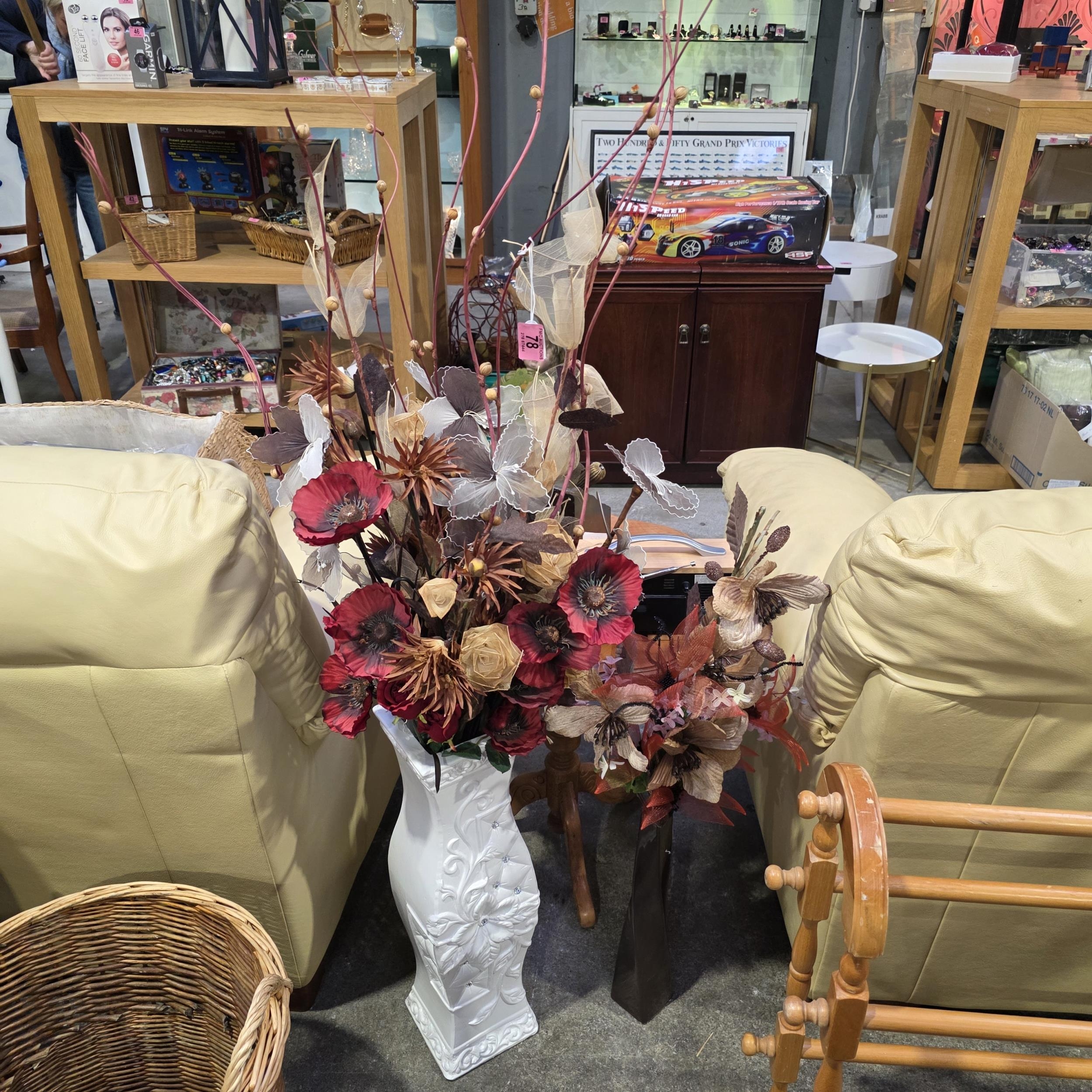 Tall Slim Brown Vase & Large White Vase With Contents