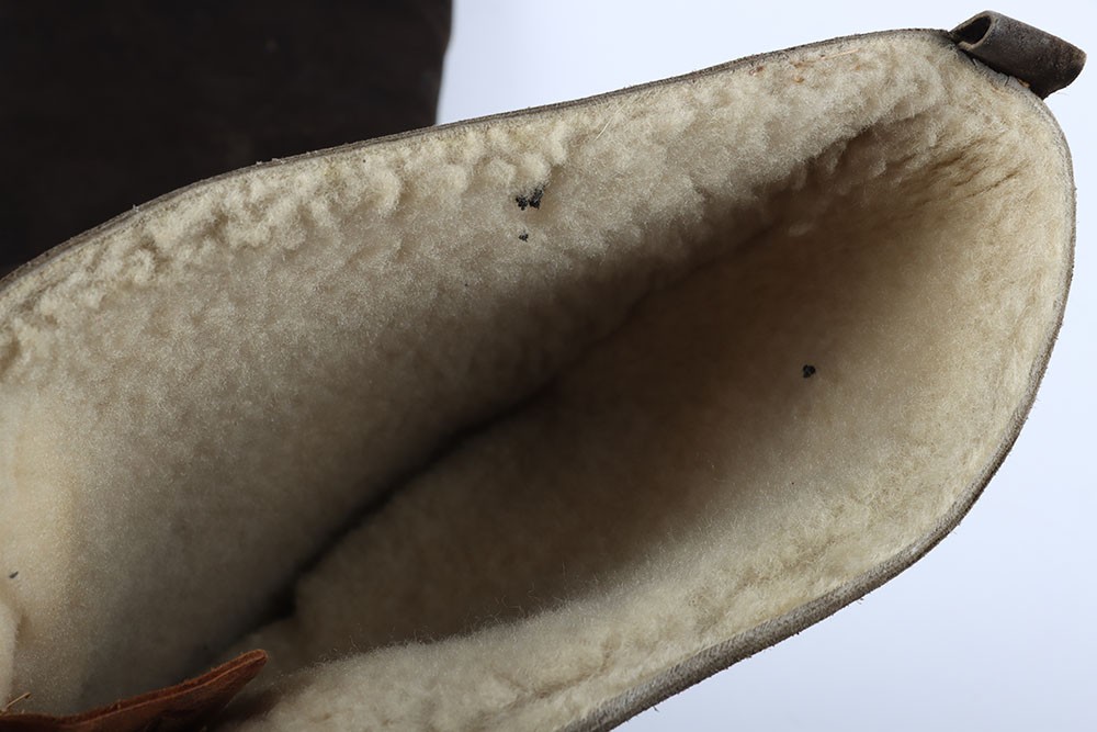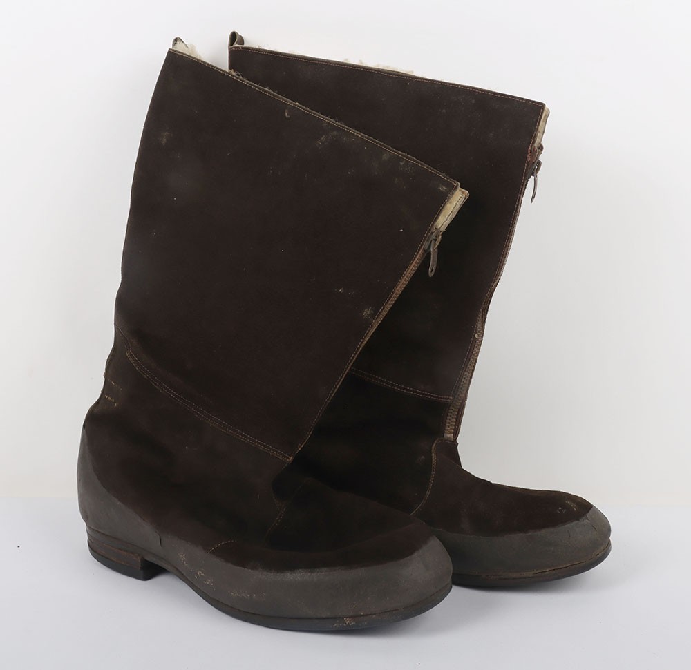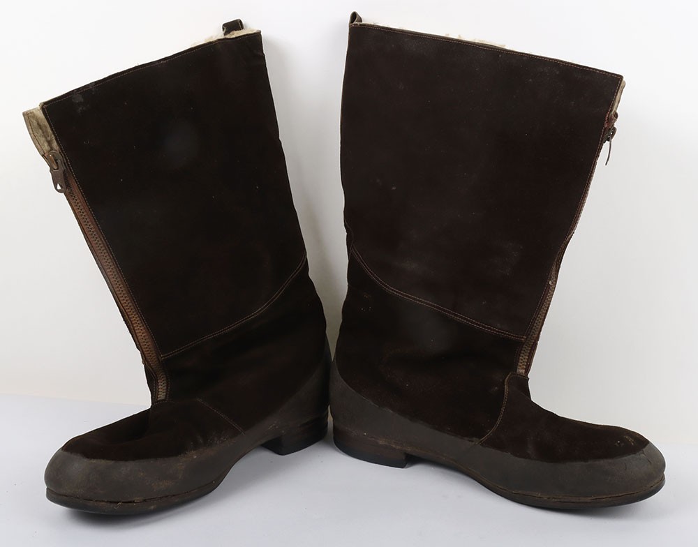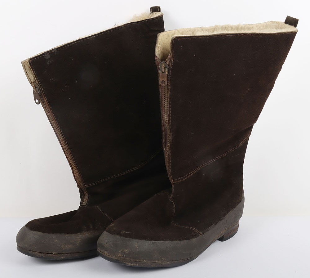 WW2 RAF 41 Pattern Flying Boots. A very nice pair of RAF 41 pattern flying boots in an above average condition. The suede uppers are in good condition with some minimal age related wear. The vulcanized surrounds around the foot are in good condition and appear to be free from severe cracking. Lightening zippers and a full fur lining. The leather straps which once secured around the ankle have since been removed.