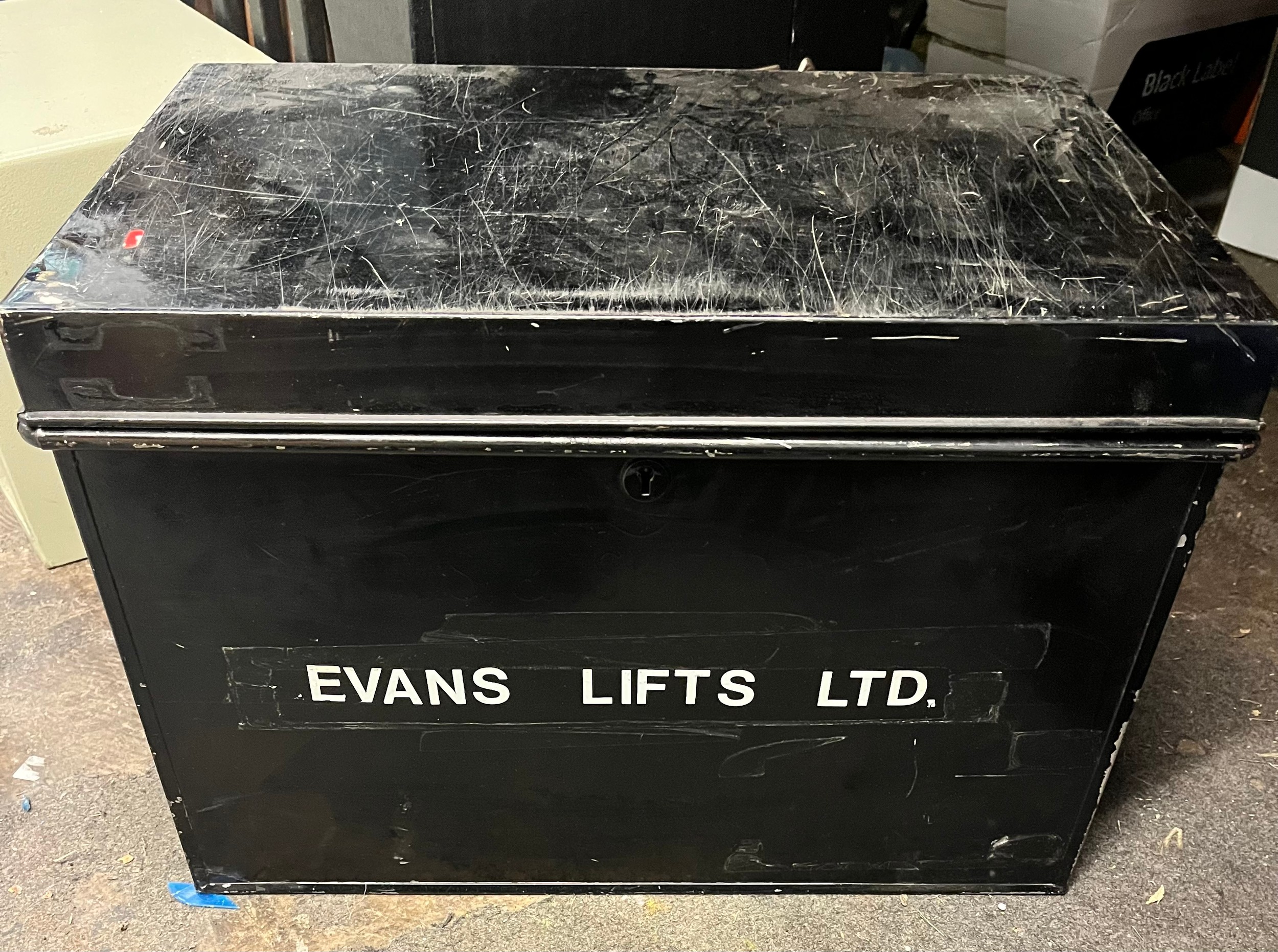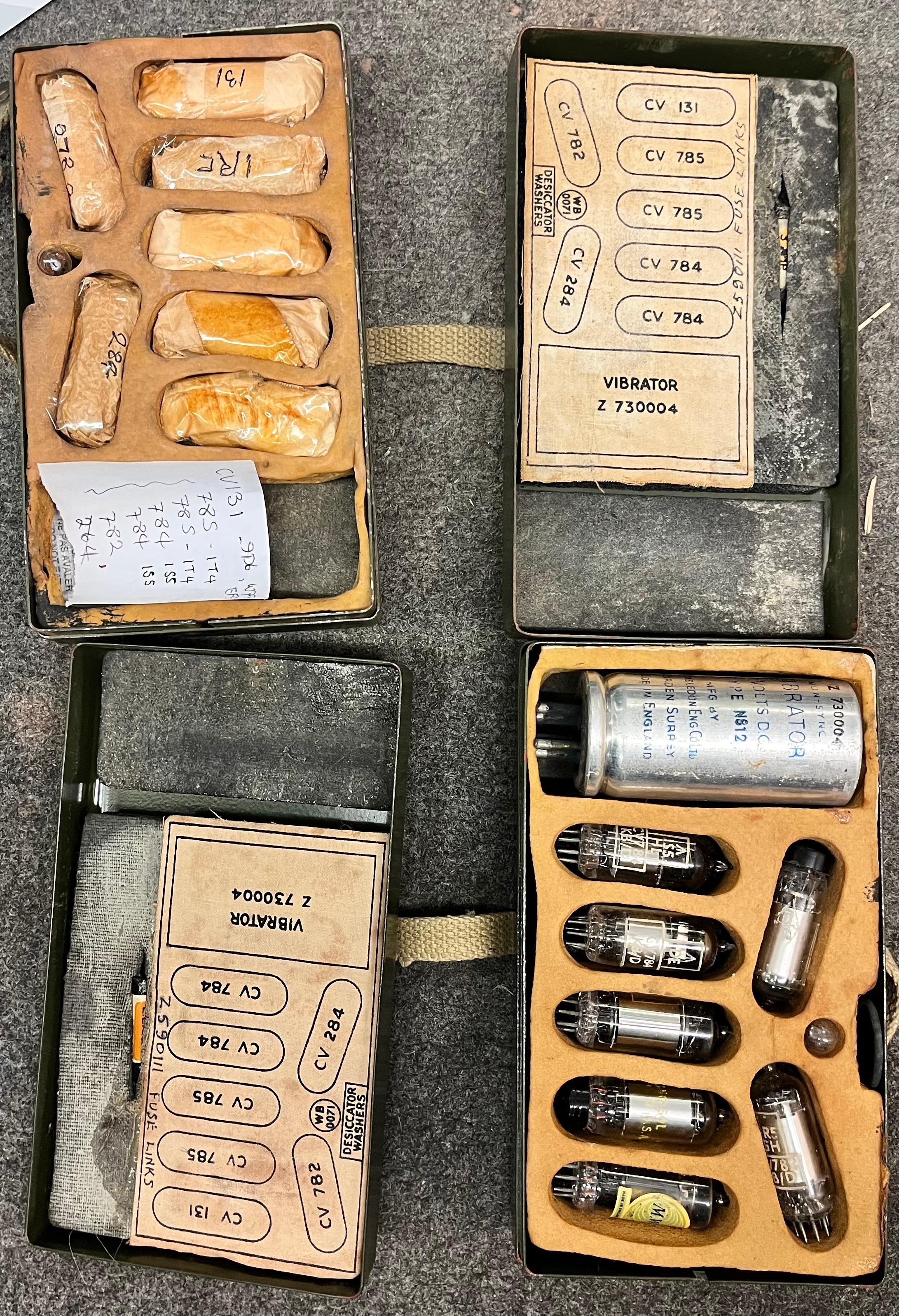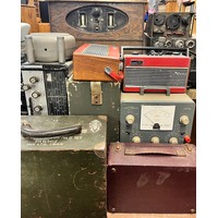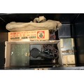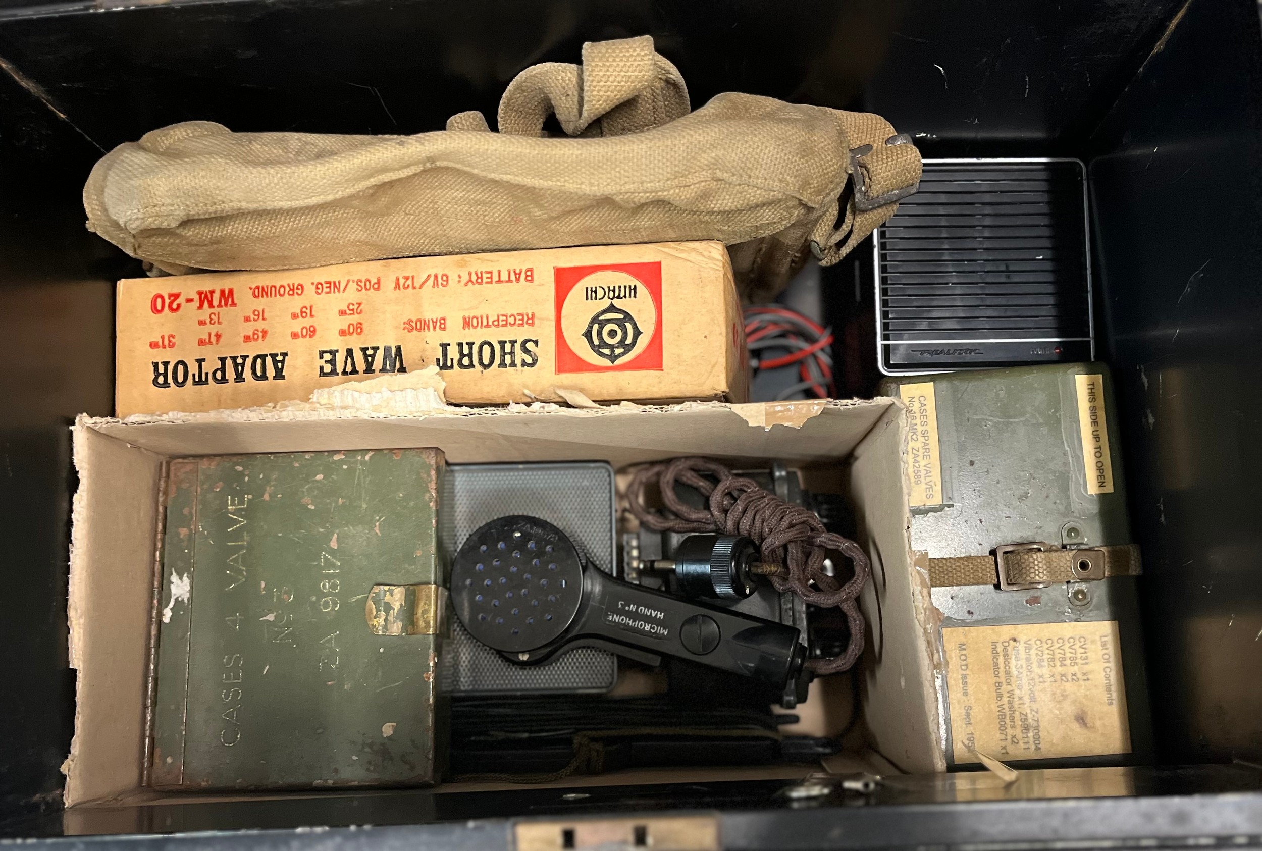 ENAMEL TRUNK CONTAINING EDDYSTONE SPEAKERS, HAND NO.3 MICROPHONE, MILITARY MARK II CASE, SHORT WAVE ADAPTER