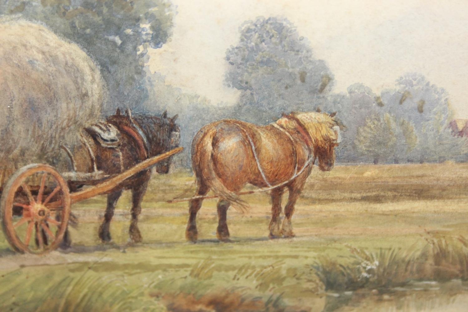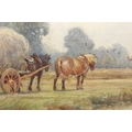 watercolour depicting farmers with haycarts and horses,