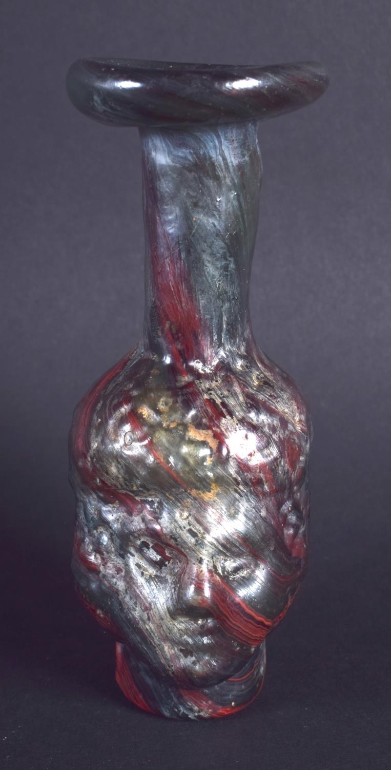 A 19TH CENTURY EUROPEAN MARBLED GLASS PORTRAIT VASE After the Antique. 10 cm high.