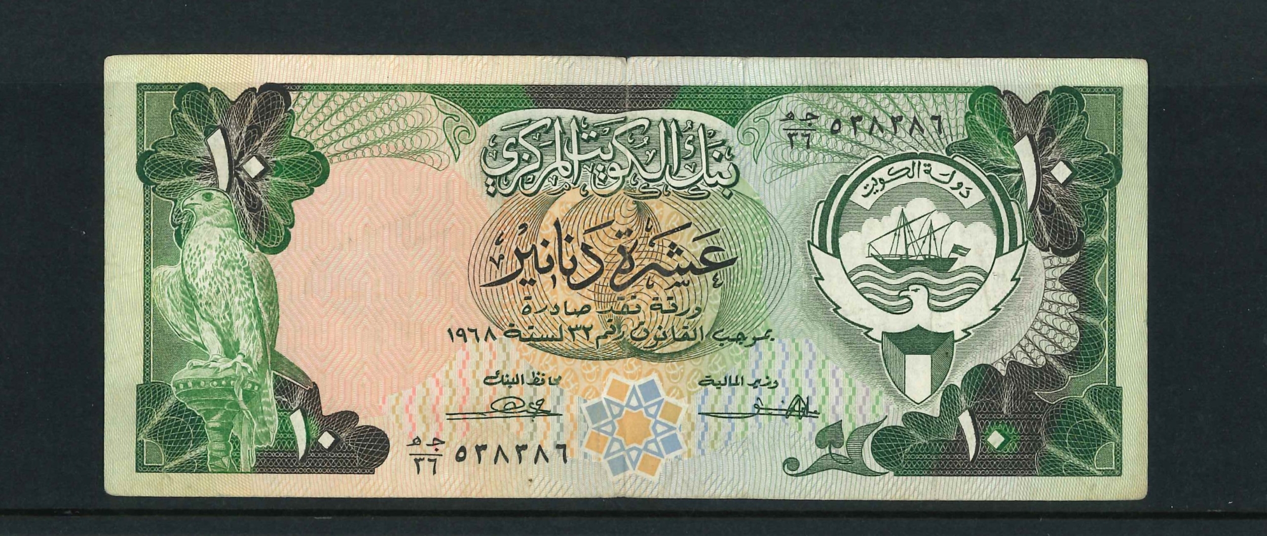 Banknotes; Kuwait; 1980-91 10d, signed Abbas and al-Atiquel,...