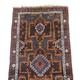 Rectangular Middle Eastern rug decorated with a geometric pattern onto a predominantly blue ground, 132cm x 88cm