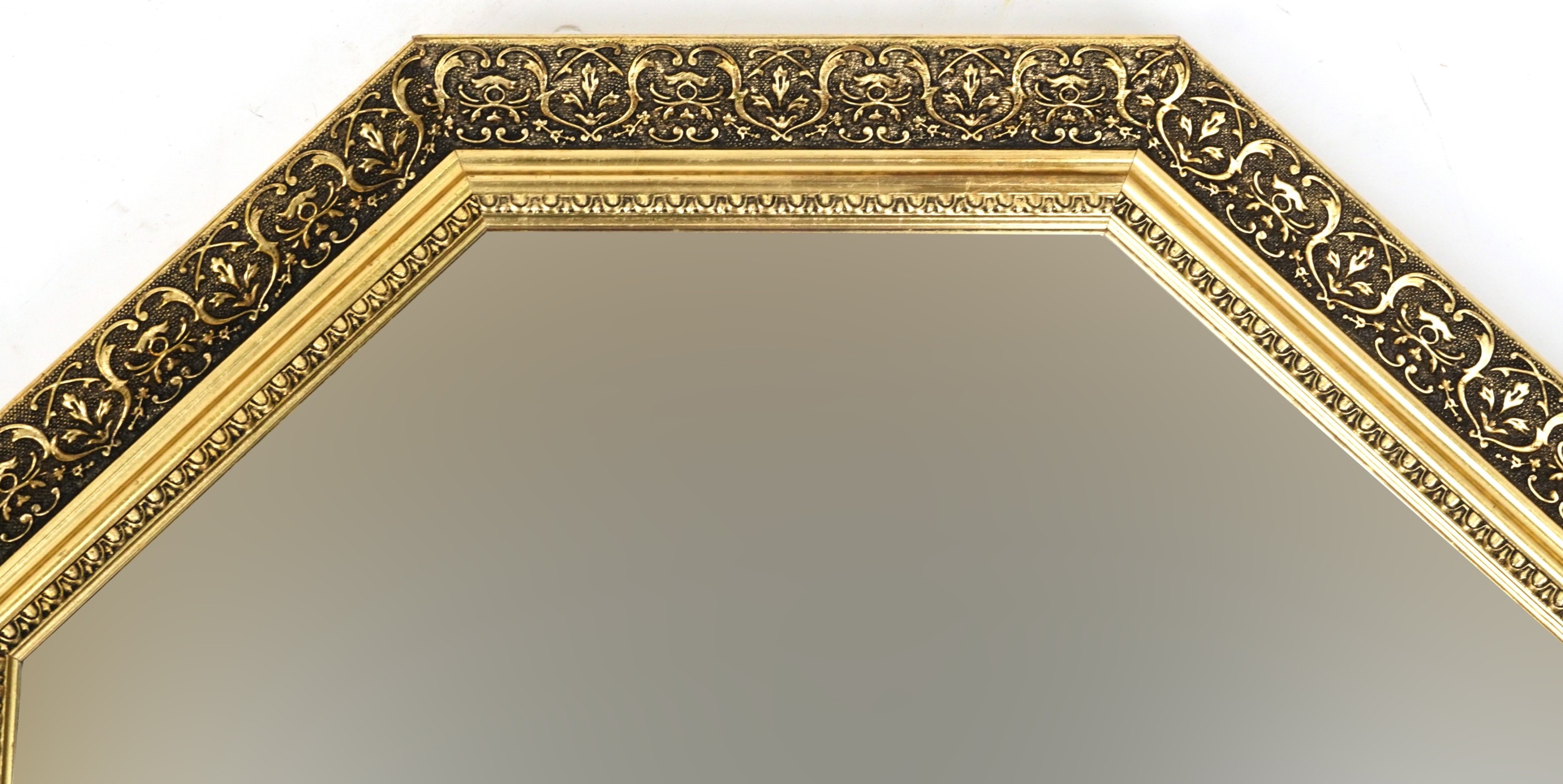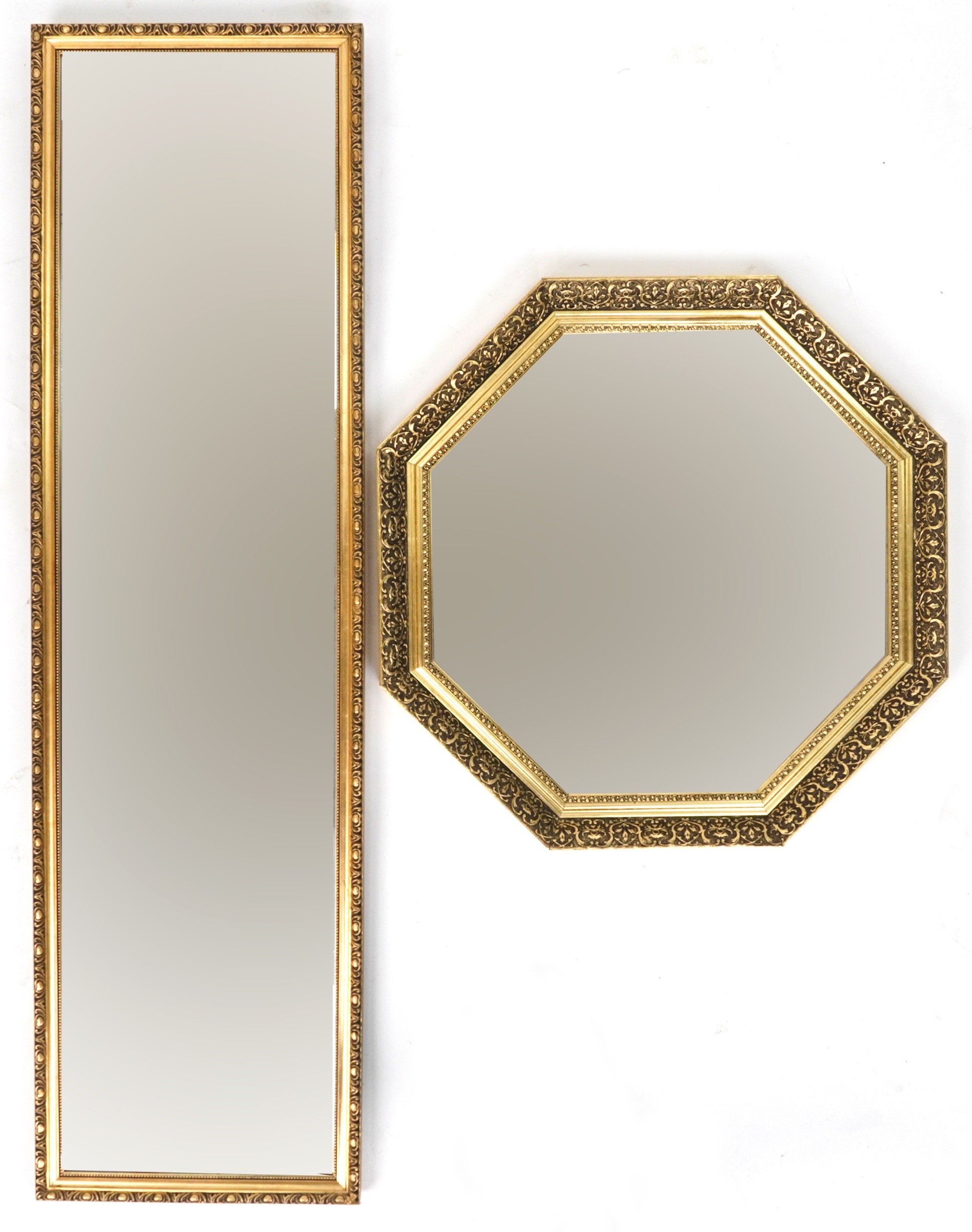 A late 20th century gilt framed octagonal wall mirror together with a similar full length mirror, the largest 127cm x 35cm.