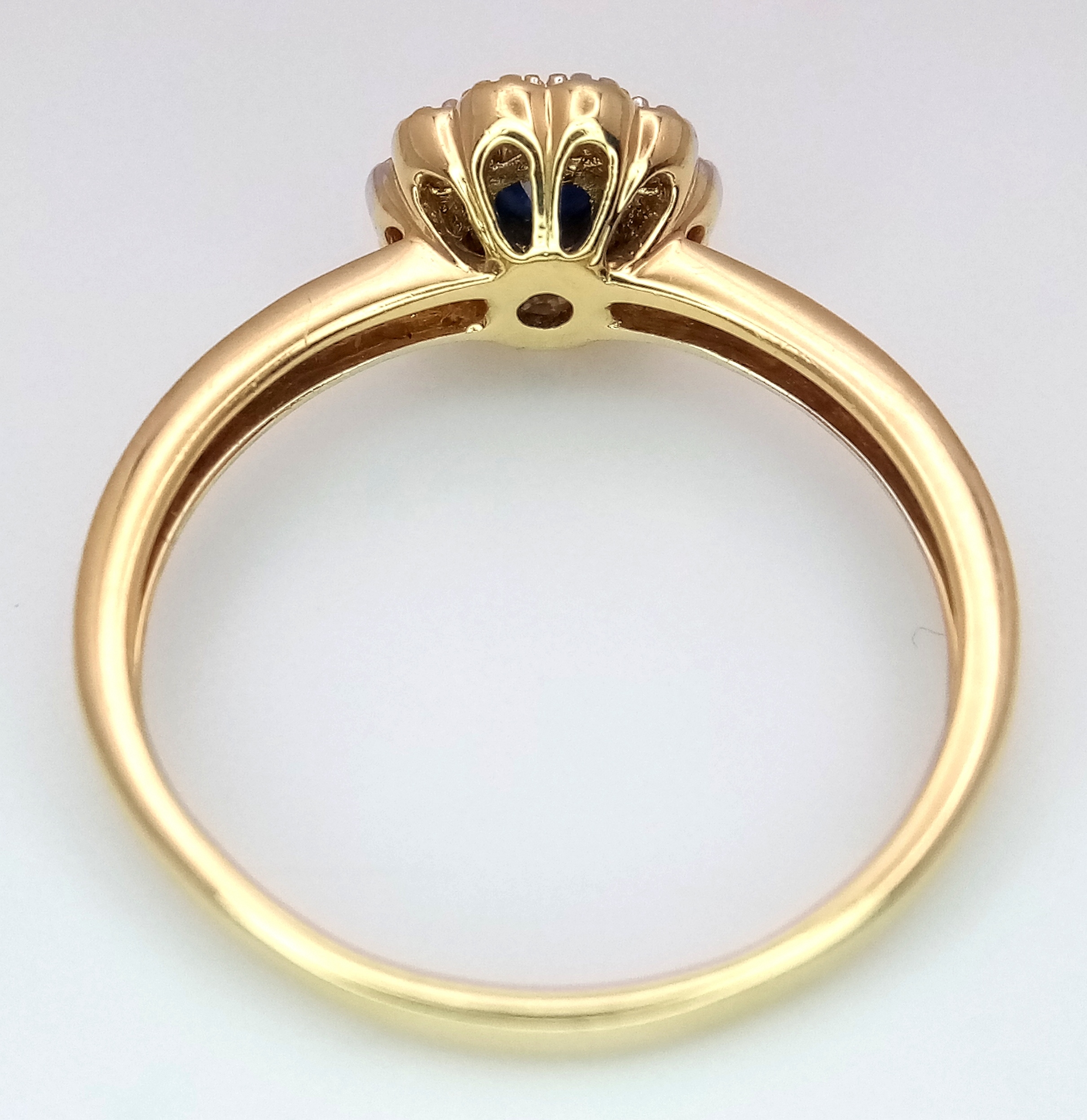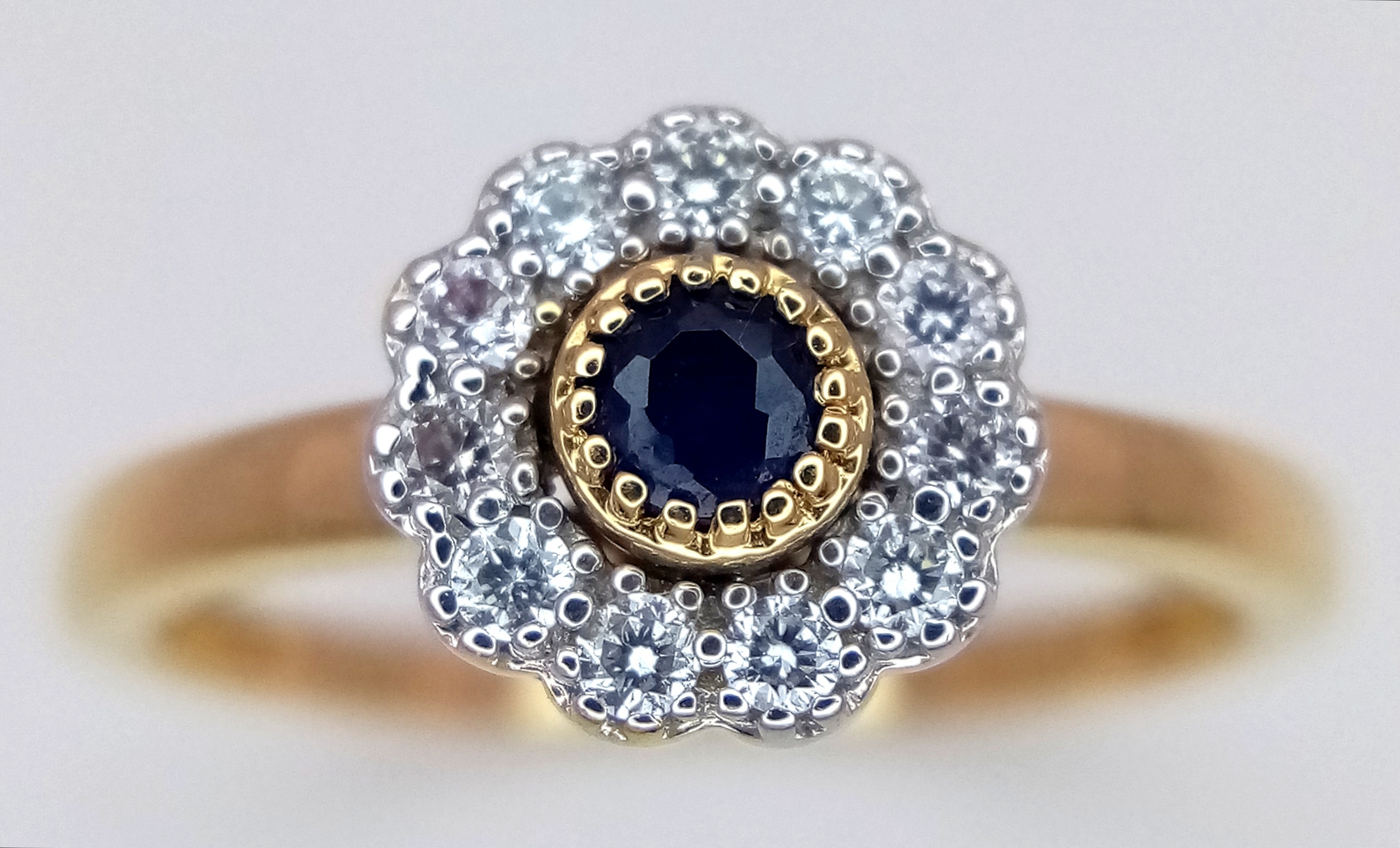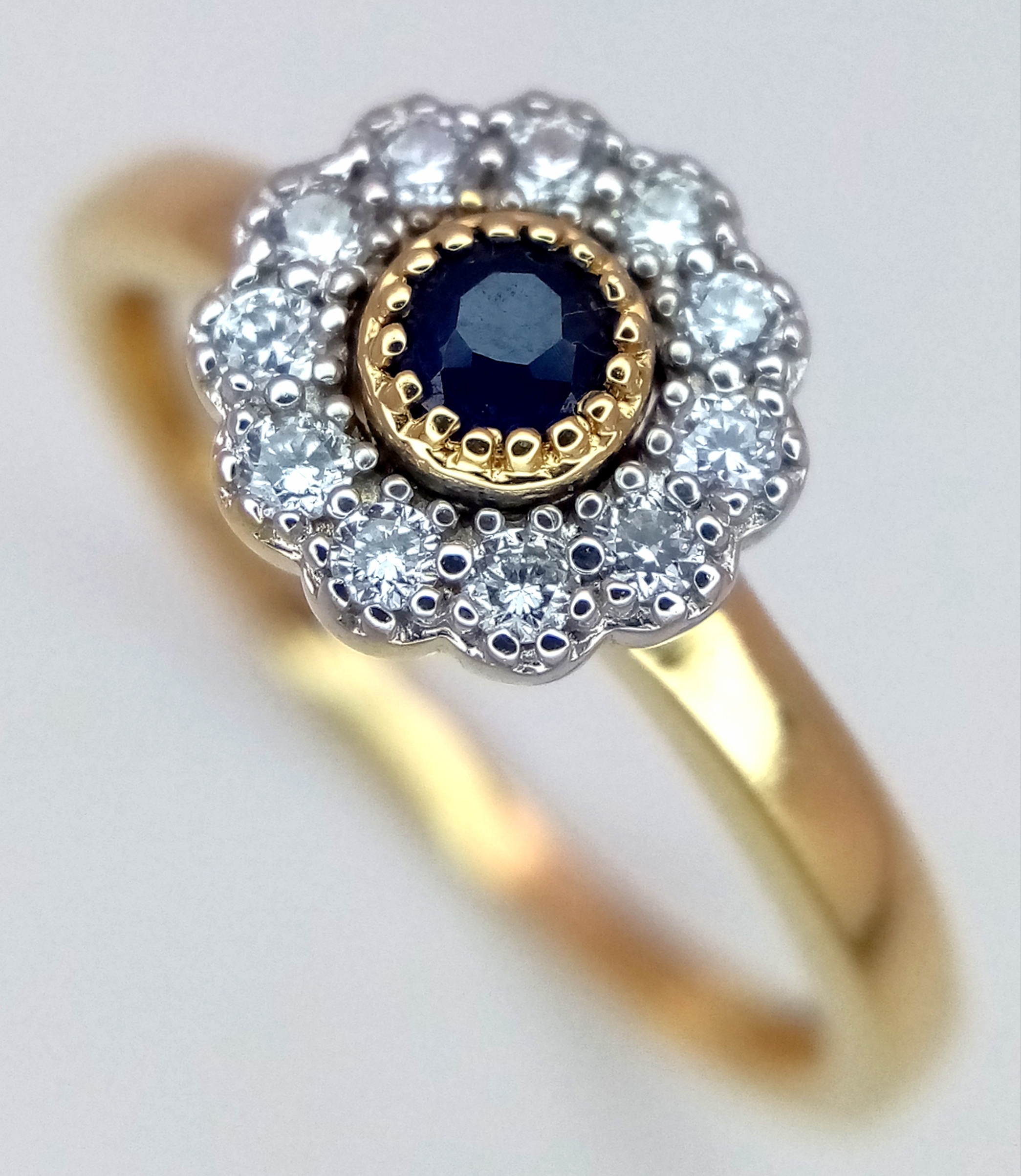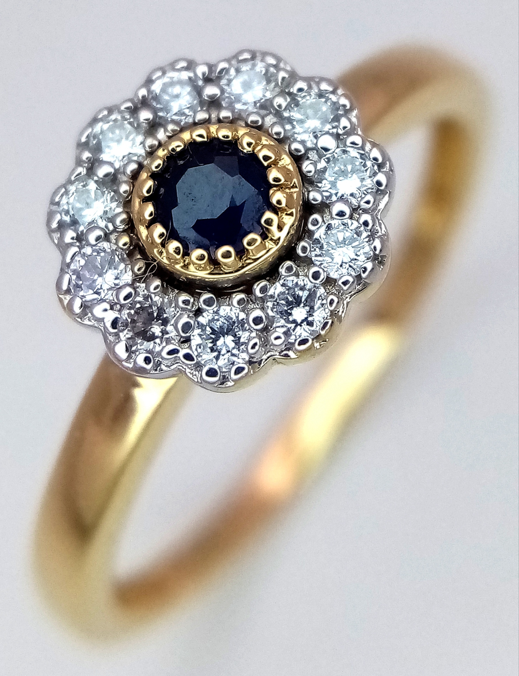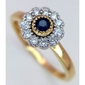 AN 18K YELLOW GOLD DIAMOND & SAPPHIRE CLUSTER RING 0.25CT , 2.4G TOTAL WEIGHT, SIZE N. REF: A/S 1210 - 1