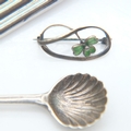 Two silver brooches and a silver scalloped spoon, 13g combined. UK P&P Group 0 (£7+VAT for the first lot and £1+VAT for subsequent lots)