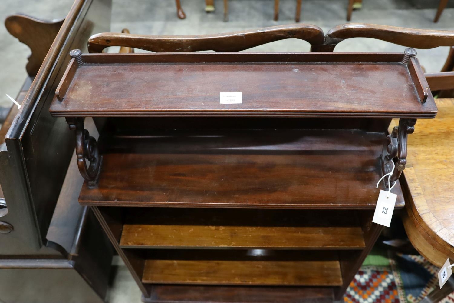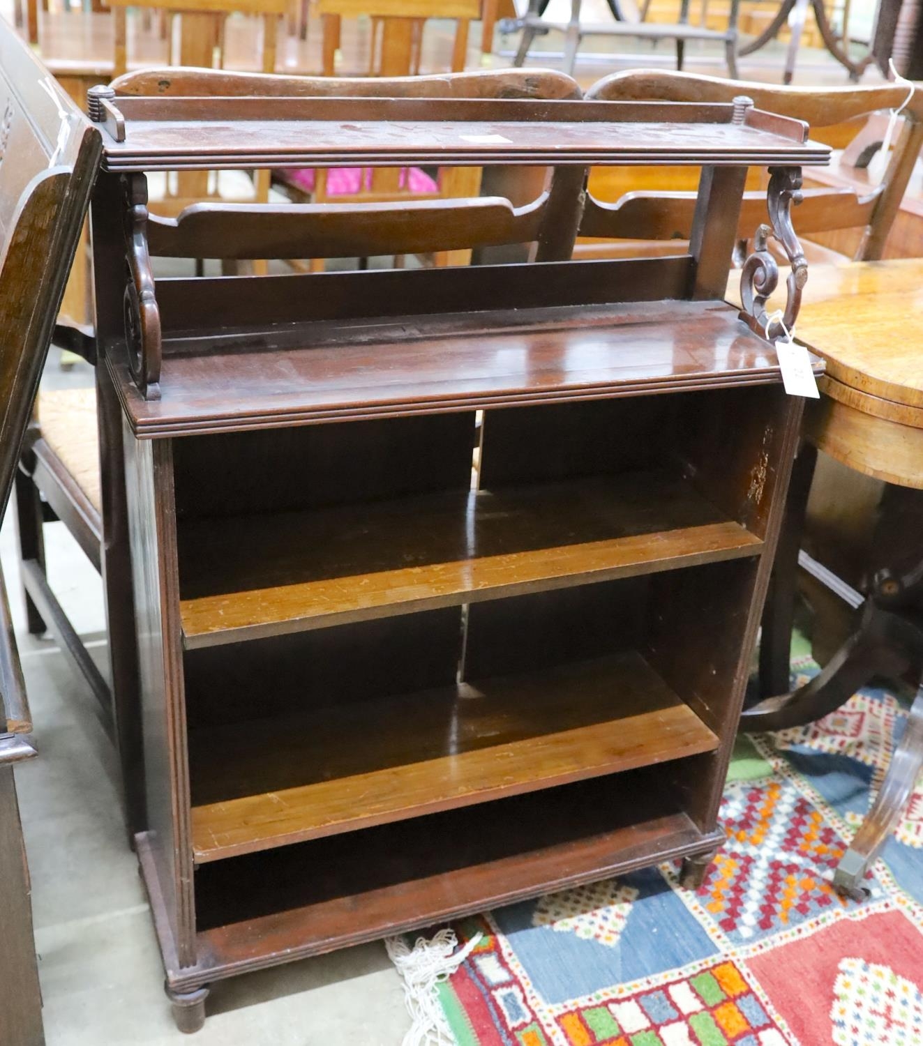 A small Regency style mahogany open bookcase, length70cm, depth 24cm, height 98cm