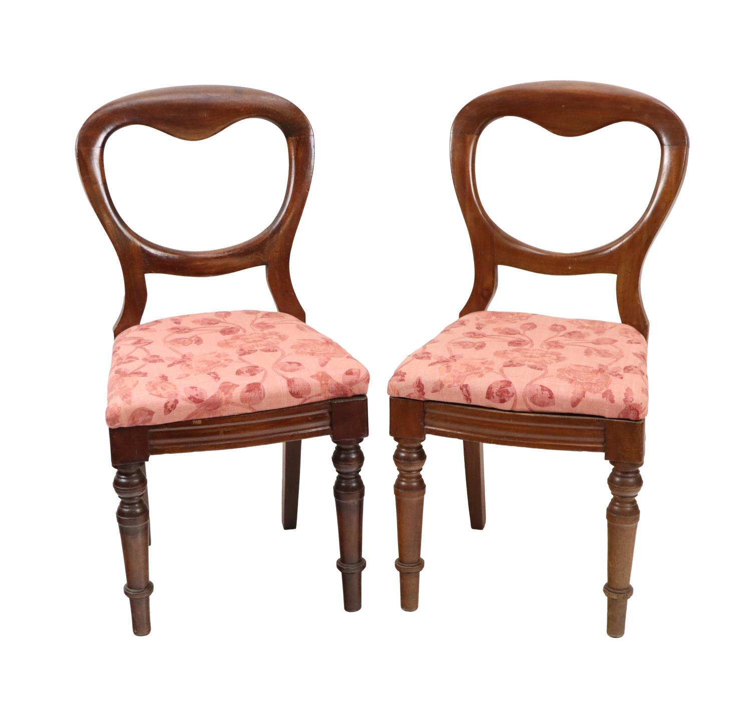 A harlequin set of 8 Victorian mahogany balloon back Dining Chairs, above upholstered seats on front tapering legs. (8)