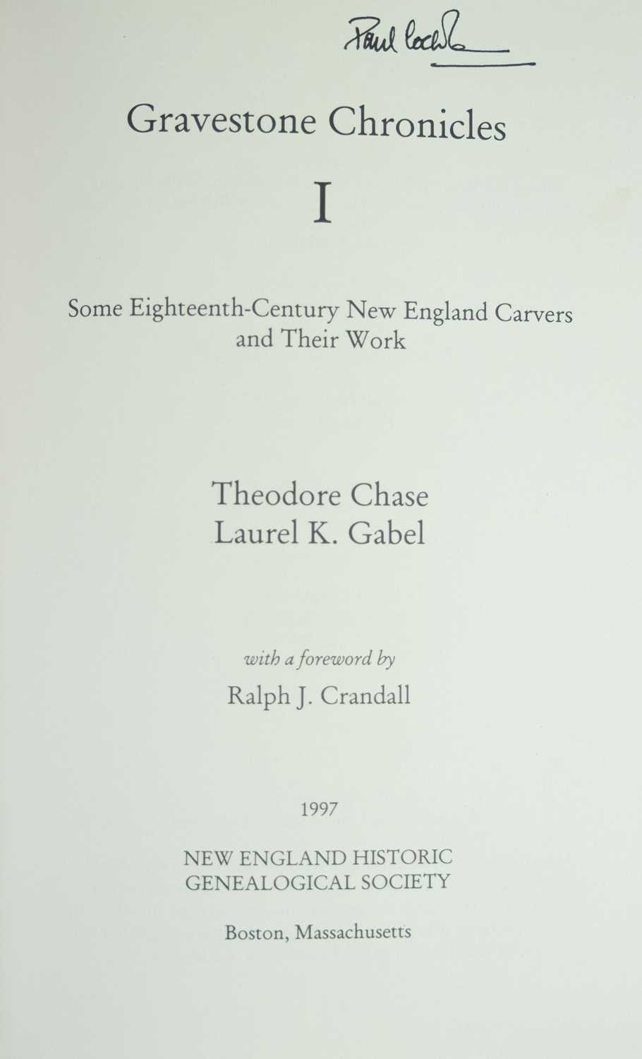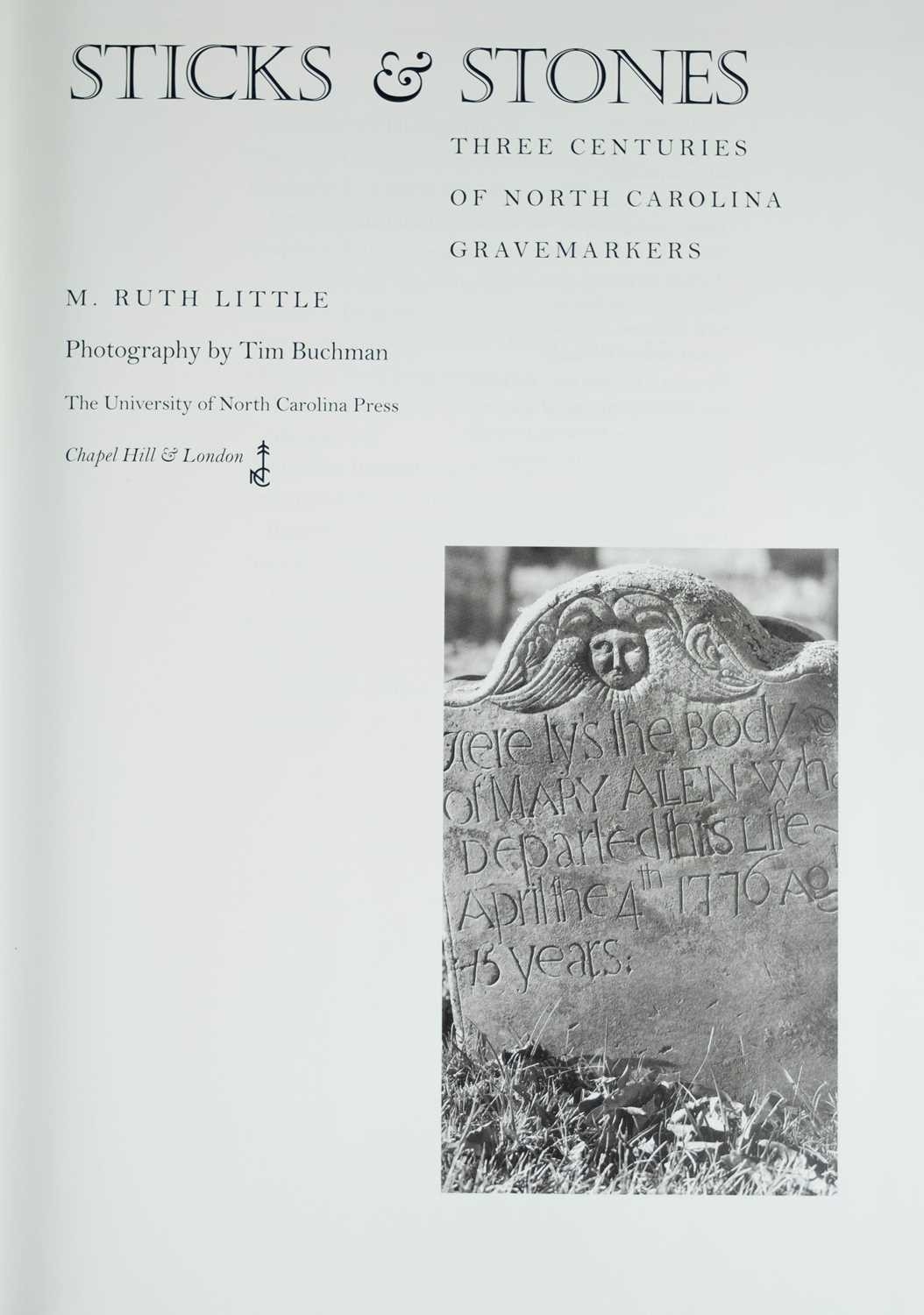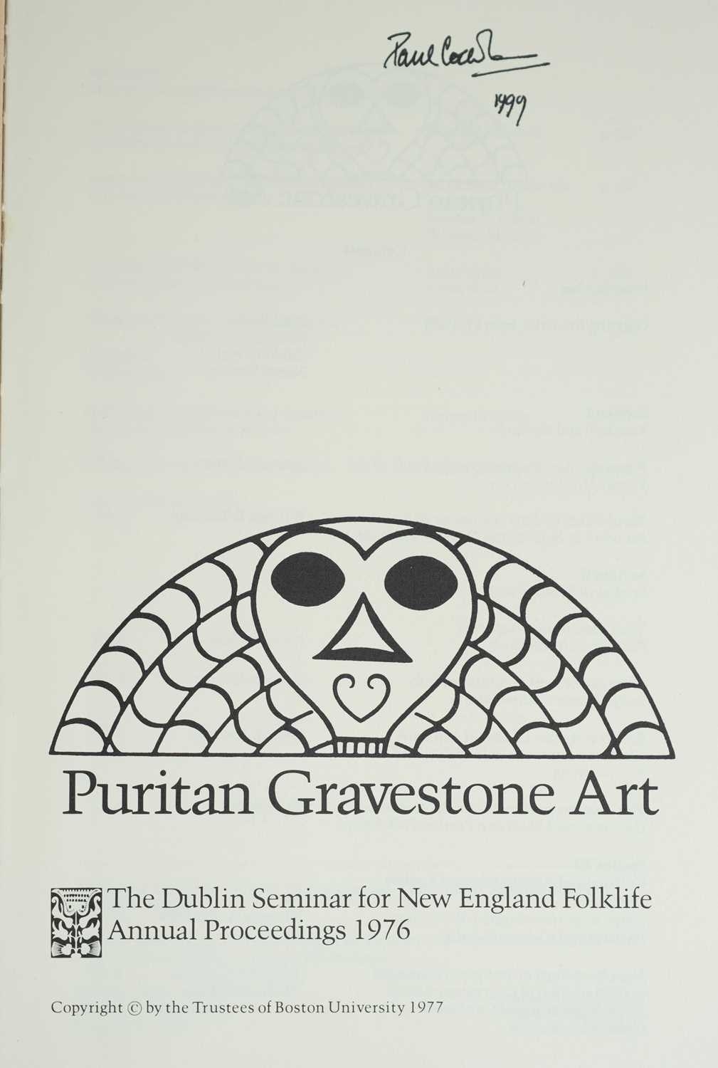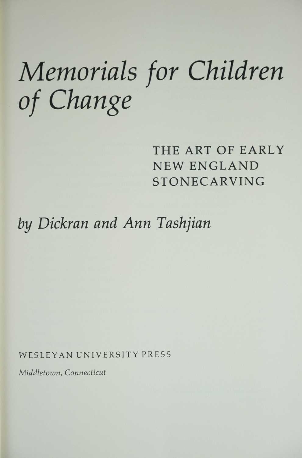 (American Graveyards and Gravestones) Thirteen works Includes publishers quarter cloth, limited edition copy of Harriette Merrifield Forbes, 'Gravestones of Early New England', No. 294/780, The Riverside Press, Cambridge Masachusetts, Nov. 1927, plates; Diana Williams Combs, 'Early Gravestone Art in Georgia and South Carolina', The University of Georgia Press, Athens Georgia 1986; together with others work on gravestones and burial grounds in Connecticut and New Hampshire, all vg. (13)