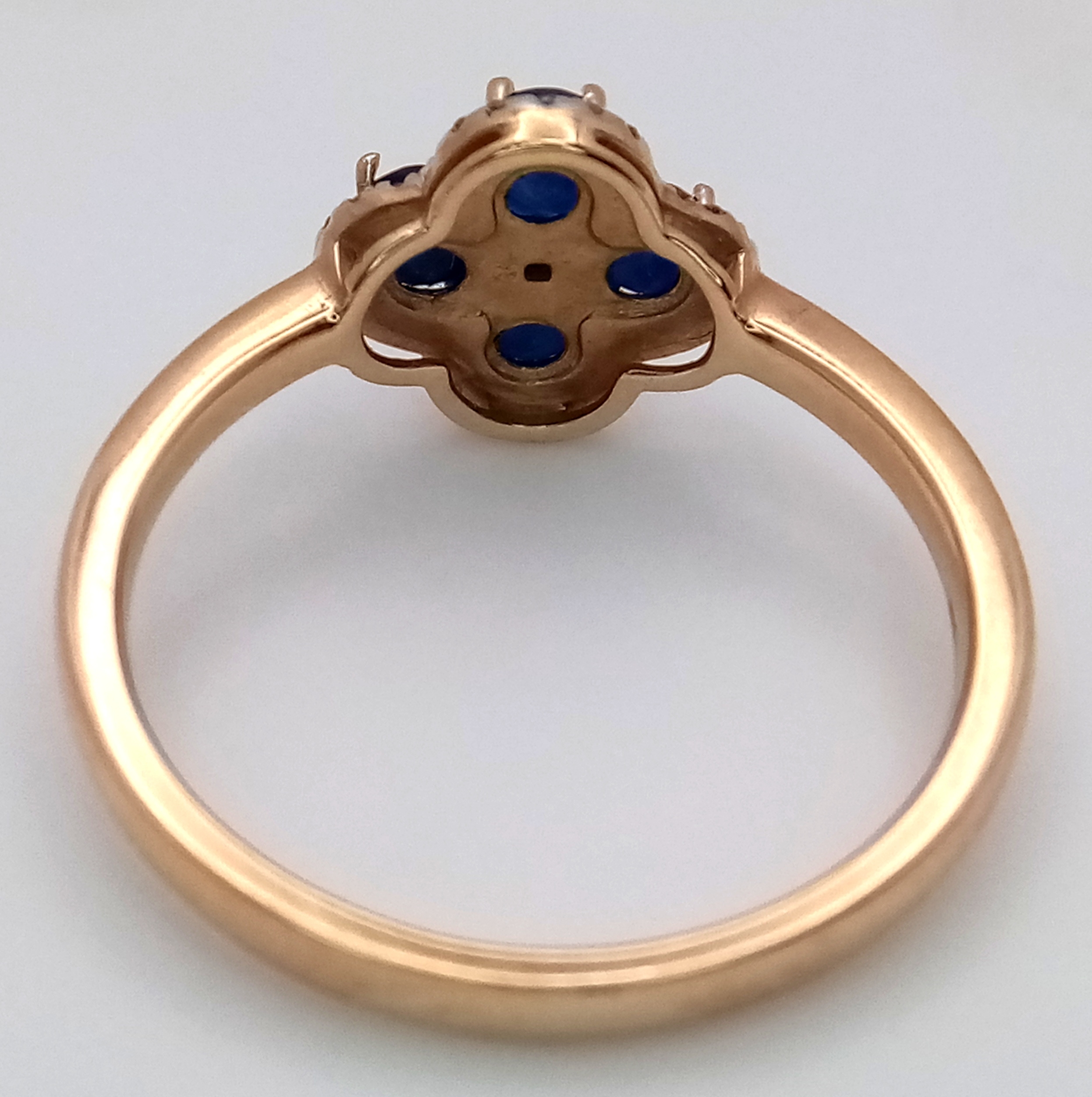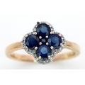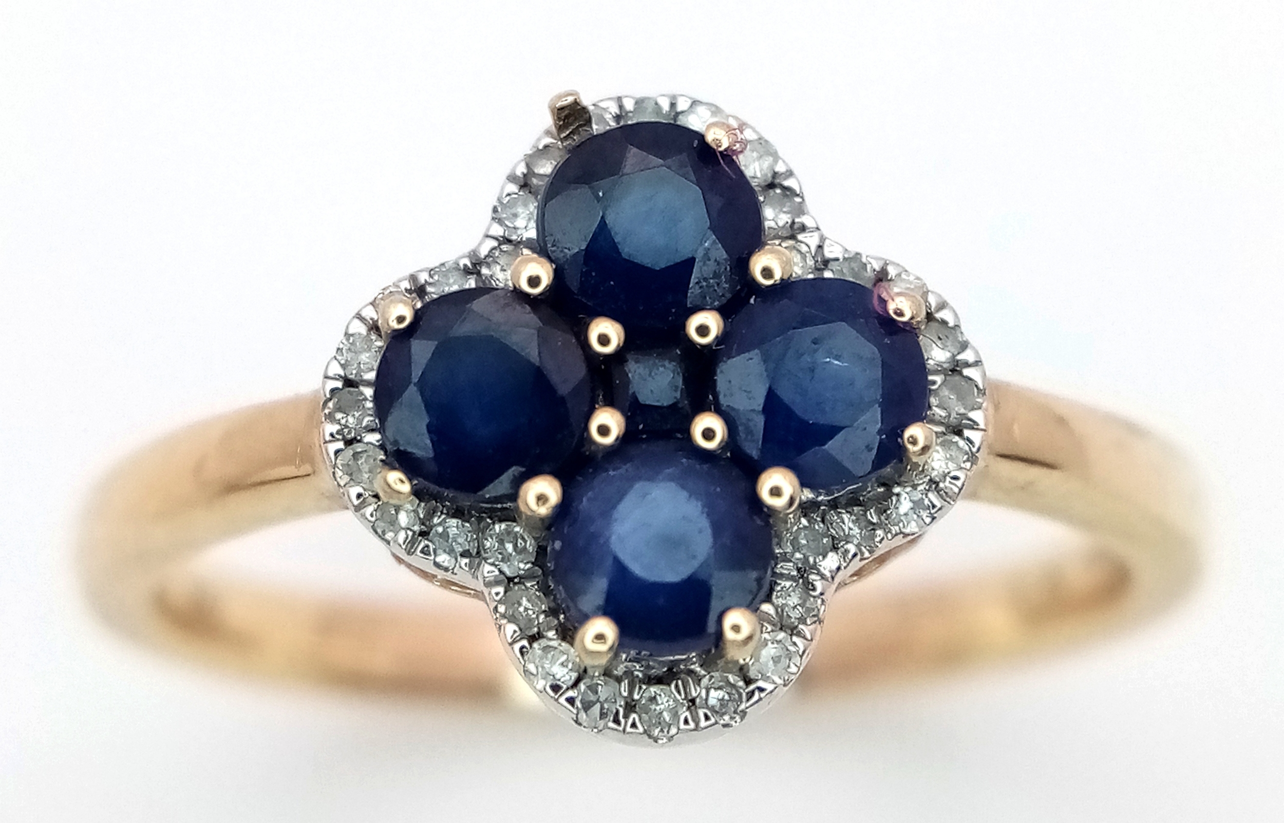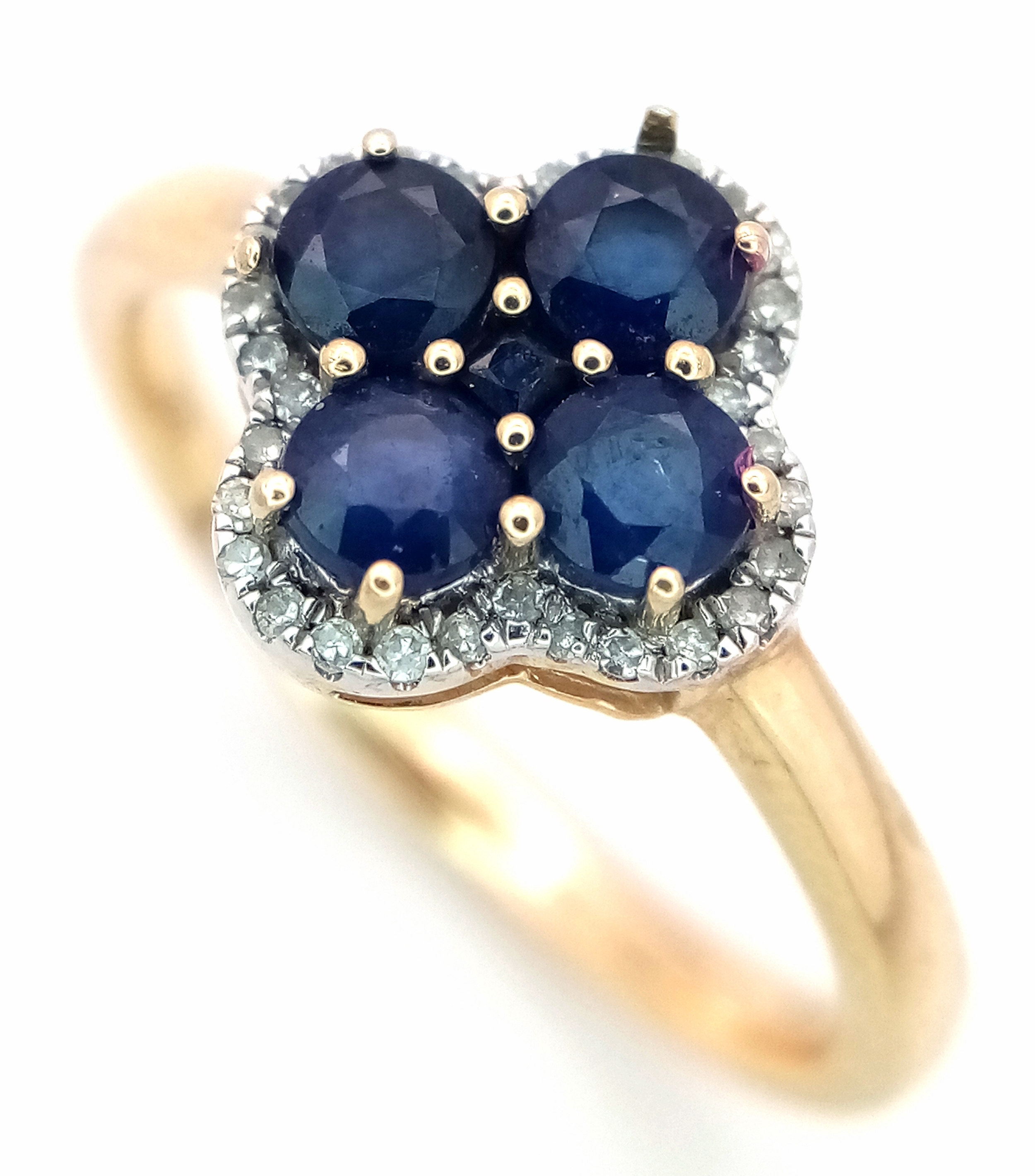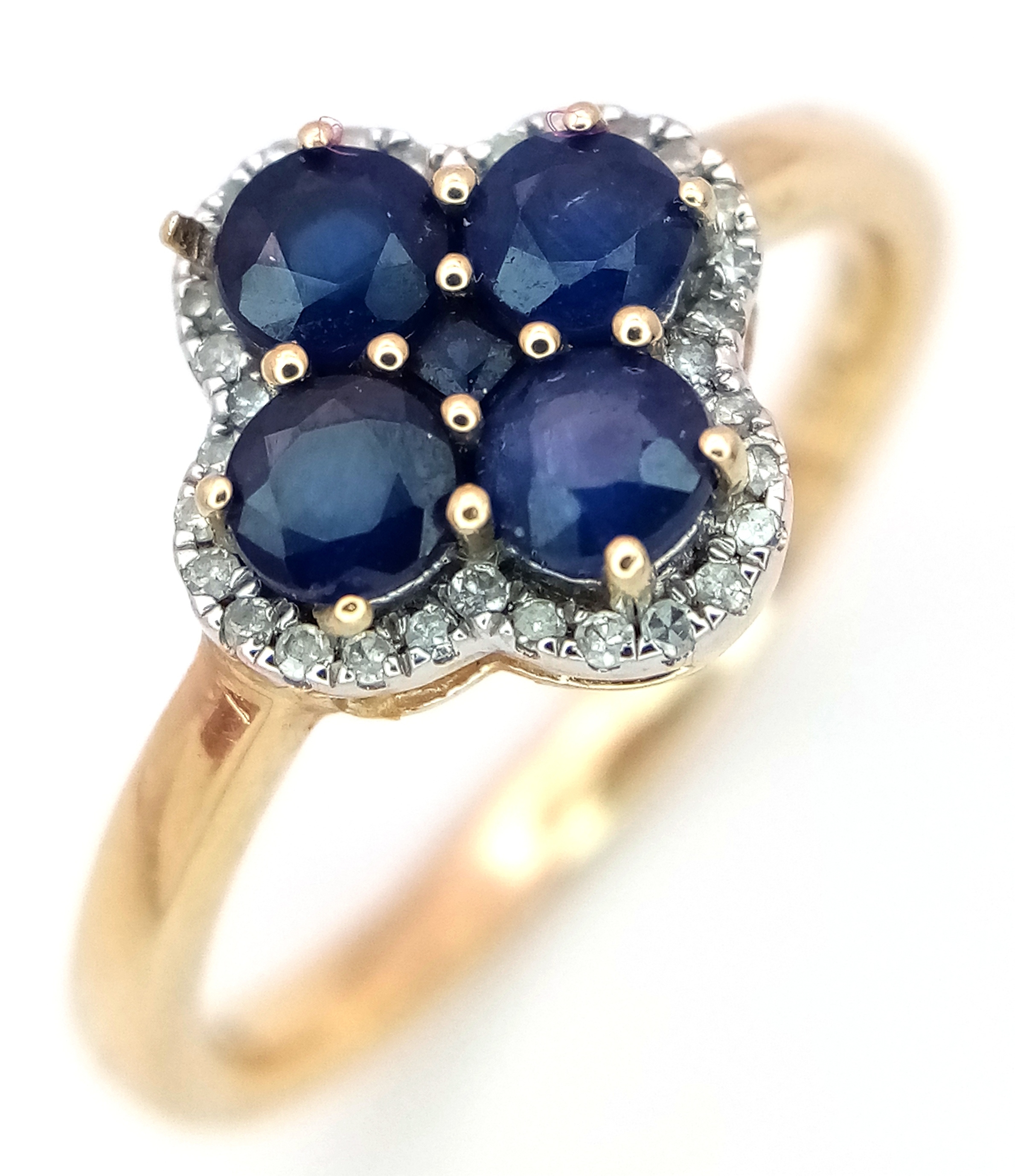 A 9K YELLOW GOLD DIAMOND AND SAPPHIRE RING. 2.5G. SIZE P. SC7038.