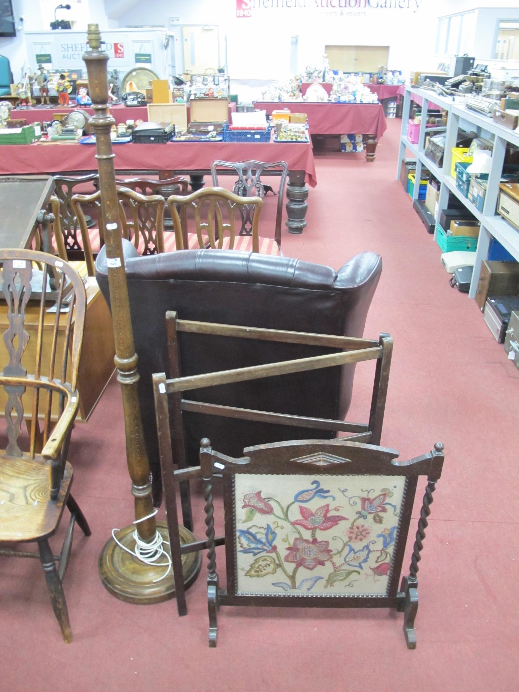 Oak Barley Twist Framed Firescreen with needlework panel, 67cm tall, folding clothes rail, standard lamp (3).