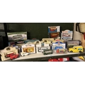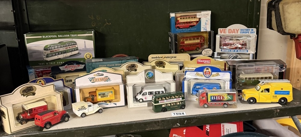A collection of Diecast vehicles including buses, trolley bus etc