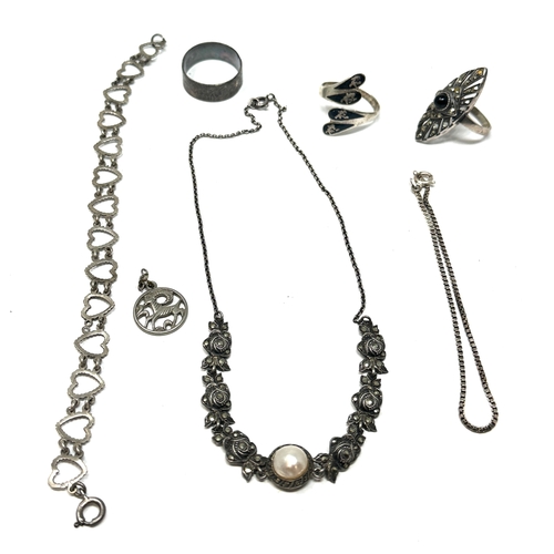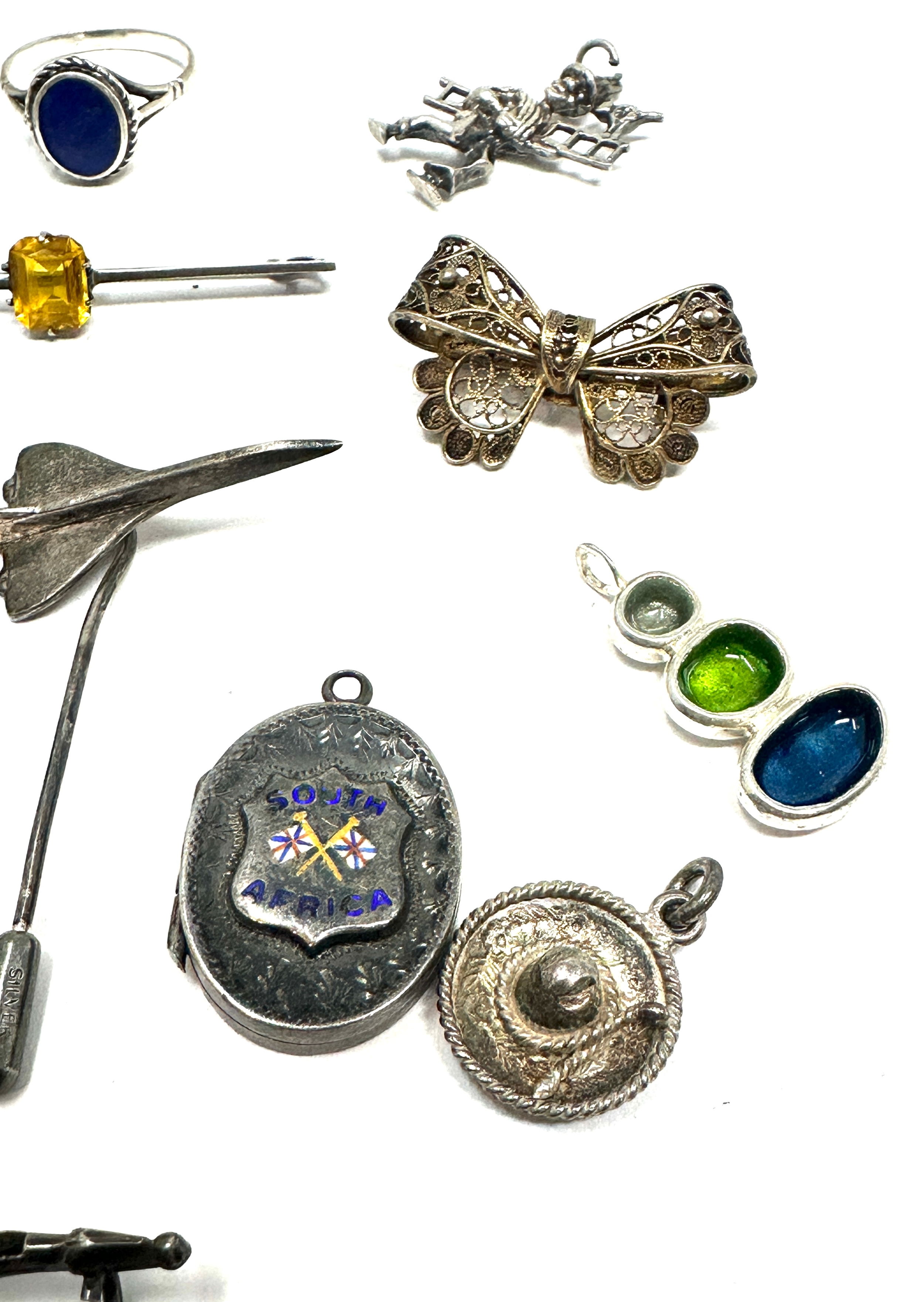 Selection of vintage silver jewellery inc pendants brooches ring etc weight 44g