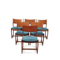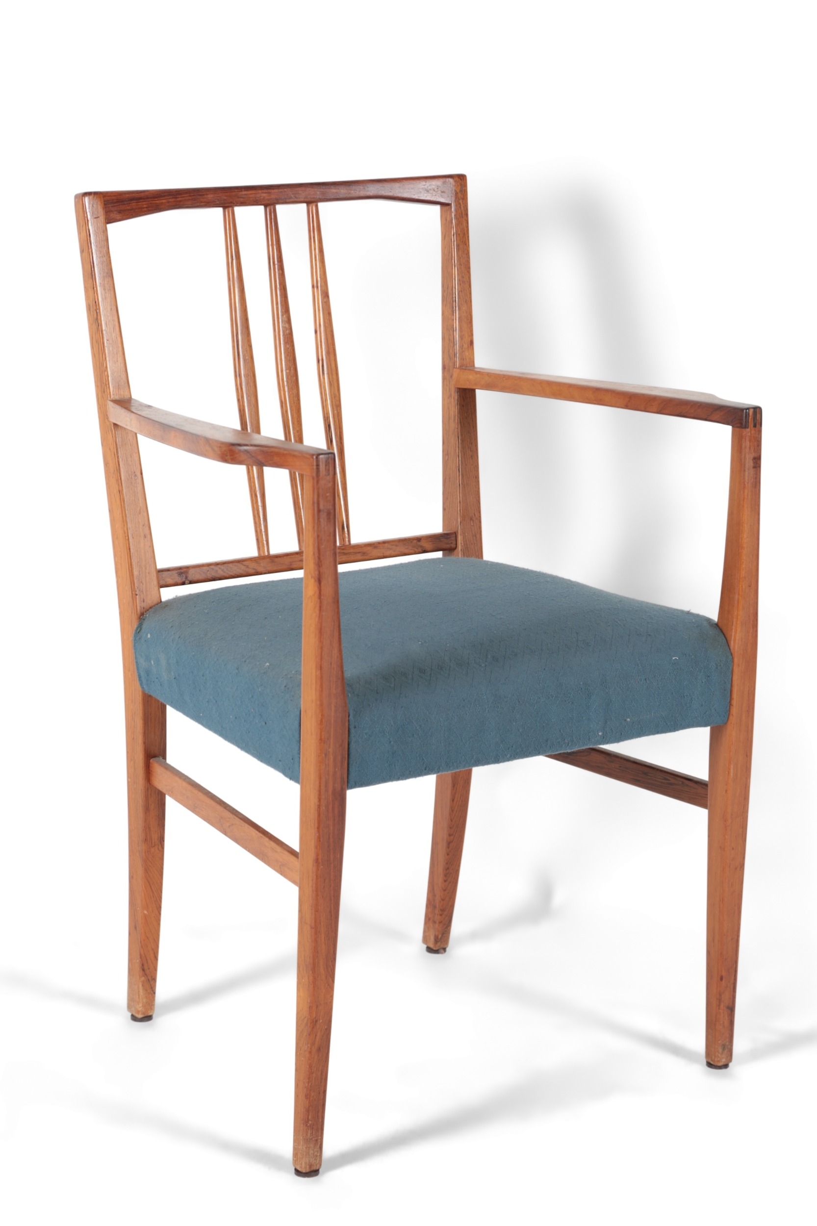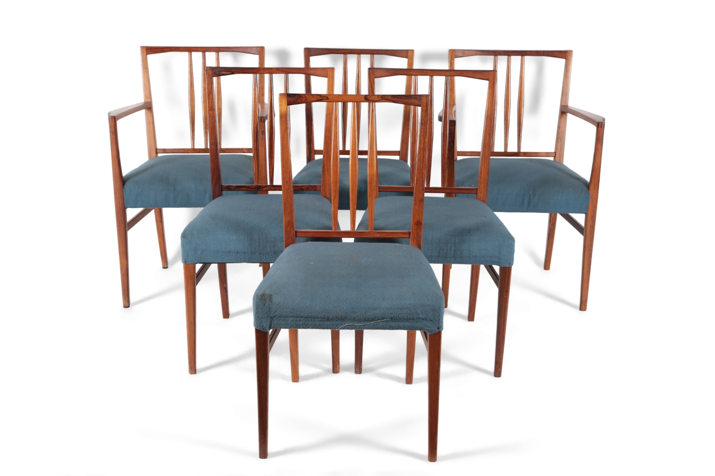W.H. Russell for Gordon Russell: A set of six 'Burford' dining chairs, comprising: two carvers and four single chairs, Indian rosewood and mahogany, with overstuffed seats, seat height 44cm (6)