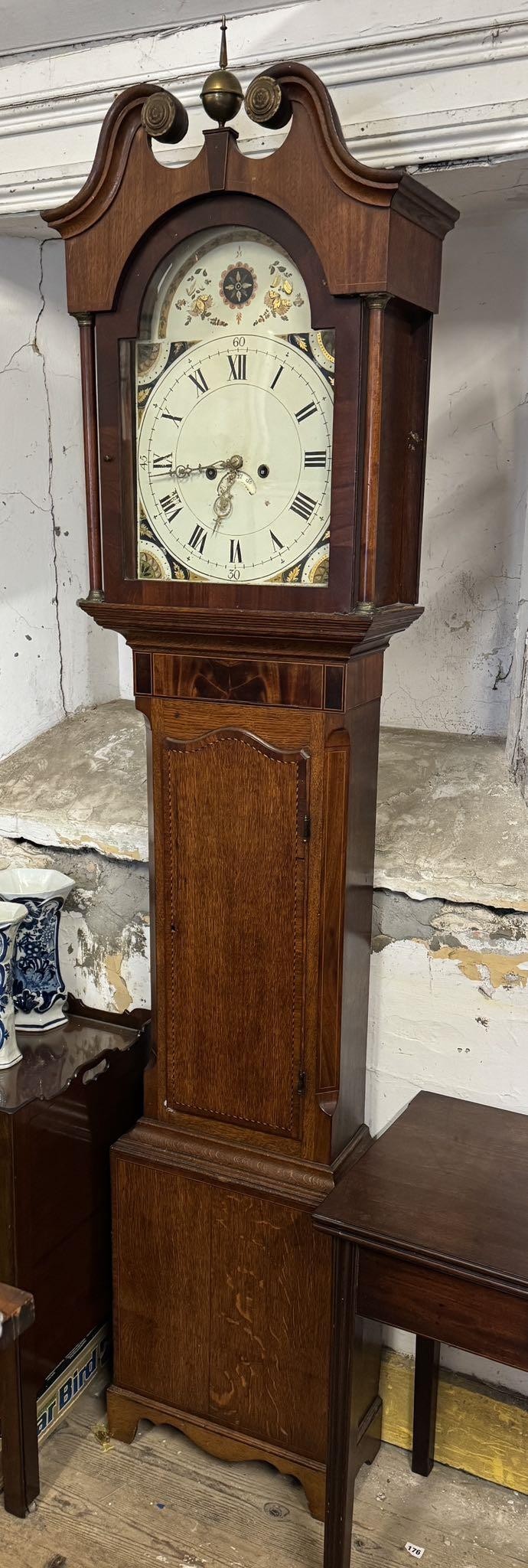 Victorian oak and mahogany crossbanded 8 day longcase clock