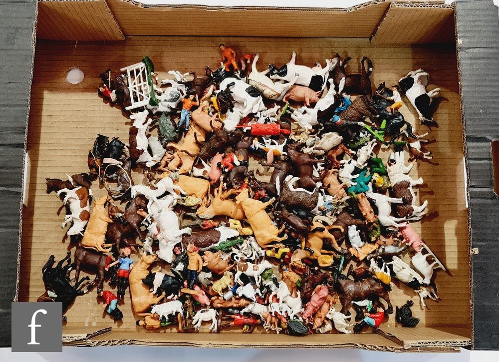 A collection of Britains farm series plastic figures to include cows, horses, pigs, farmers etc., unboxed. (qty)