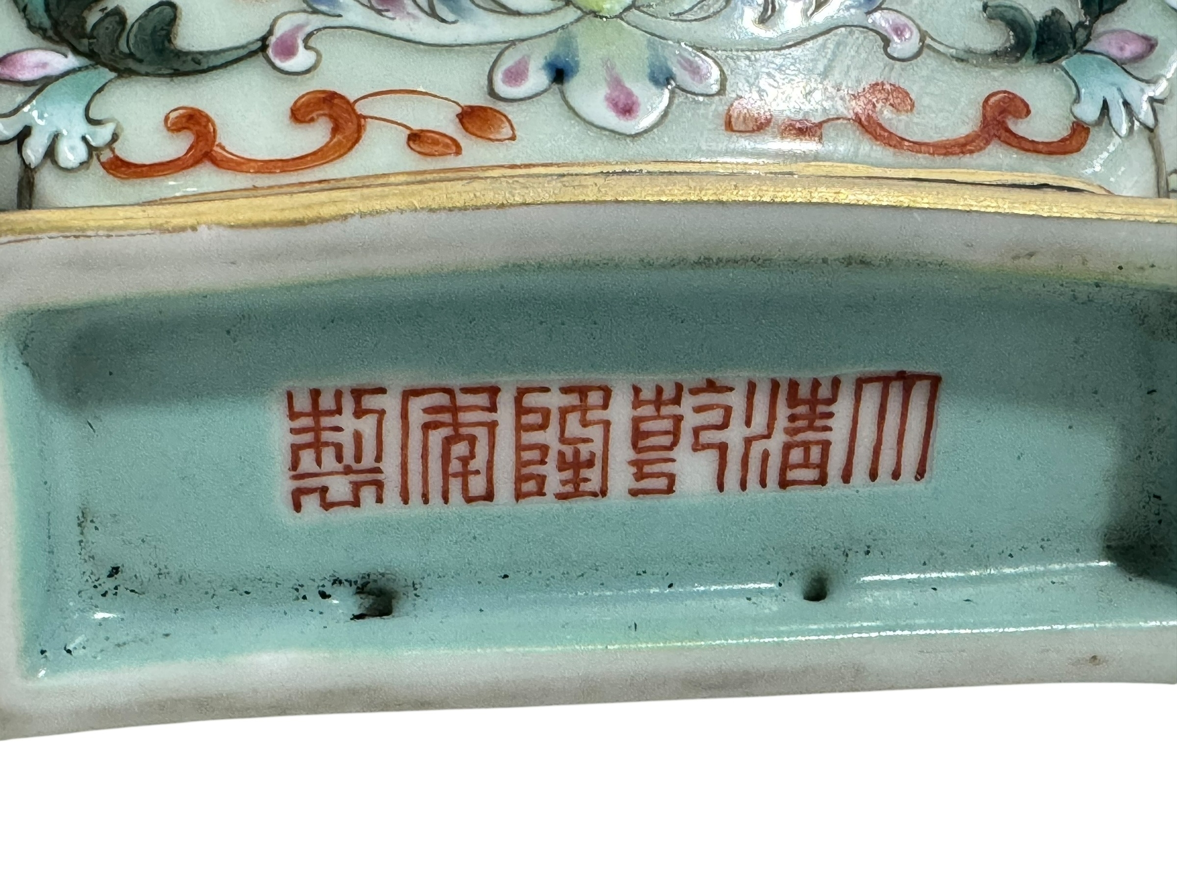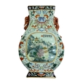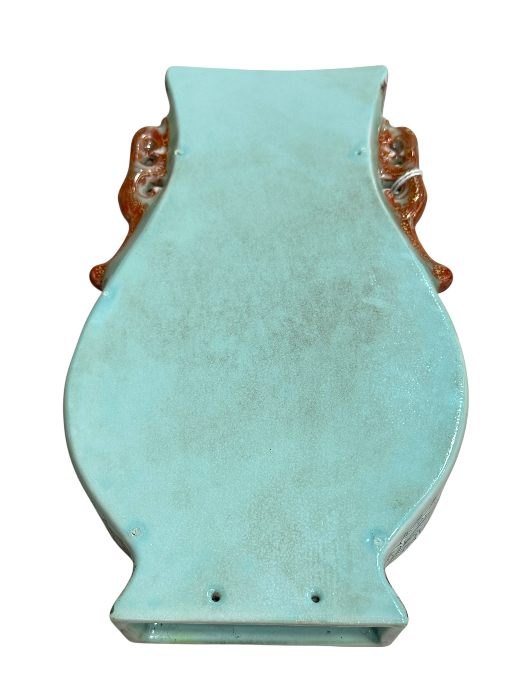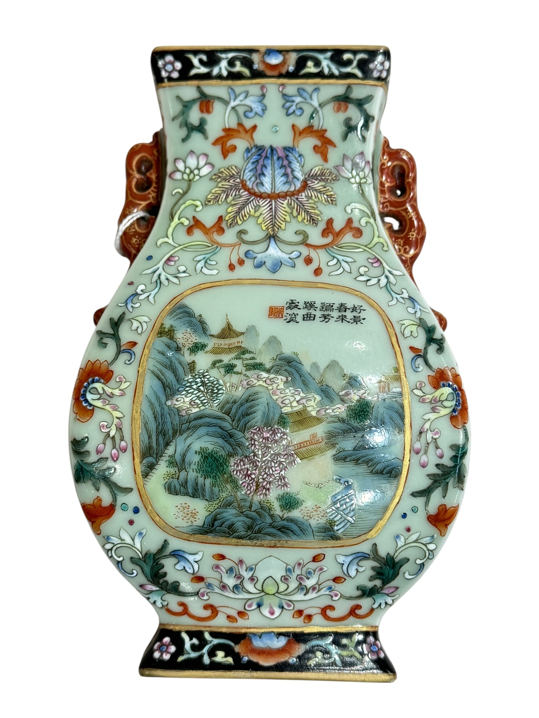 Chinese wall vase decorated with landscape, verse and floral design with Qianlong mark to base, 19cm.