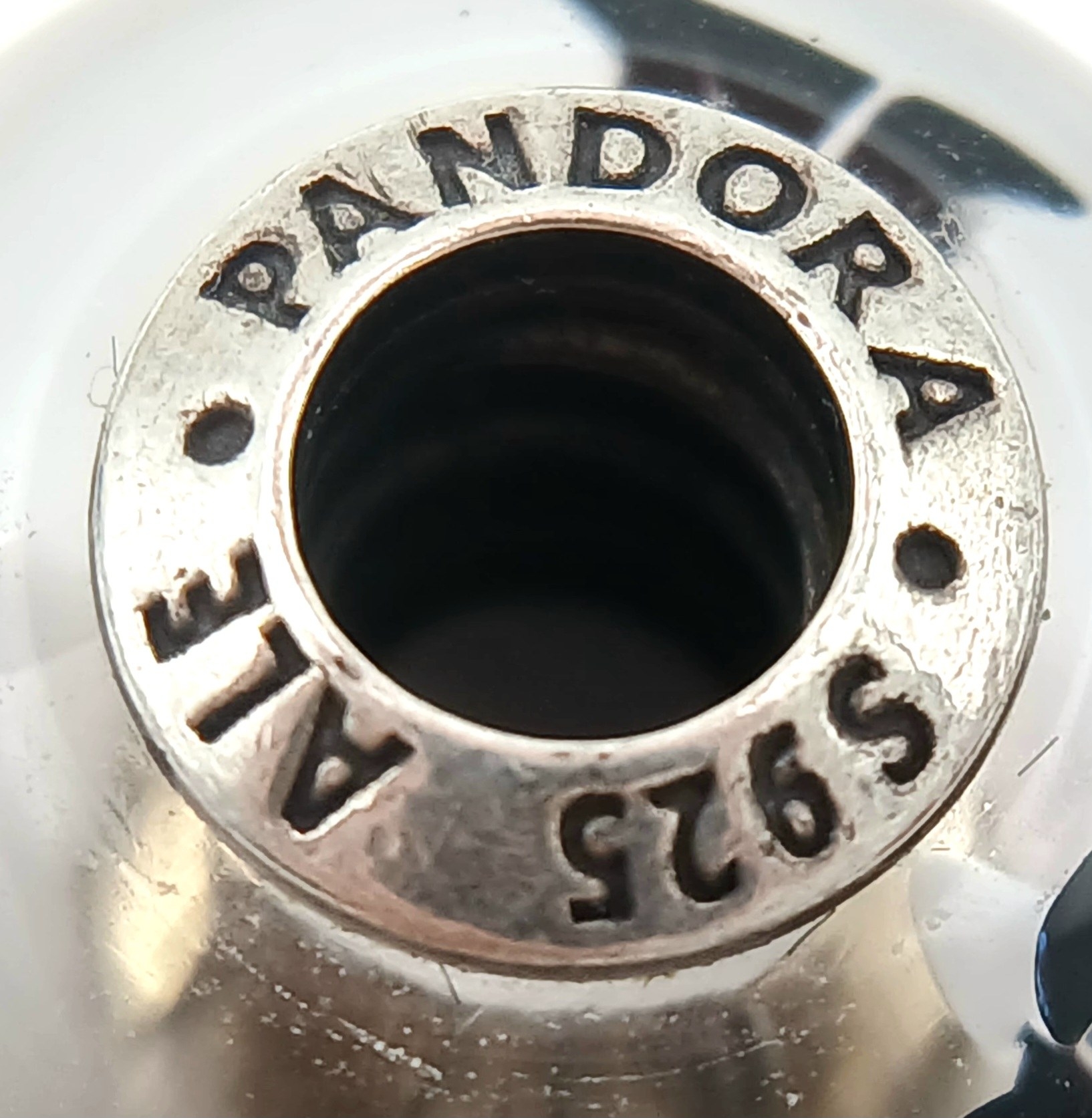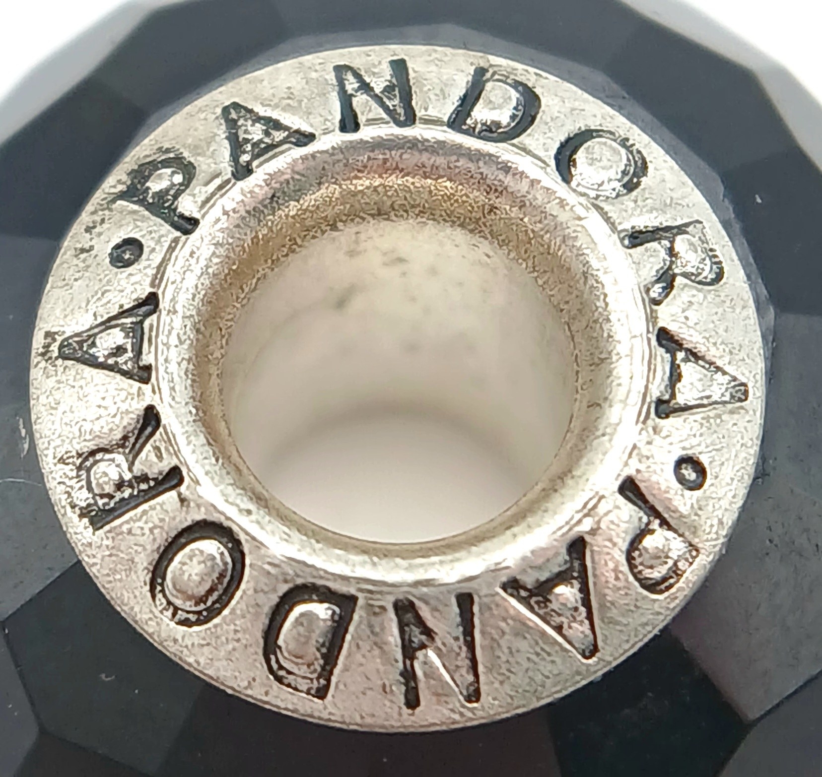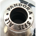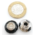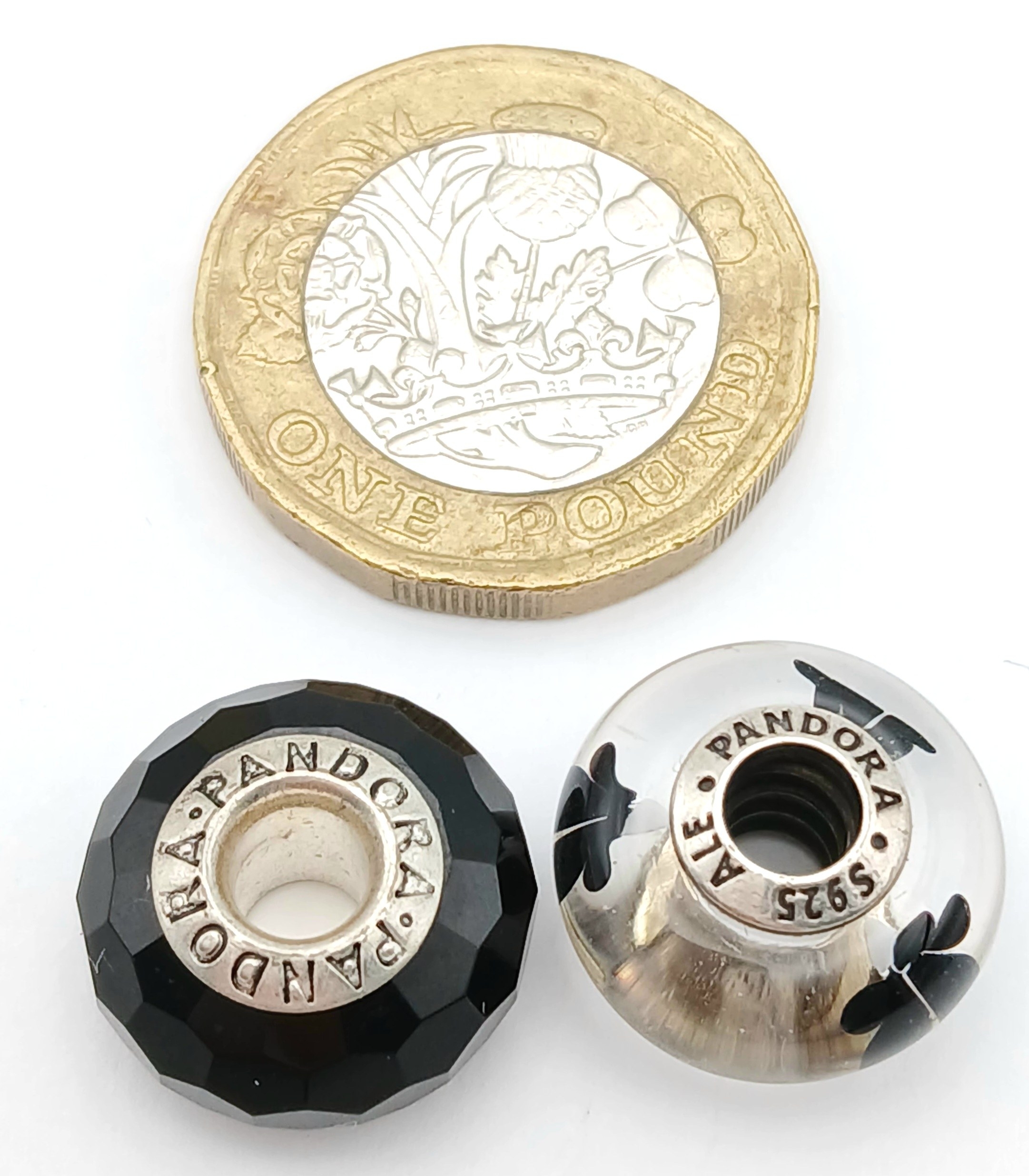A PAIR OF PANDORA, STERLING SILVER CHARMS. BLACK MURANO GLASS AND BLACK CHERRY BLOSSOM MURANO GLASS. 5.6G. S/A 1157 - 1