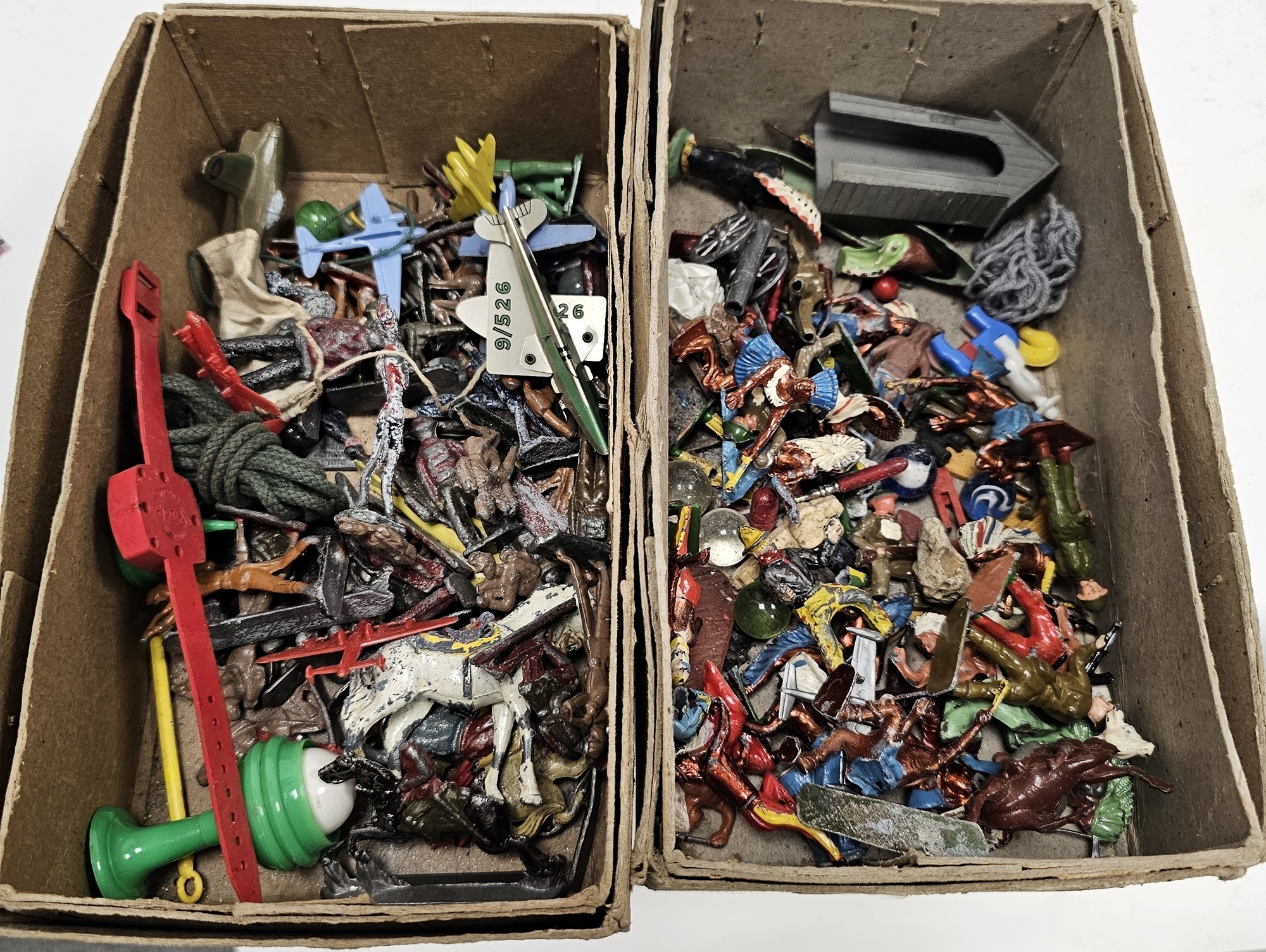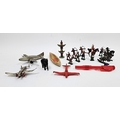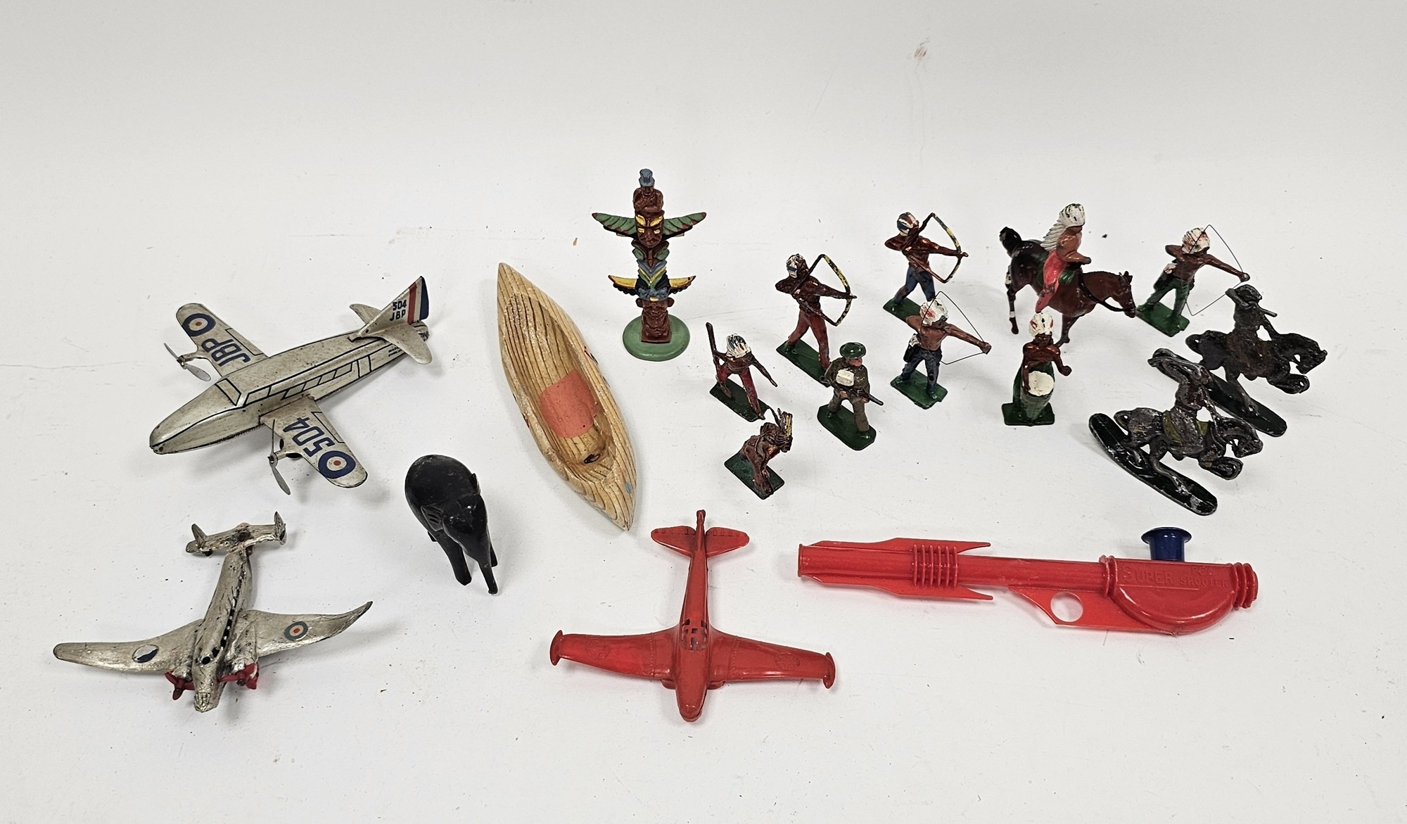 Collection of lead, metal and plastic toy figures including cowboys, native Americans, soldiers, horses and others, together with a few other toys including airplanes