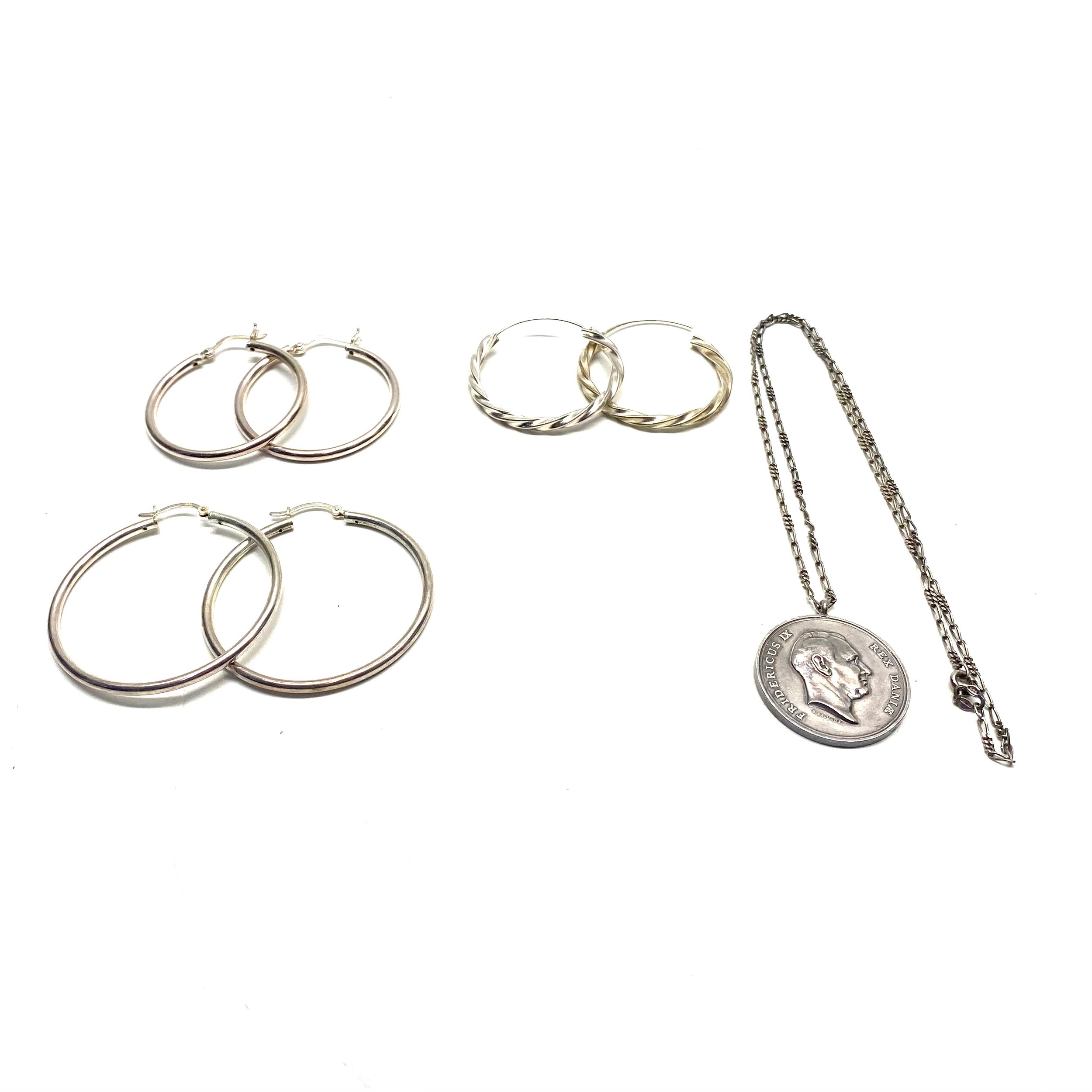Silver hoop earrings, necklace an Dutch pendant and chain.