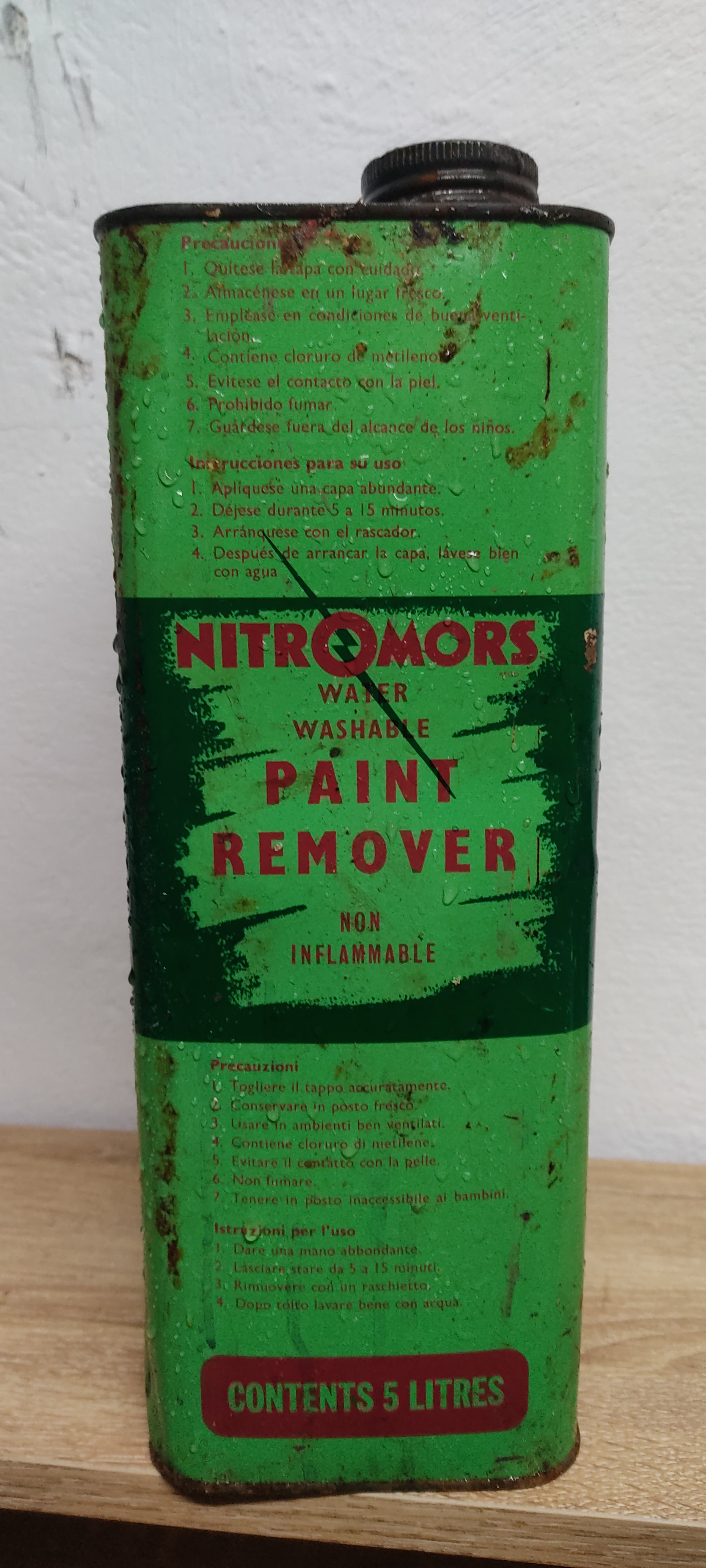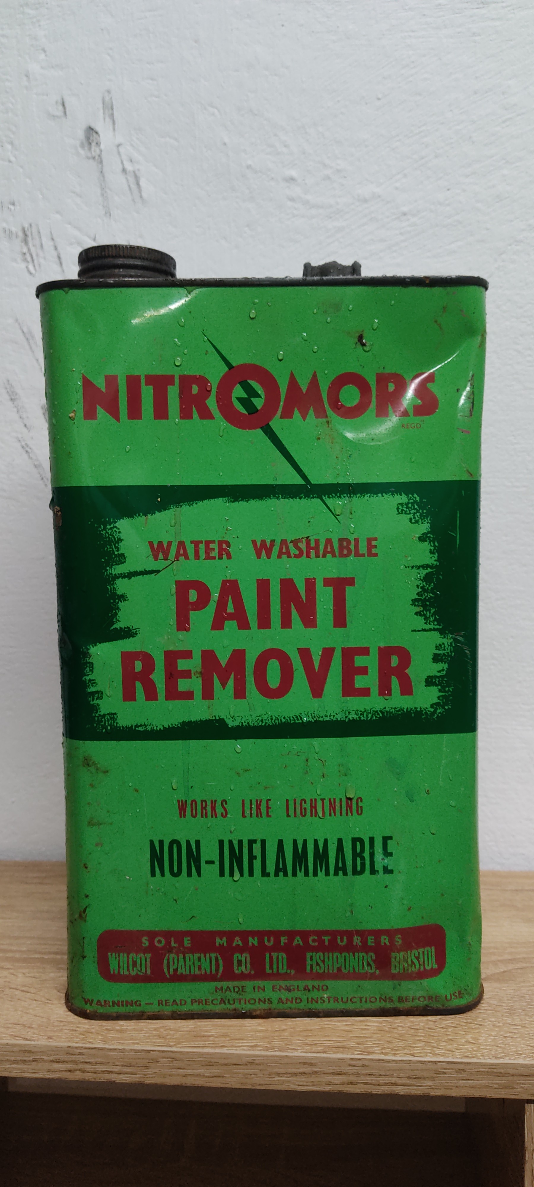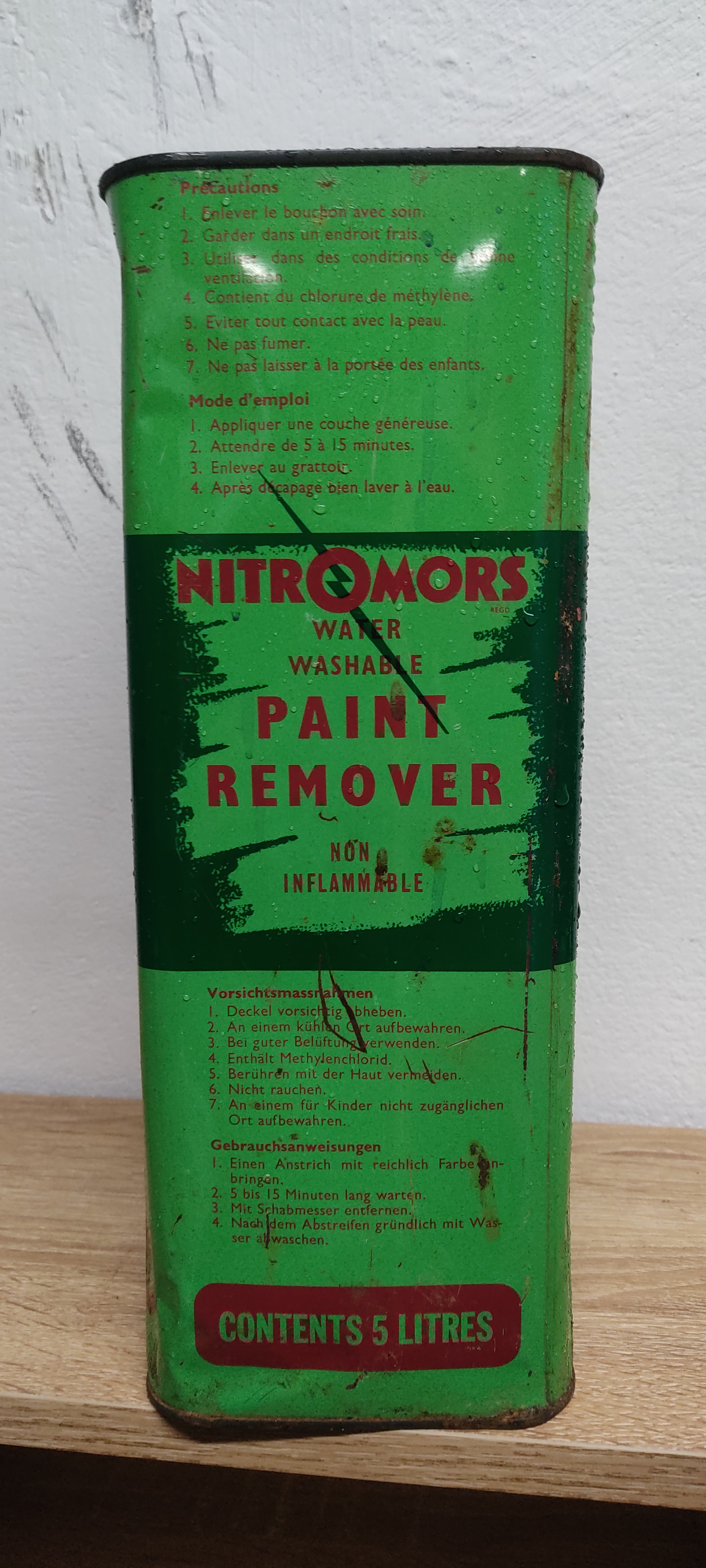 A vintage Nitromor's paint remover can.