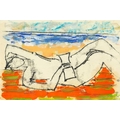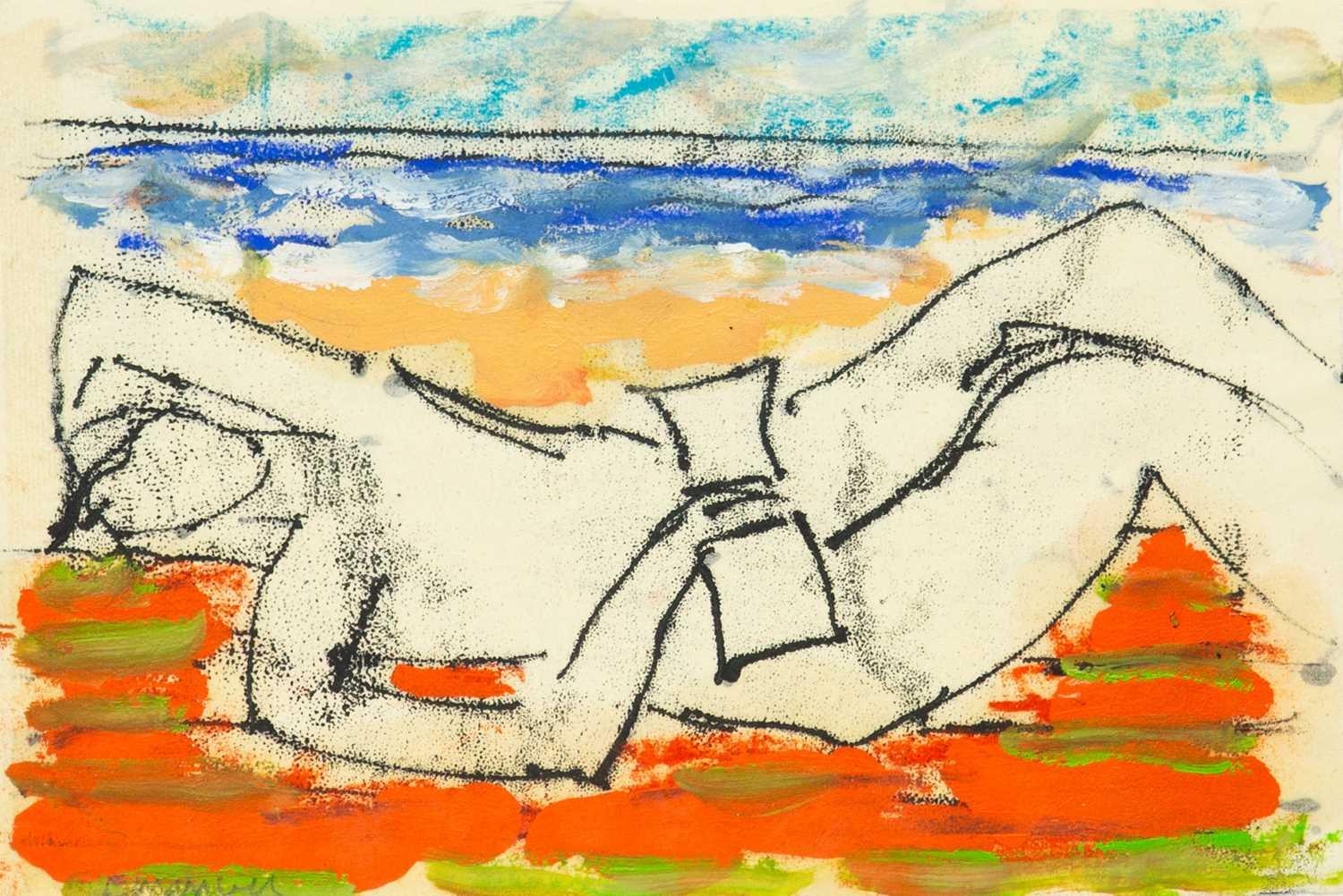 John EMANUEL (1930) Reclining Figure Mixed media on paper, signed, 17 x 25.5cm, 29 x 38cm framed.