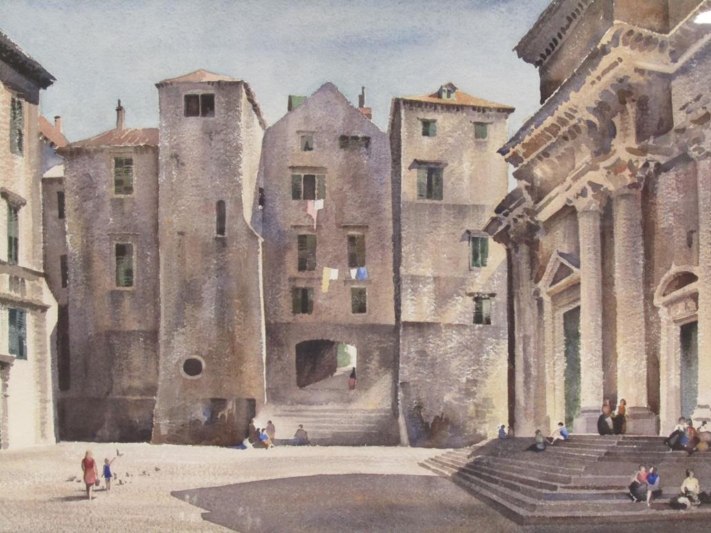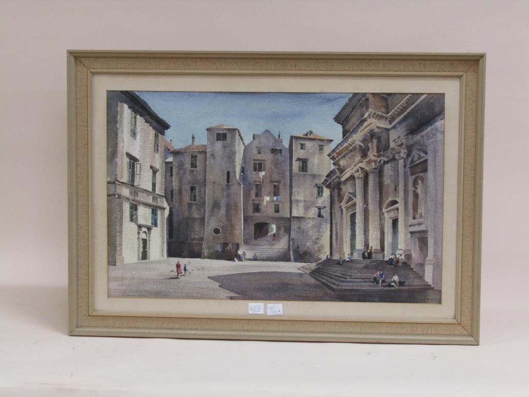J BARRIE HASTE - THE CATHEDRAL YUGOSLAVIA, SIGNED WATERCOLOUR, F/G, 43CM X 68CM
