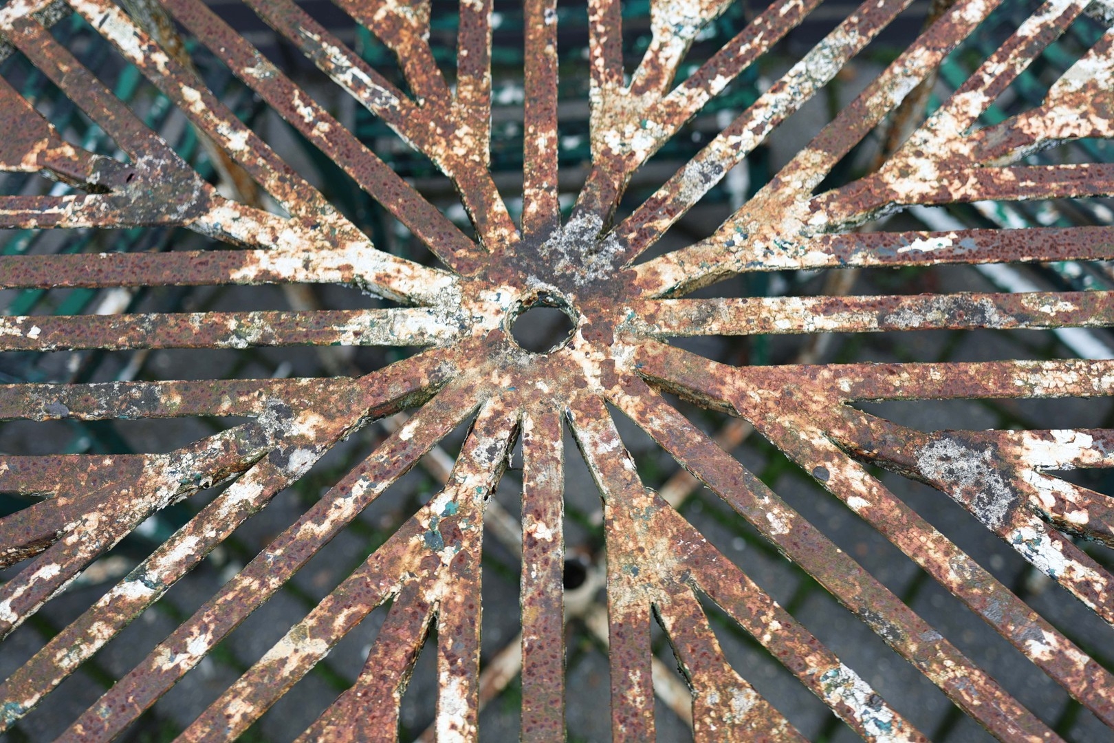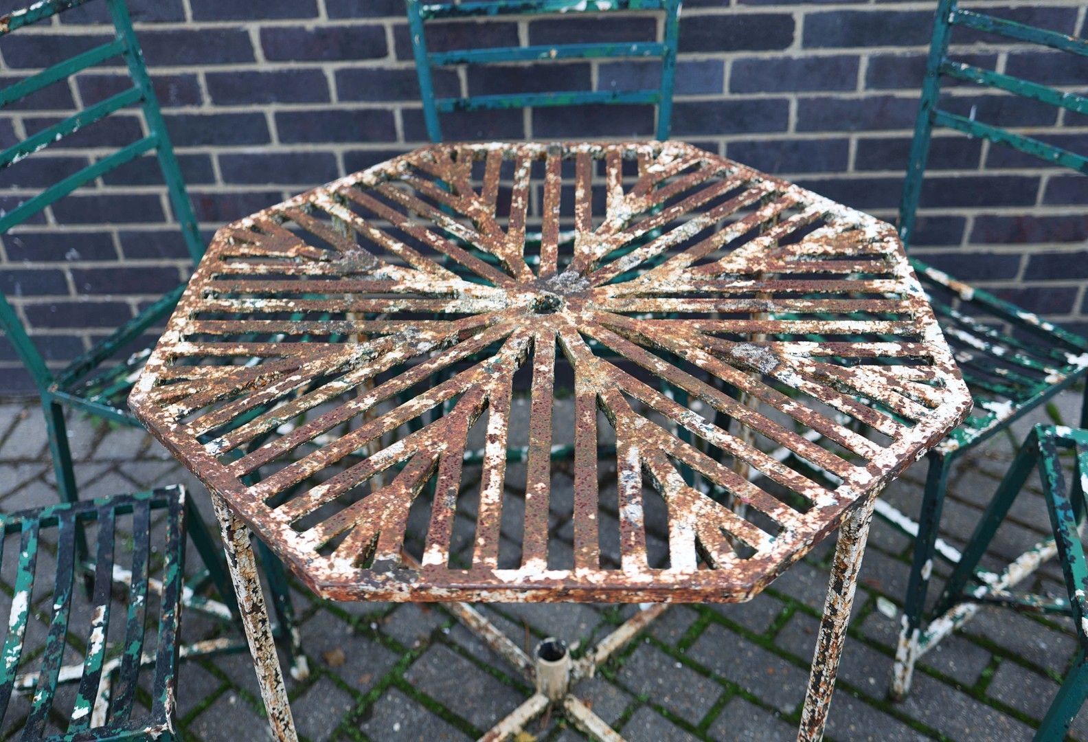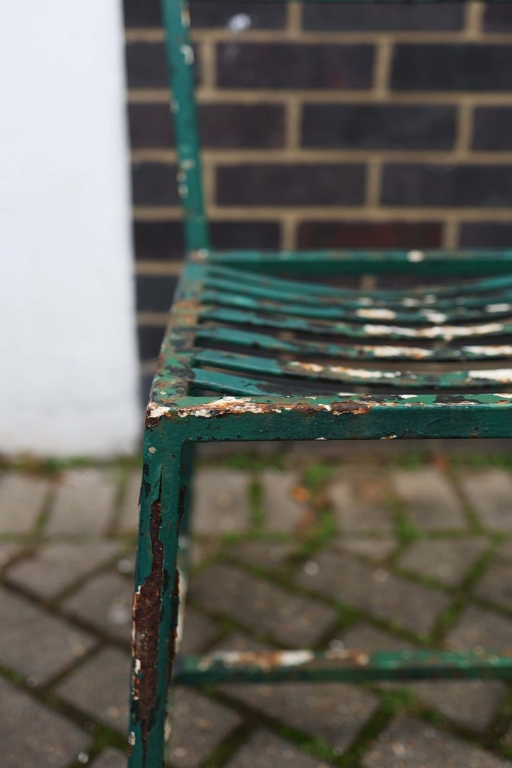 GARDEN DINING SET. (9). including 8 chairs, 91.5cm H approx., and a table, 85.5cm diam. x 71cm H approx. (9).