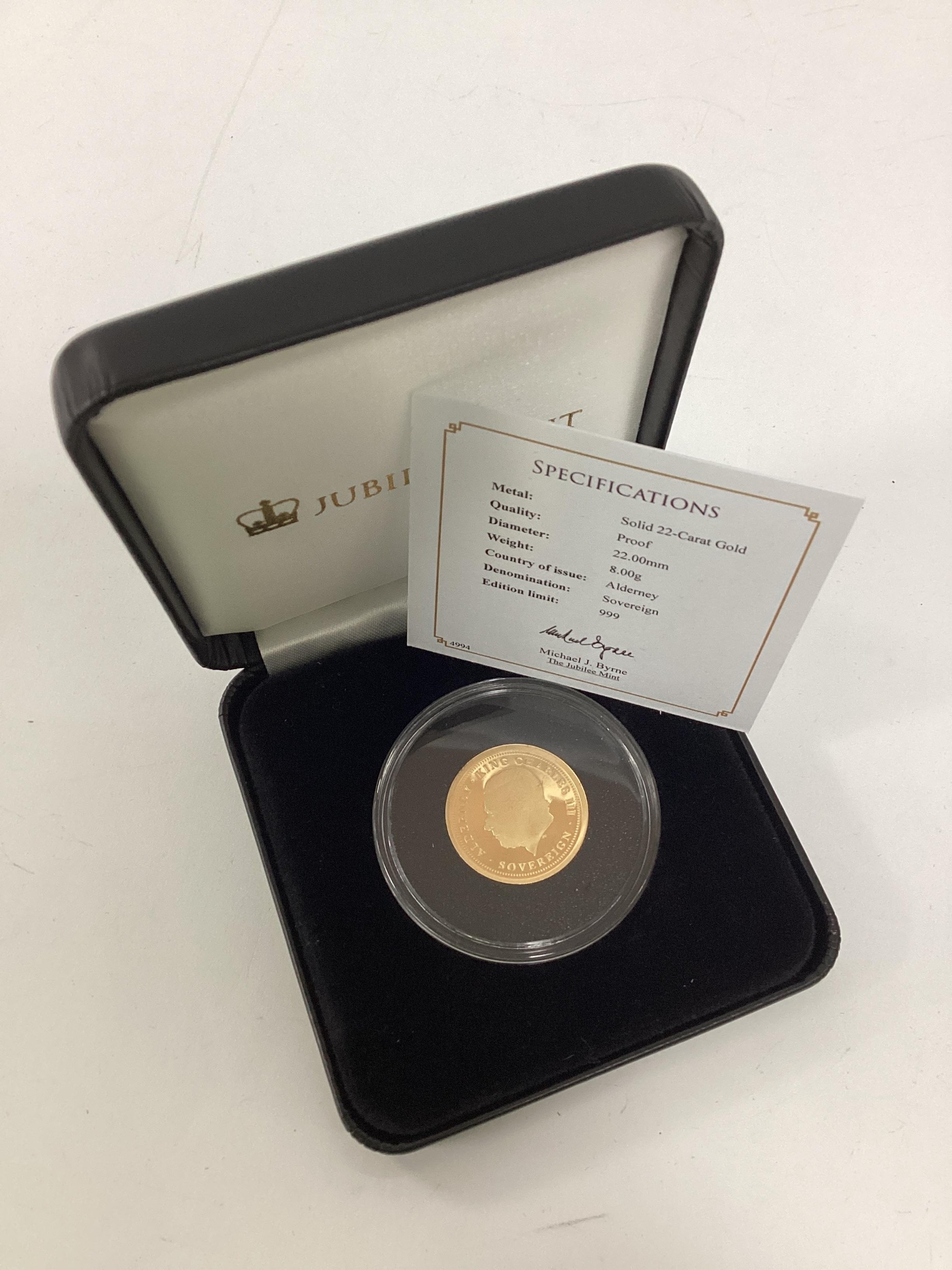 2025 Charles III Jubilee Mint Gold Proof Sovereign, cased with a certificate of authenticity.