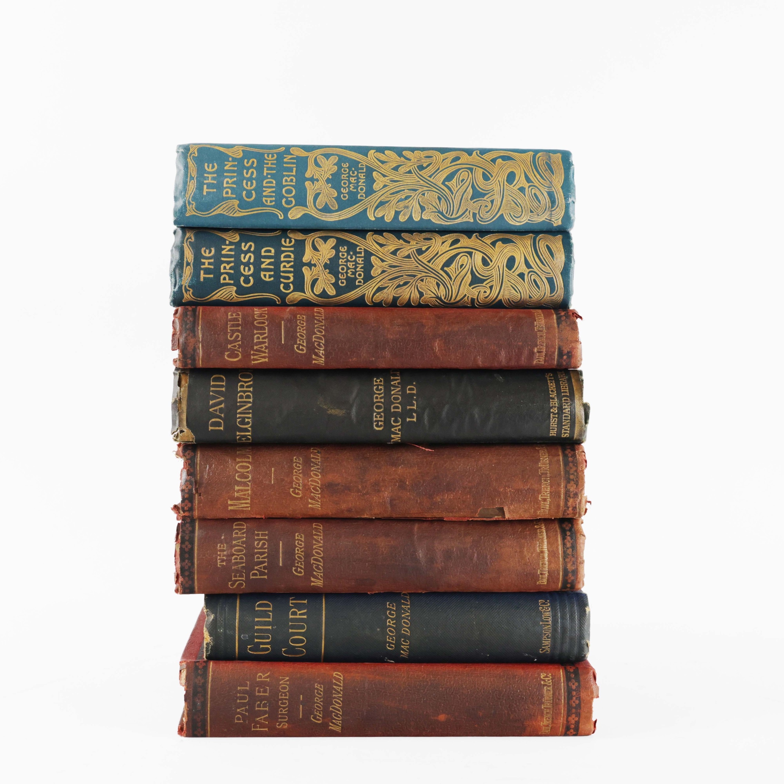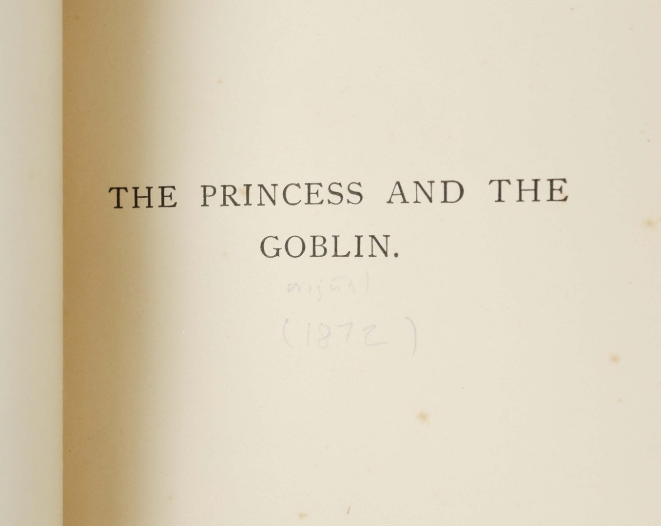 GEORGE MACDONALD. THE PRINCESS AND THE GOBLIN & THE PRINCESS AND CURDIE, PLUS OTHERS (8). MacDonald, George. The Princess and the Goblin, London: Blackie & Son, ca 1880s (undated). Hardcover. Teal cloth; gilt lettering and decoration to spine; brown pictorial decoration to cover. Thirty illustrations by Arthur Hughes and a frontispiece by Laurence Housman. Head and tail bumped. Spine shows some wear. Some light foxing to flyleaves and title page, otherwise bright, clean and clear. Small ownership inscription to front flyleaf, dated 1905.