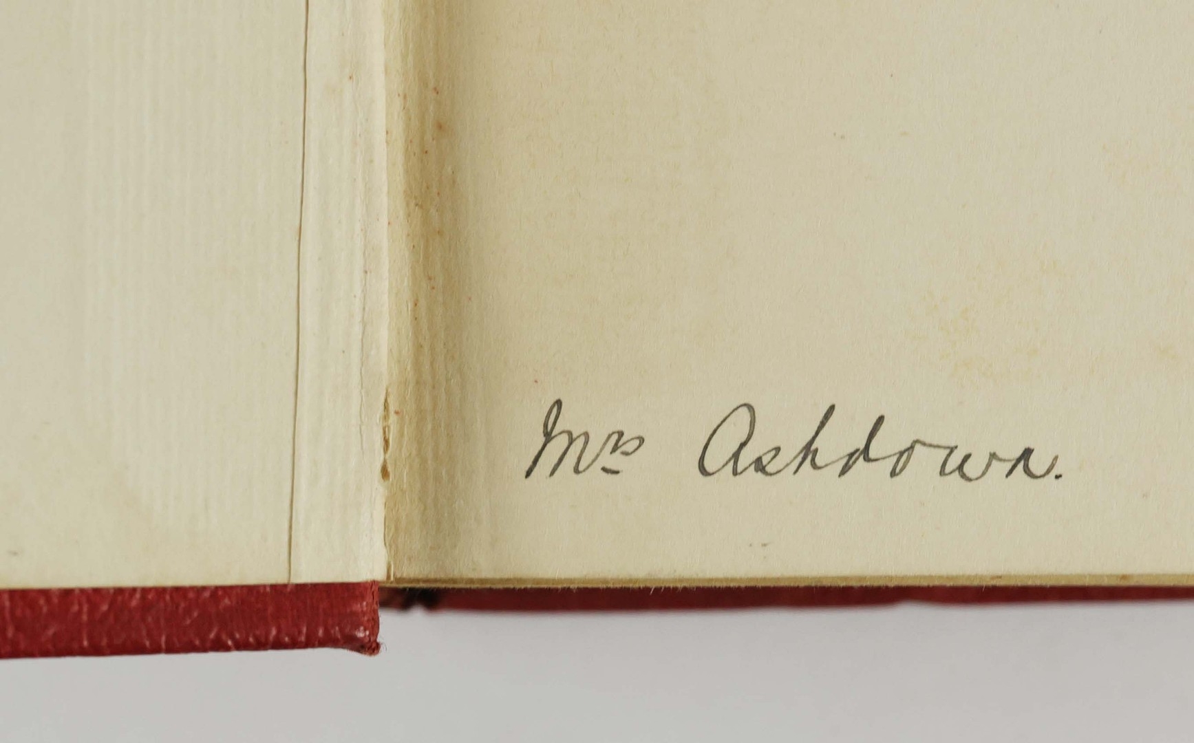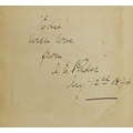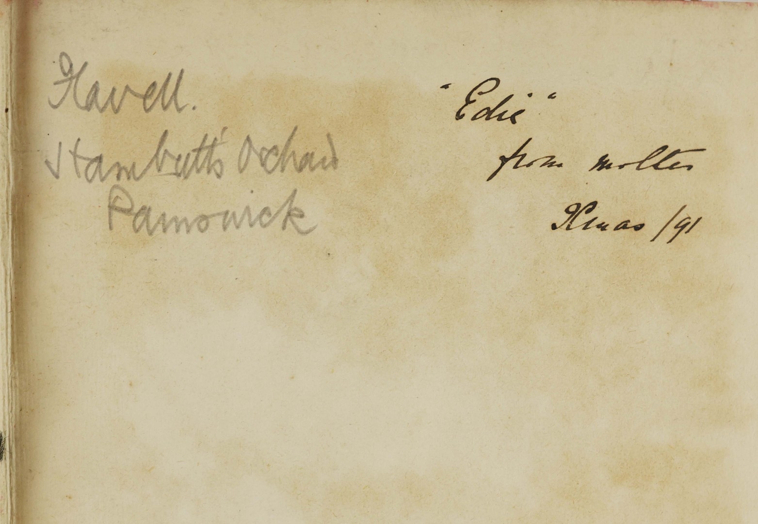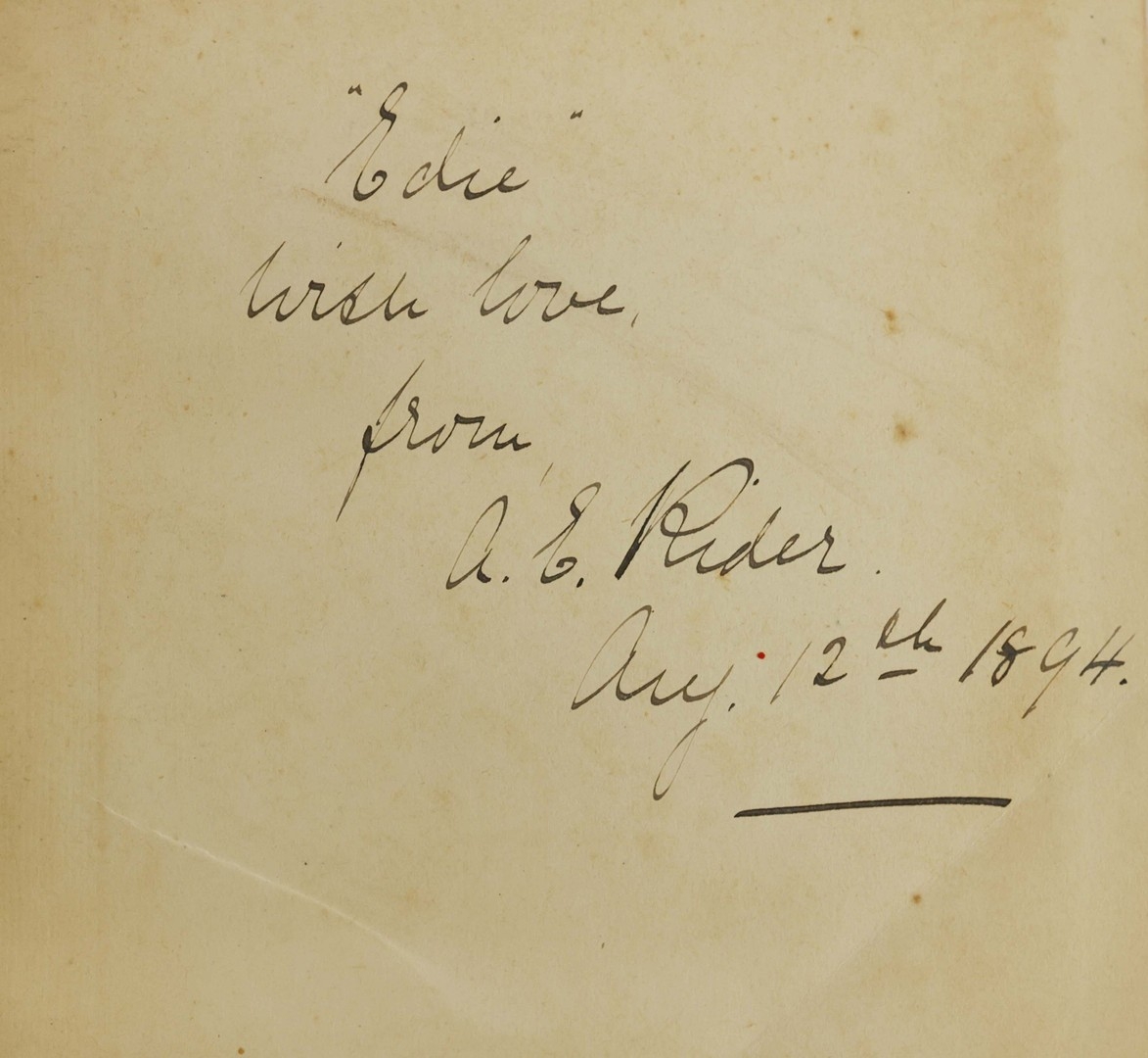 MacDonald, George. The Princess and Curdie, London: Blackie & Son, ca 1890s (undated). Hardcover. Teal cloth; gilt lettering and decoration to spine; brown pictorial decoration to cover. Thirty illustrations and a frontispiece by Helen Stratton. Head and tail bumped. Spine shows some wear. Some light foxing to flyleaves and title page, otherwise bright, clean and clear. Small ownership inscription to front flyleaf, dated 1905.