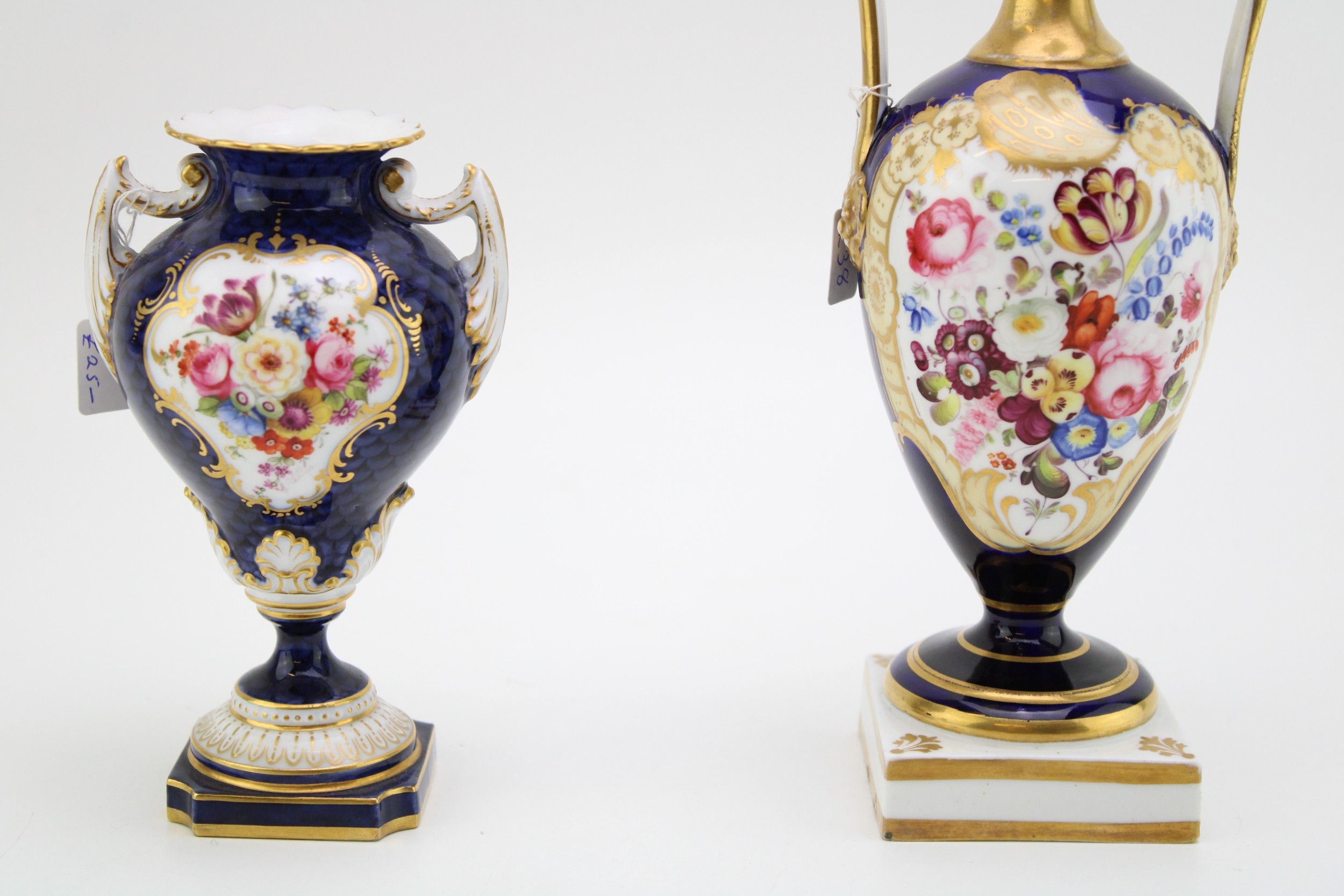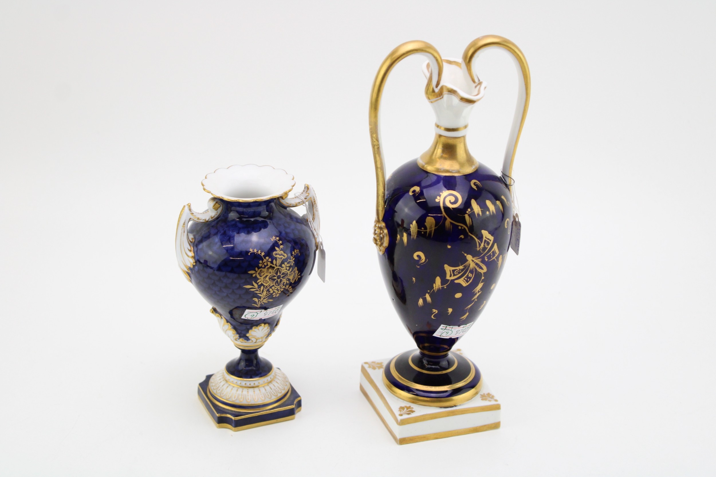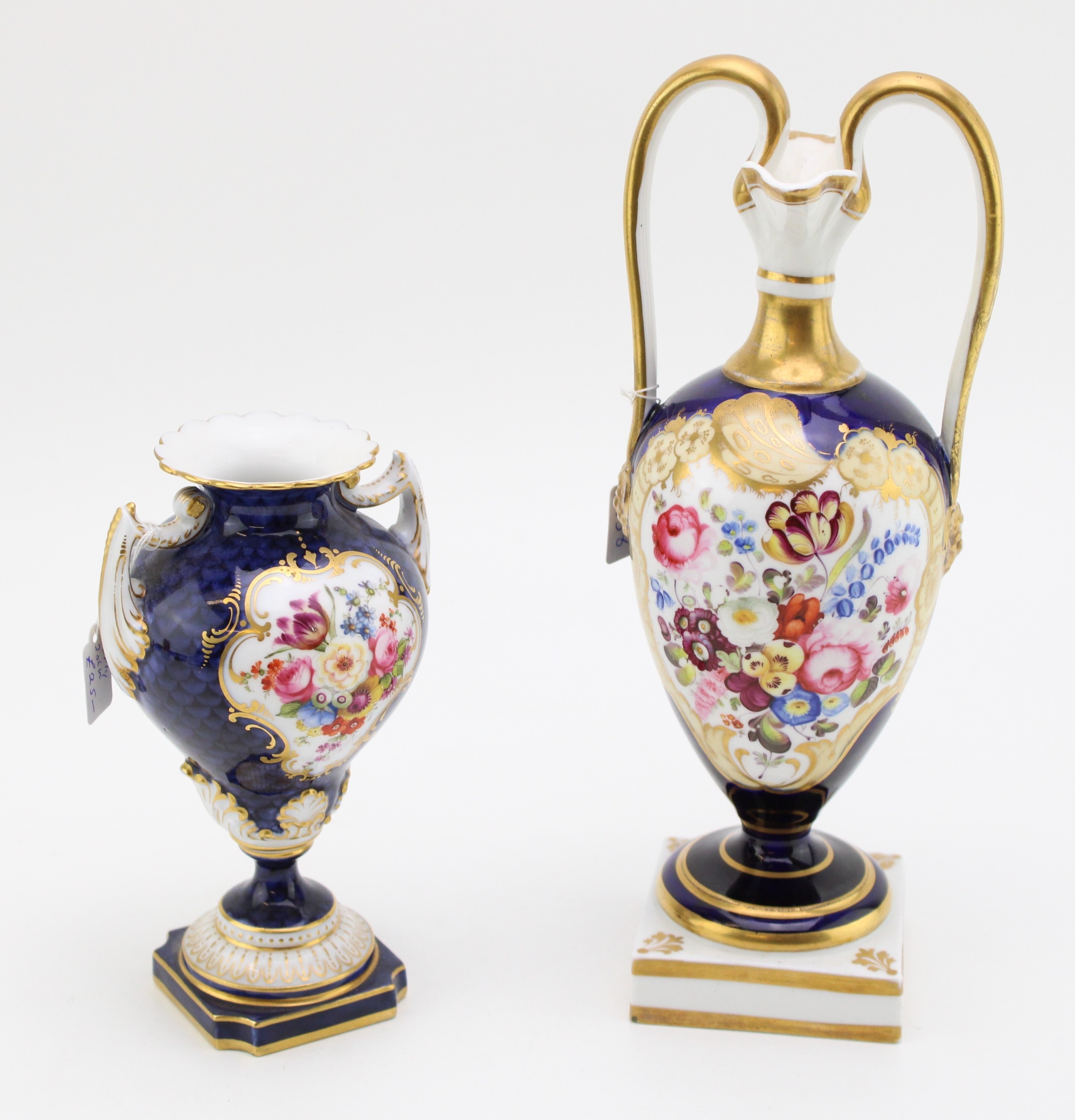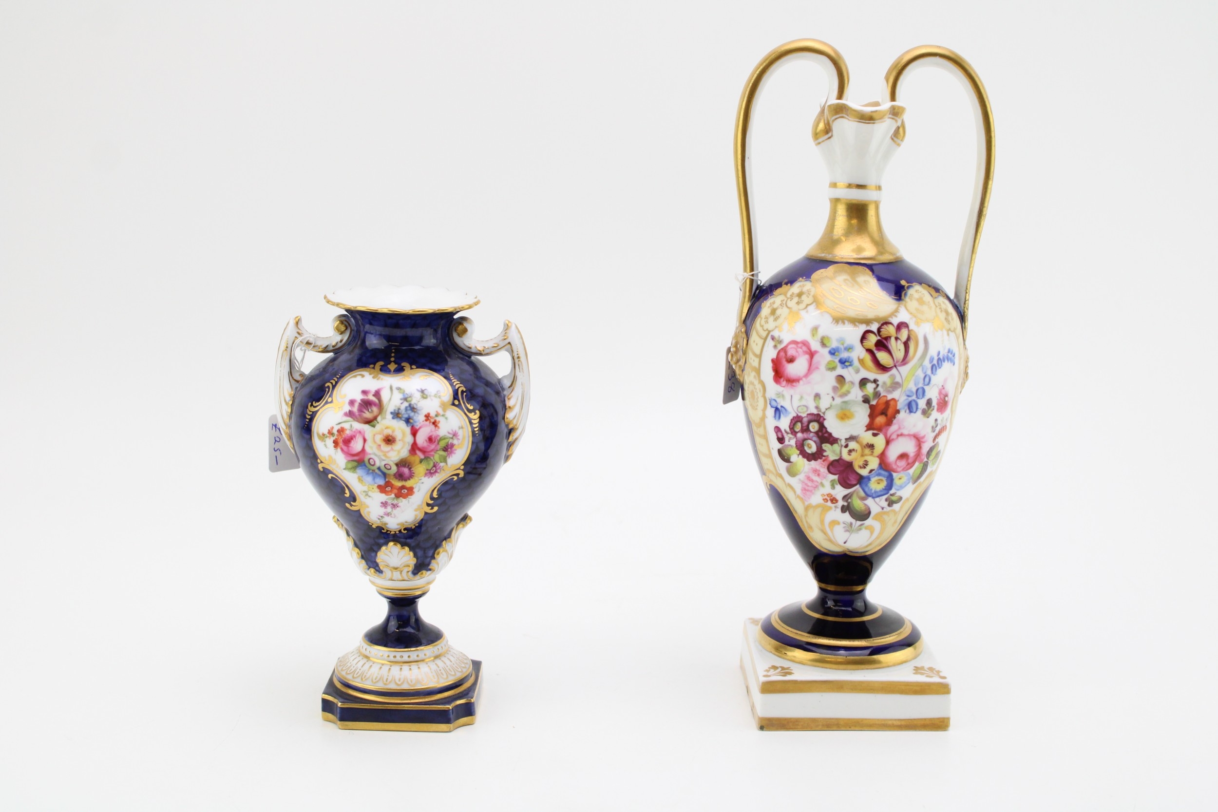 Worcester vase of first quality with no obvious signs of damage or restoration, larger vase has restoration to one handle.