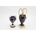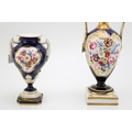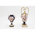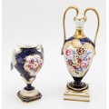 Royal Worcester two handled pedestal vase decorated with floral sprays and gilt highlights, together with another larger example, 23cm tall, (2).