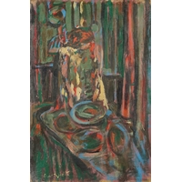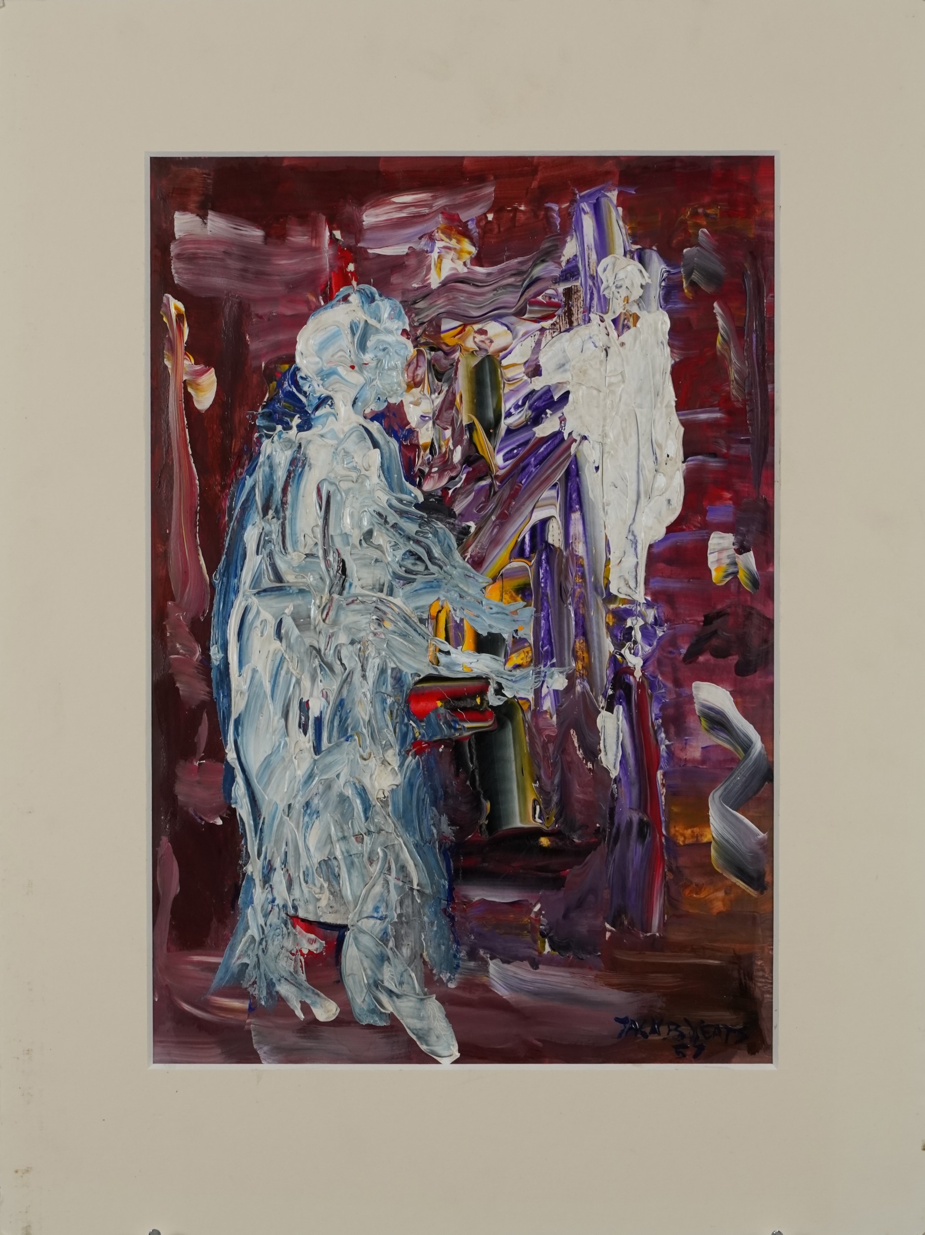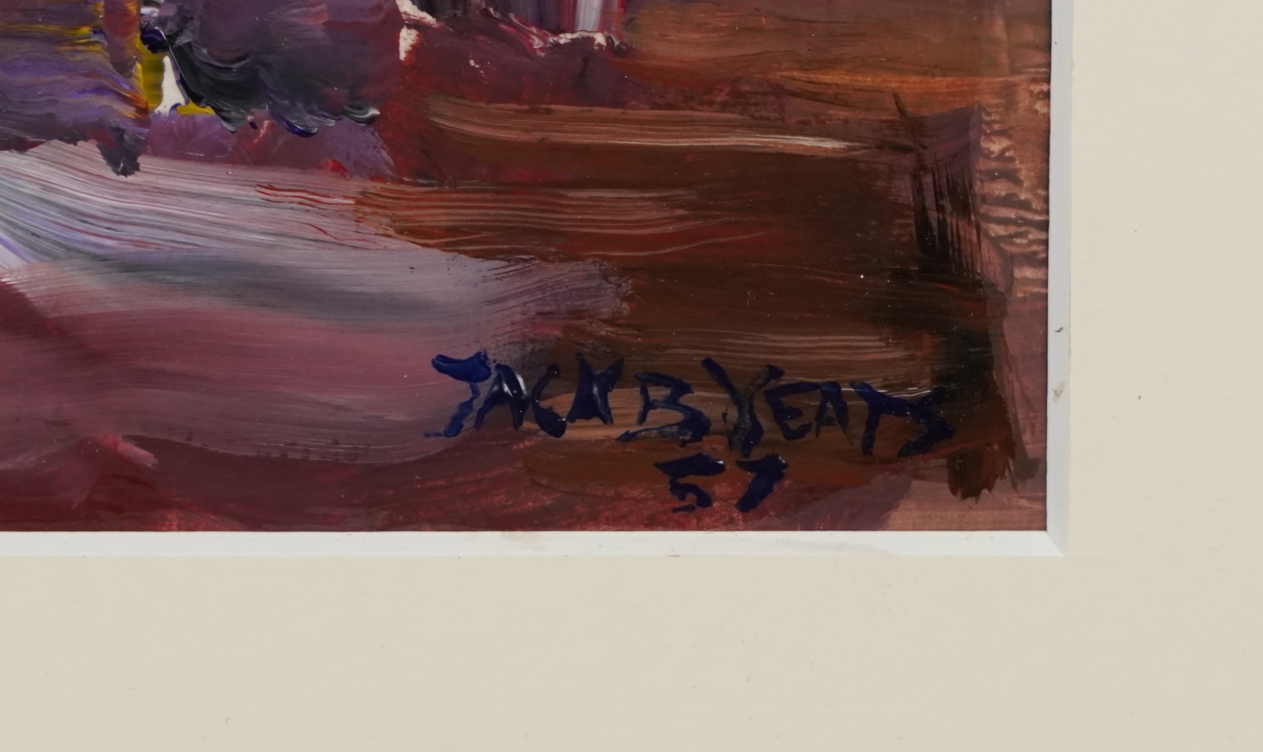 Abstract study, mid 20th century oil on paper, signed Jacob Yeats, dated '57, mounted, unframed, 41cm x 28cm.